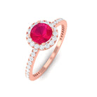 A Unique Minimal Engagement Ring is embellished with Round Shape Ruby as solitaire and Round Shape Diamond is set as a side stone makes a lovely piece. This Gold Minimal Ring is Composed of Solid Gold.