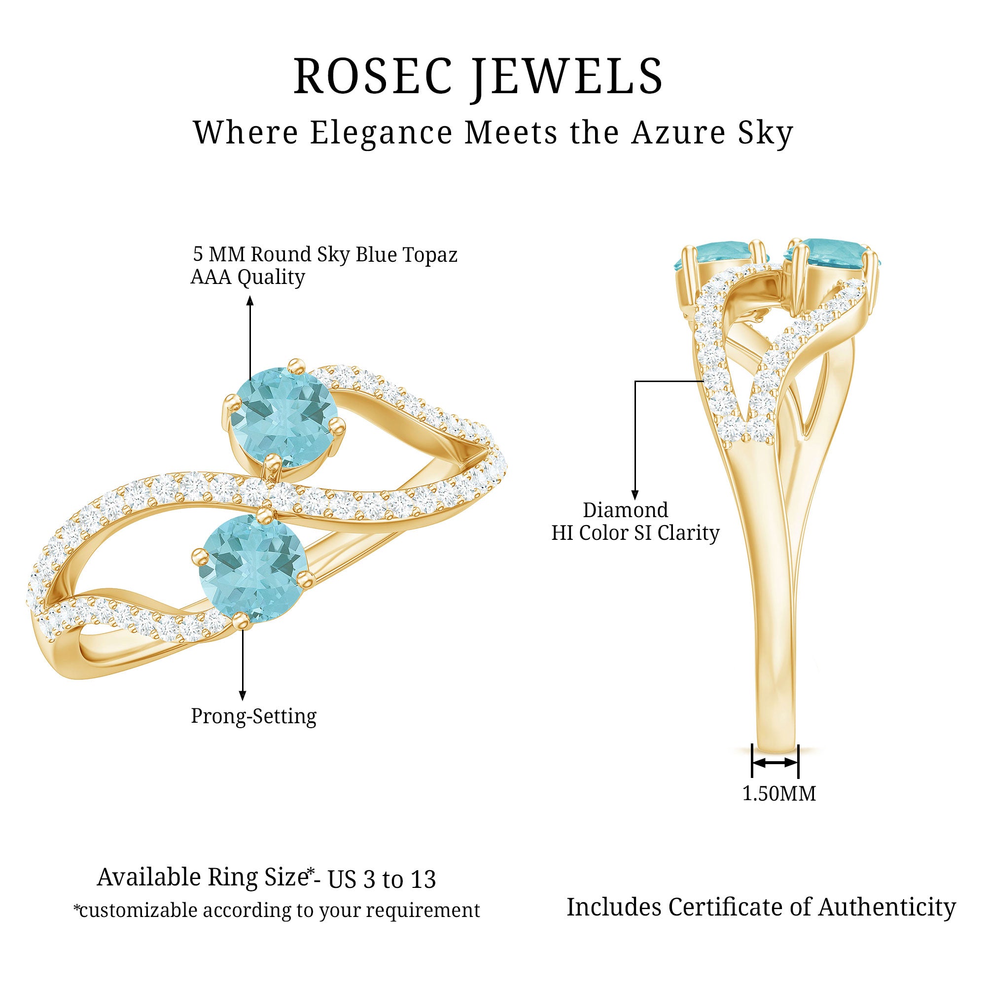 Flaunt Your Style with this Minimal Engagement Ring is crafted in solid gold which is embellished with Round Shape Sky Blue Topaz and Diamond in a prong setting. This Gold Engagement Ring is available in solid gold.