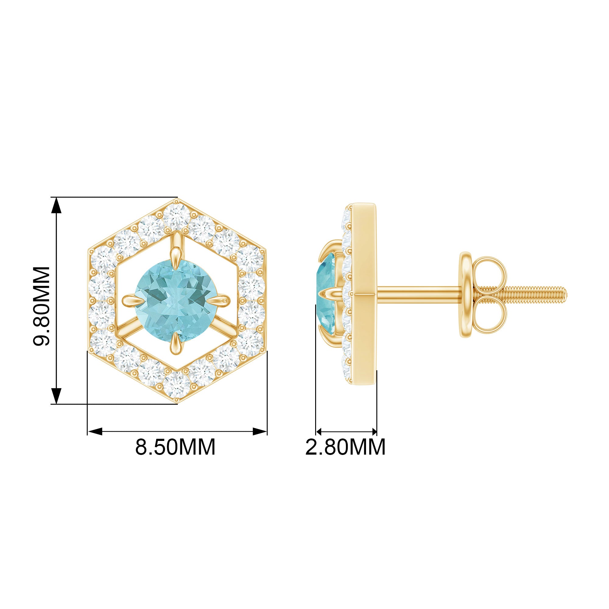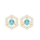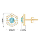 Feel unique with these Geometric Stud Earrings, adorned with Round Shape Sky Blue Topaz Gemstone set as a center stone with Diamond Accent. These Minimal Stud Earrings are crafted in Solid Gold