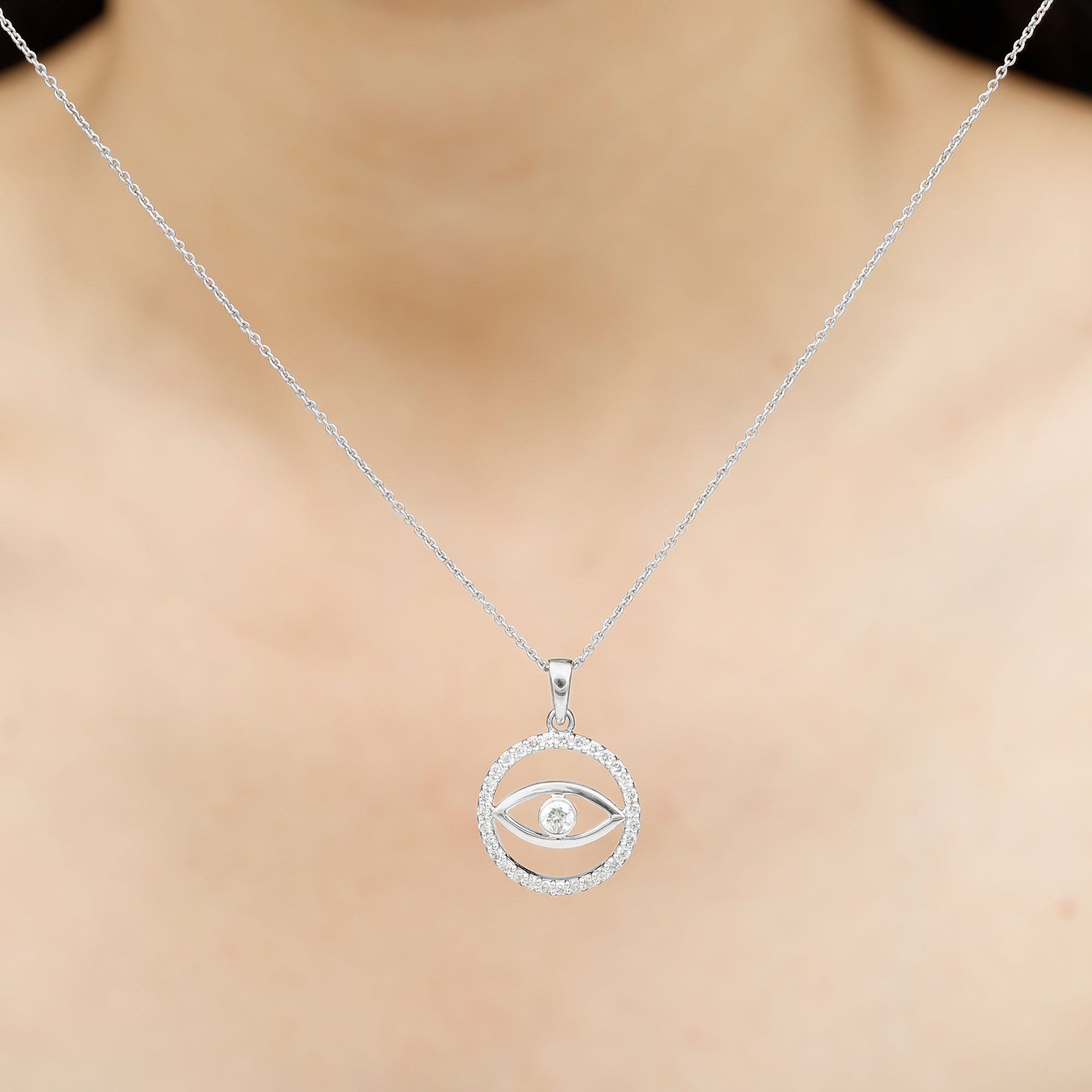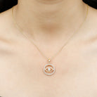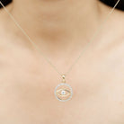 This trendy Evil Eye and Eternity Pendant is all what you need to set the trend out there. It is embedded with Round Shape Moissanite Gemstone set in the Bezel Setting at the centre and encircled by Moissanite Eternity. This pendant is crafted in solid Gold