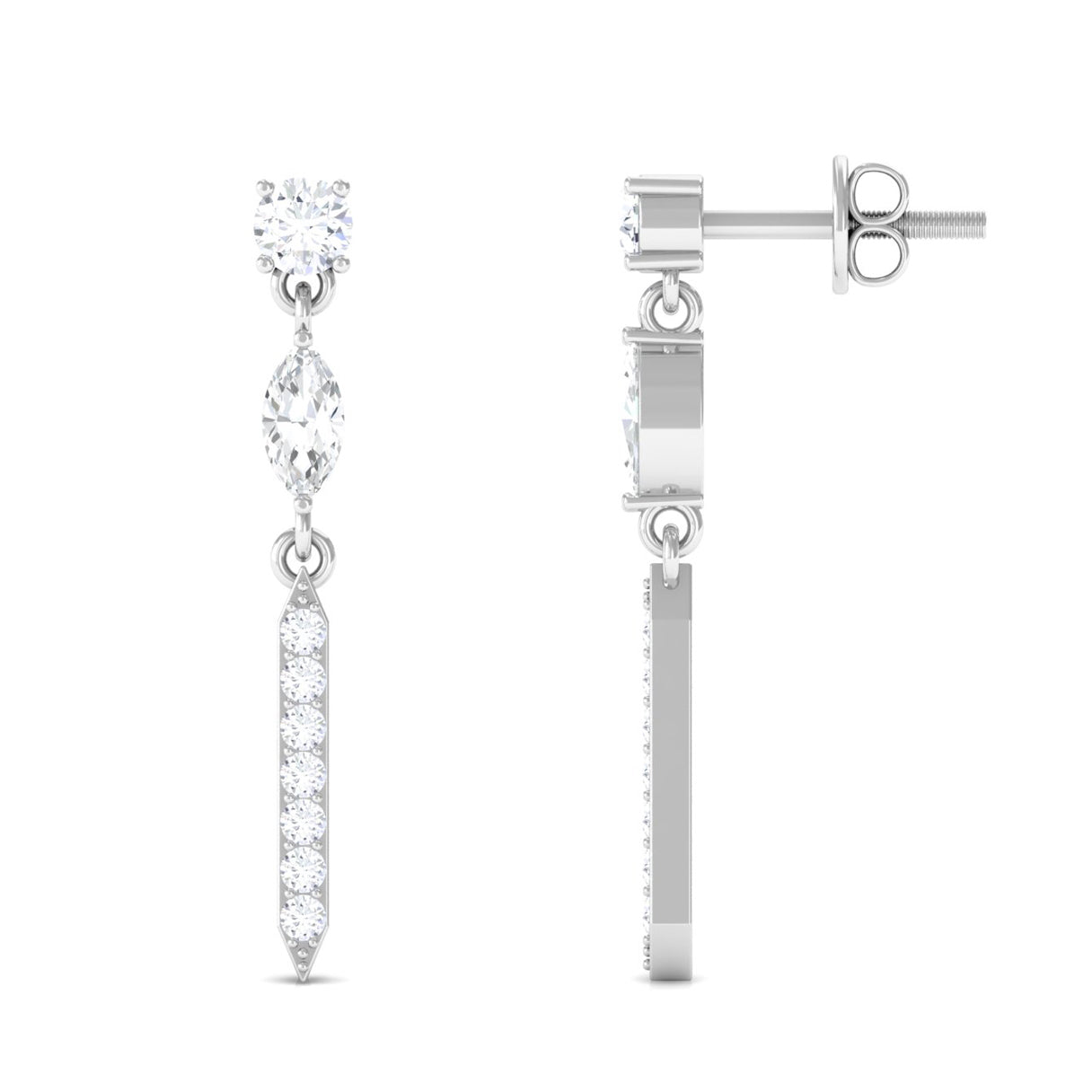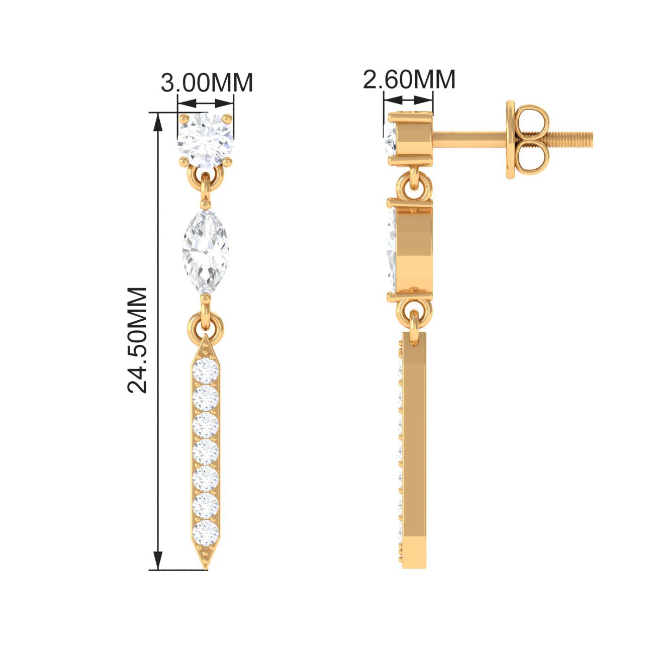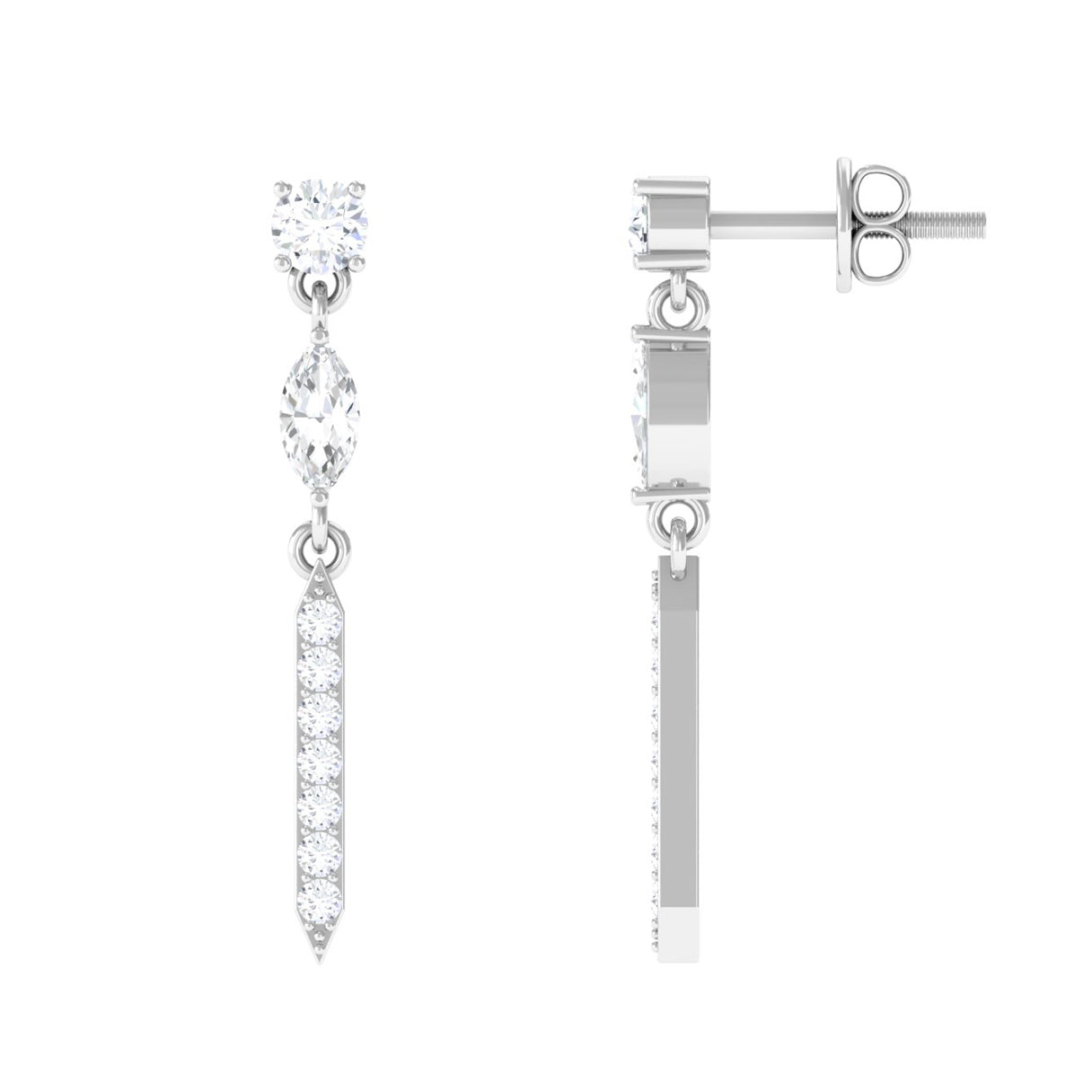 Elevate your style with our minimal Moissanite dangle earrings. Featuring a secure screw back design, they offer both elegance and comfort.