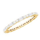 The stunning Moissanite Eternity Ring from Rosec Jewels is a perfect representation of love and commitment, crafted in a modern style suitable for everyday use. This ring showcases a lovely arrangement of sparkling moissanite stones in a full eternity design. It features elegant baguette cut stones set horizontally (east-west style) alongside round cut stones, enhancing its shine and appeal. Made with D color and VS1 clarity moissanite stones, this Eternity Wedding Band provides brilliant sparkle. Its minimalist design allows it to be worn alone for a simple look or stacked with other rings, including engagement rings, to create a unique style. Whether you need a ring for daily wear or a special occasion, this Wedding Anniversary Ring is a perfect fit. This versatile piece is great for brides or anyone seeking a meaningful gift for weddings, anniversaries, or significant milestones. The sleek design complements both modern and classic jewelry, making it a timeless addition to any collection. It also includes a certificate of authenticity, guaranteeing the quality of the stones. Delivered in a beautiful jewelry box, this Moissanite Stackable Ring is ready to be gifted or cherished as a keepsake.