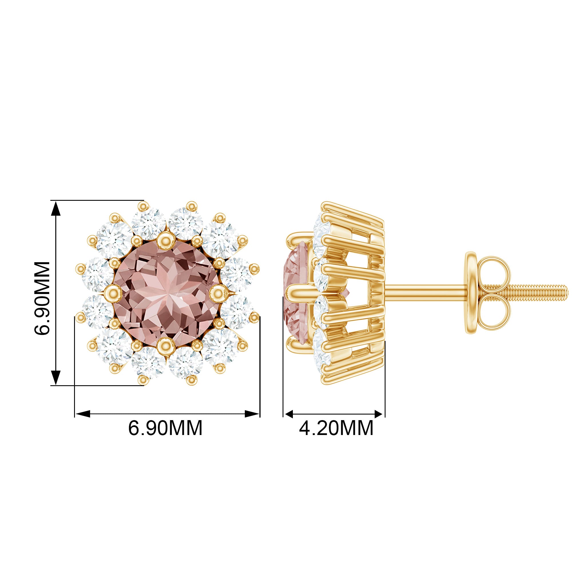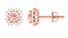 A Celebration without Gift is Incomplete, a Gift of Jewelry will bring smiles of delight on Mothers Day. Explore these Stud Earrings adorned with Round Shape Morganite in Prong Setting with Halo Diamond, crafted in Solid Gold Metal.