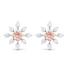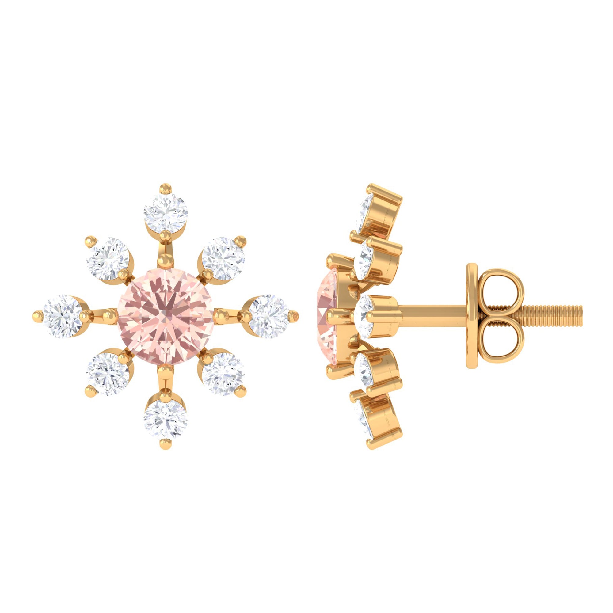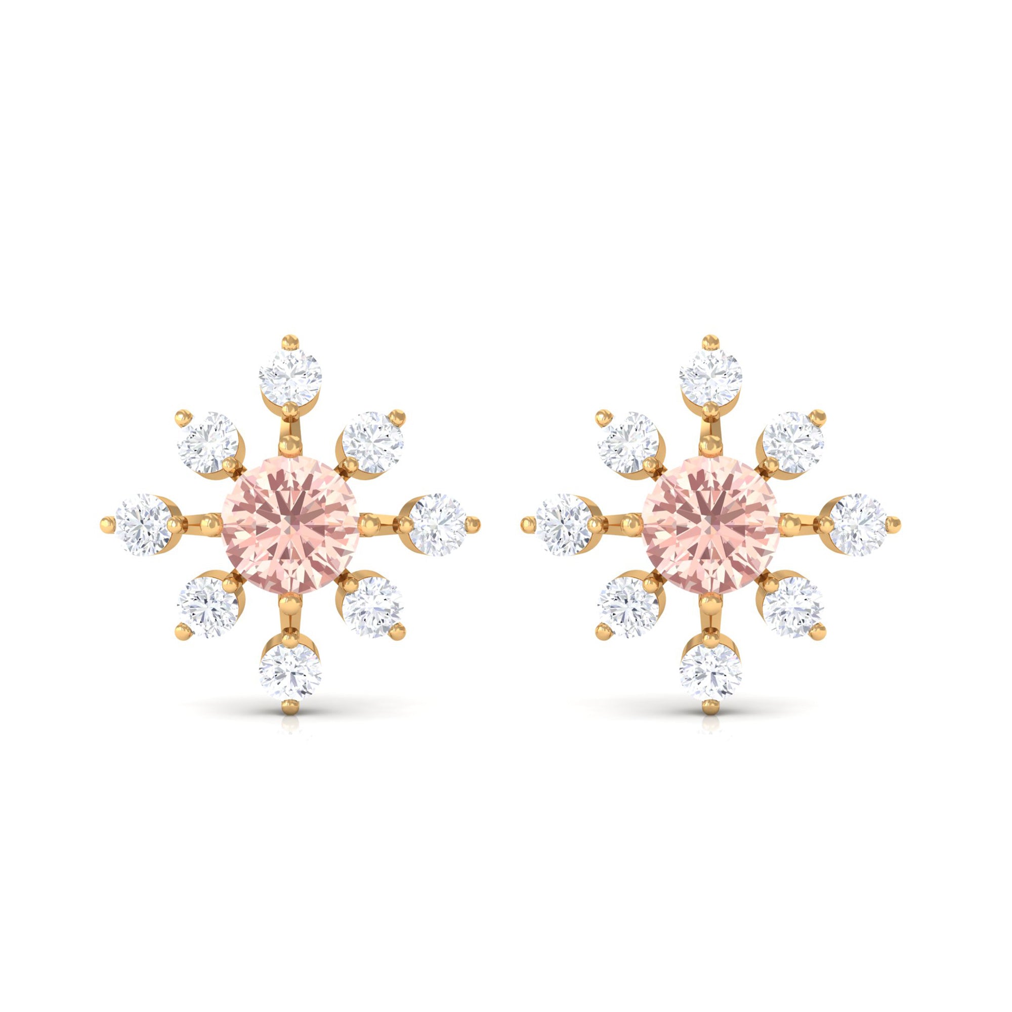 Adorn yourself with these lovely Flower Stud Earrings set with Round Shape Morganite and Diamond in Prong Setting. These Floral Earrings are crafted with Solid Gold to create a luxurious appearance.