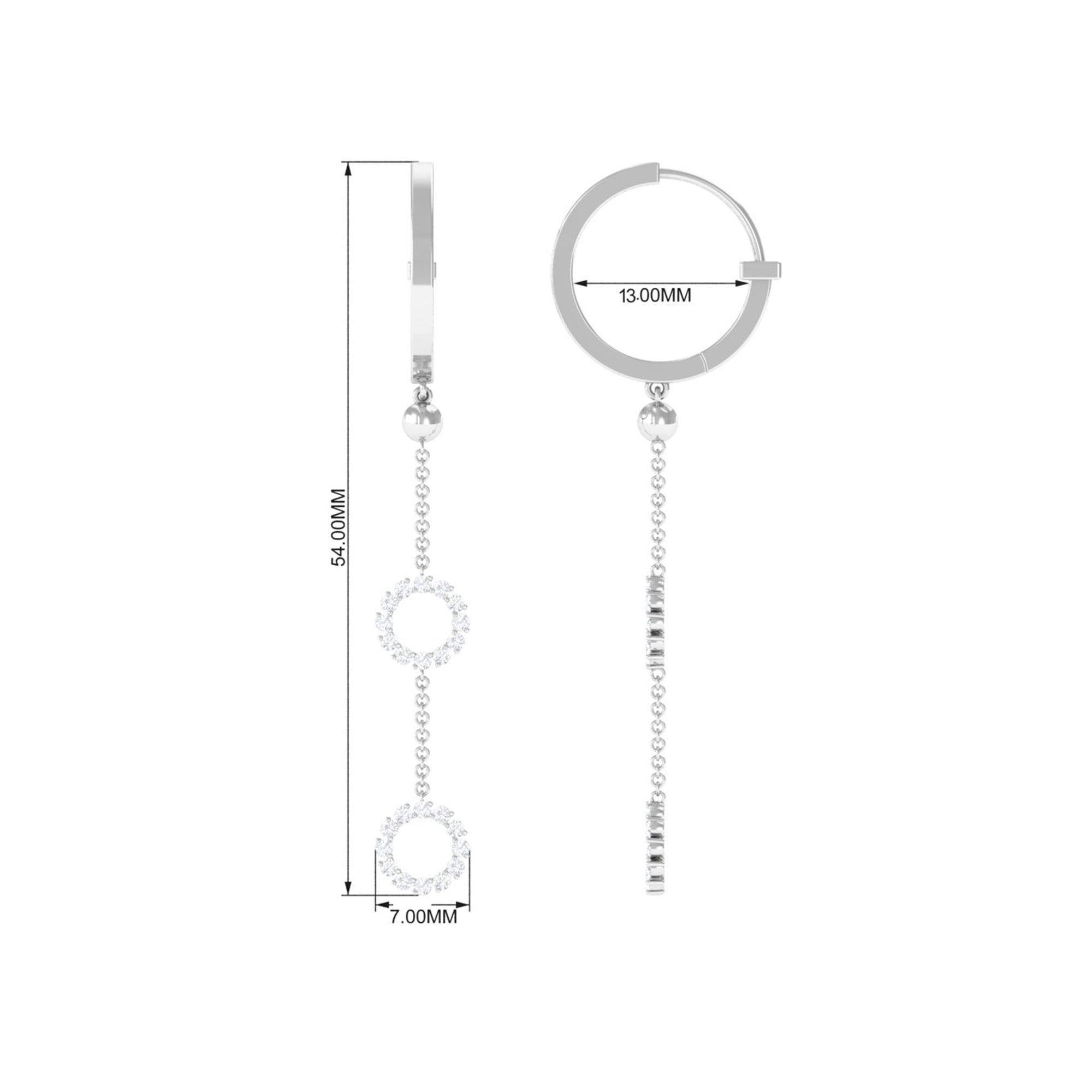 1 CT Open Circle Diamond Dangle Chain Hoop Earrings