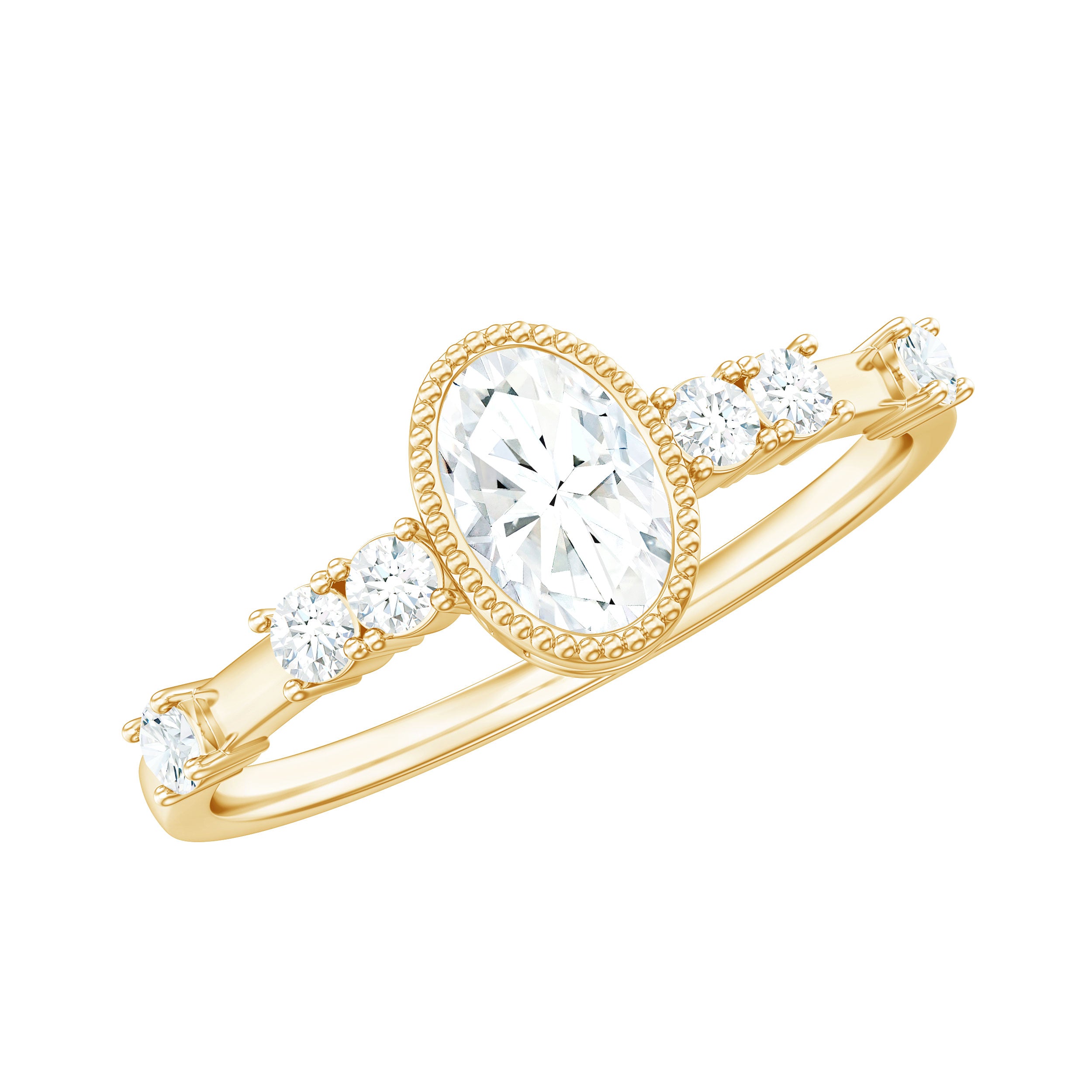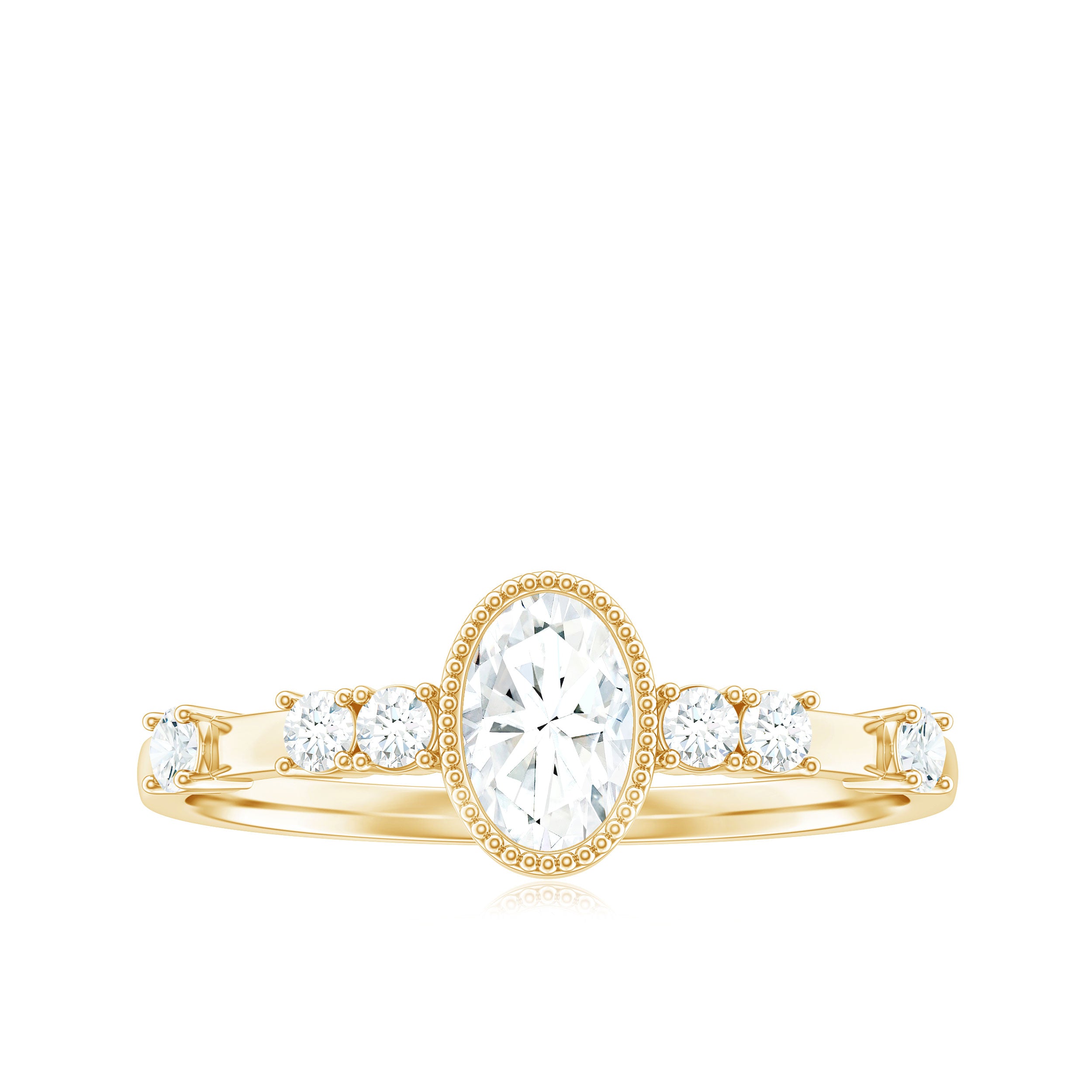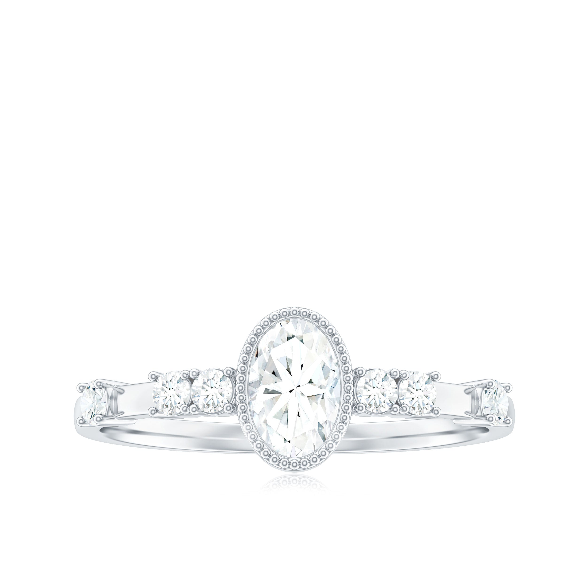 Oval Shape Zircon Solitaire Engagement Ring with Side Stones