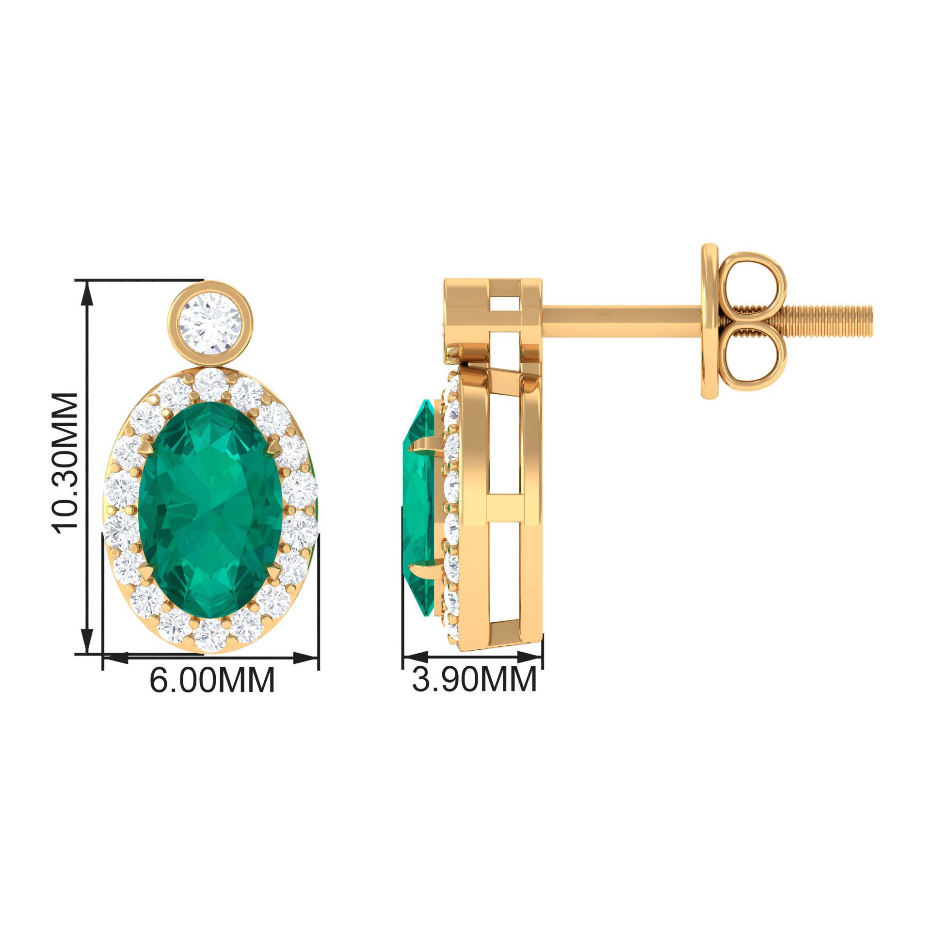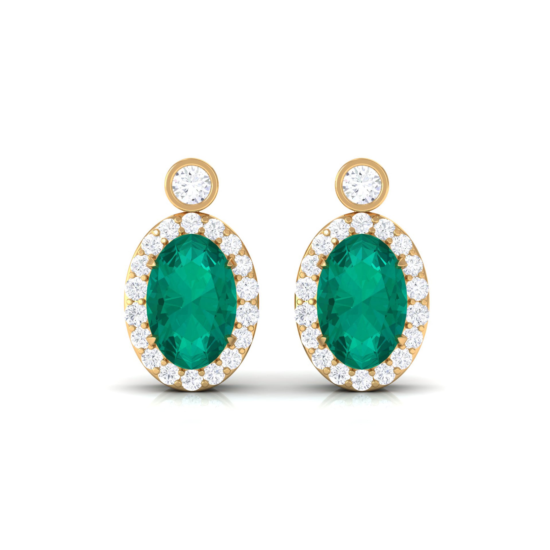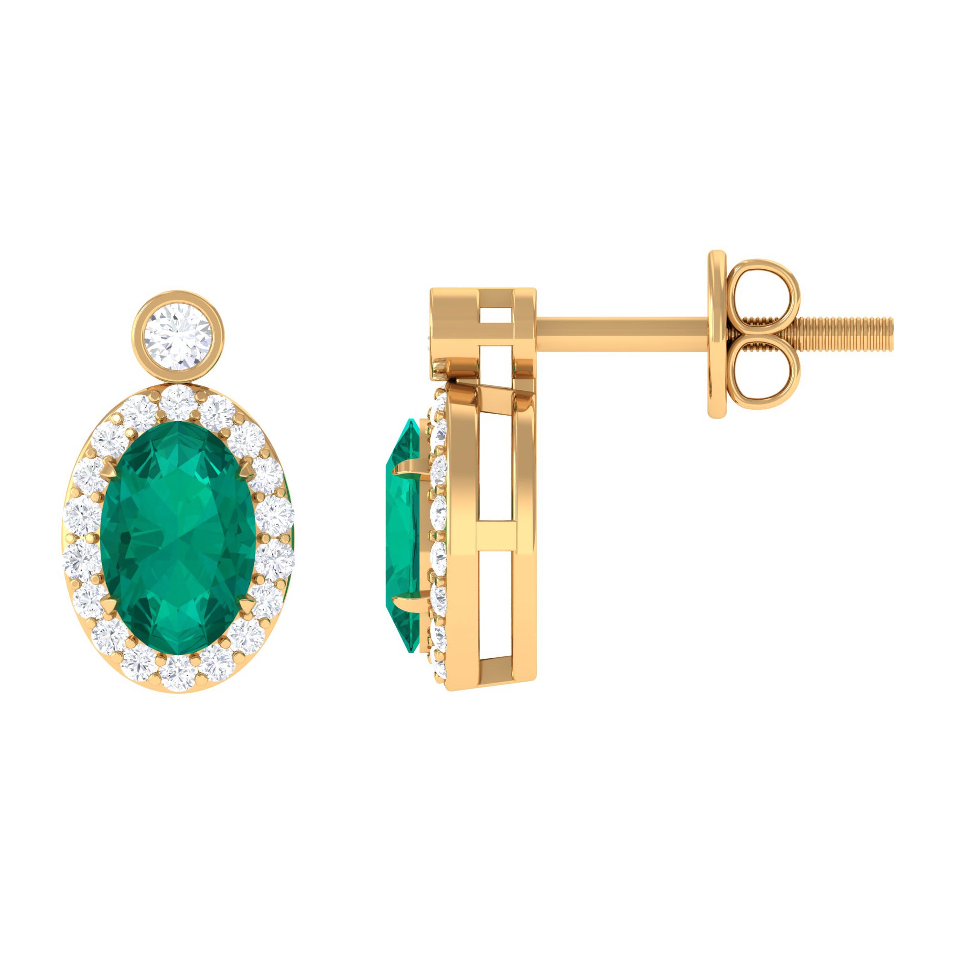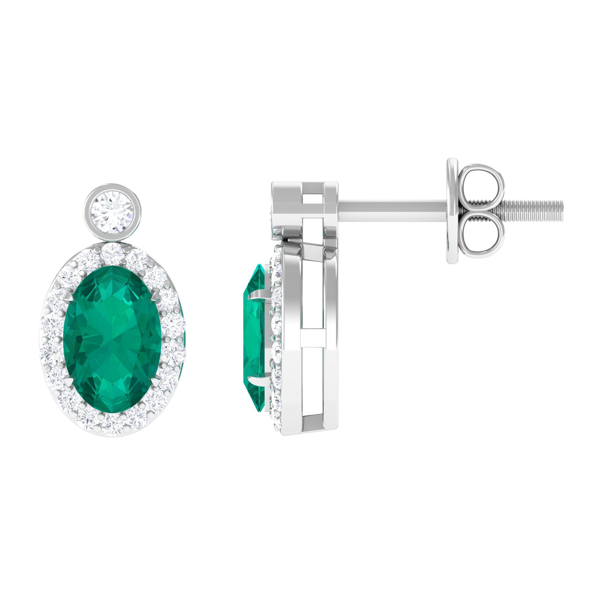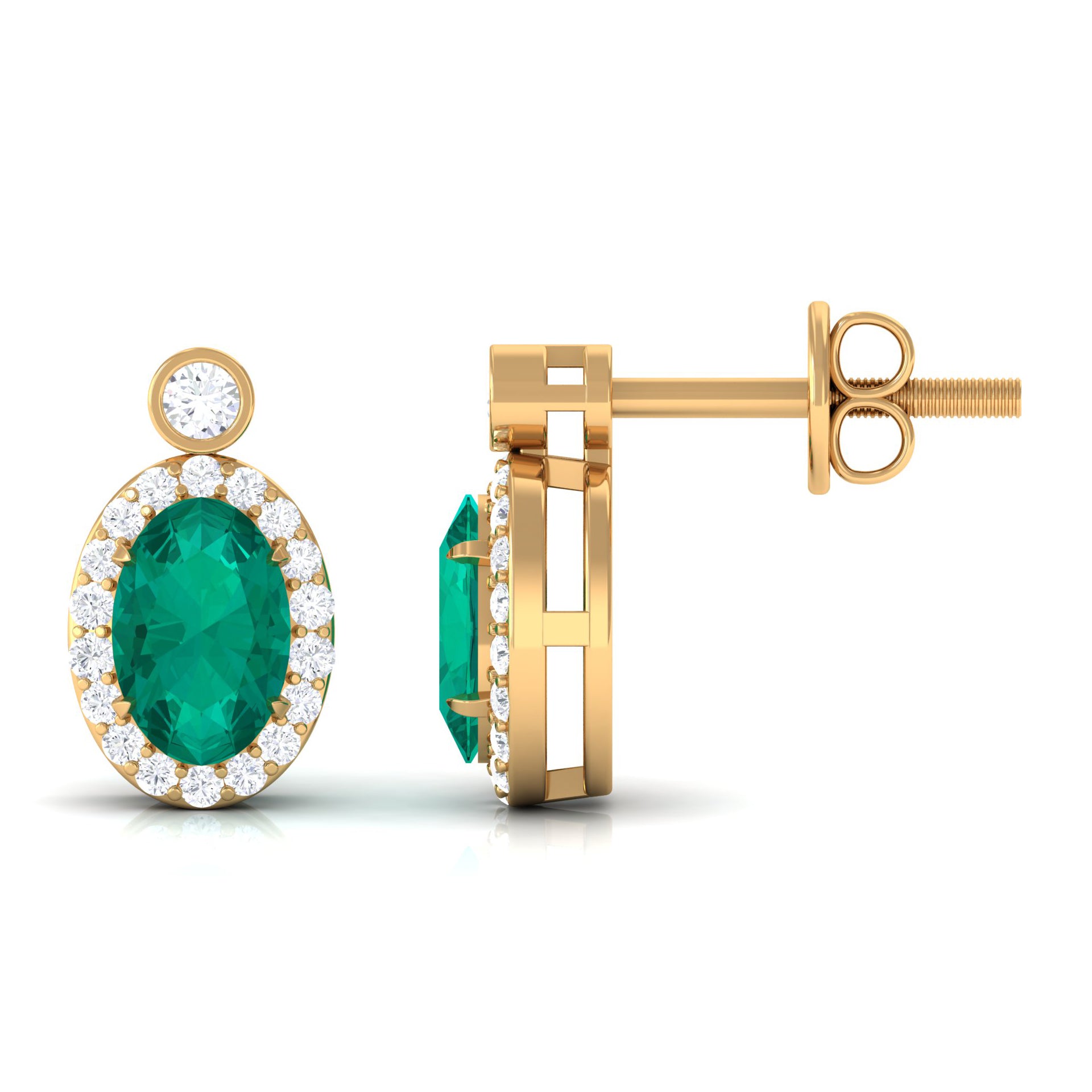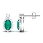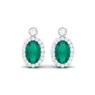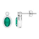Captivating stud earrings with oval emerald gemstones and a halo of dazzling Diamond, add elegance and luxury to any outfit.