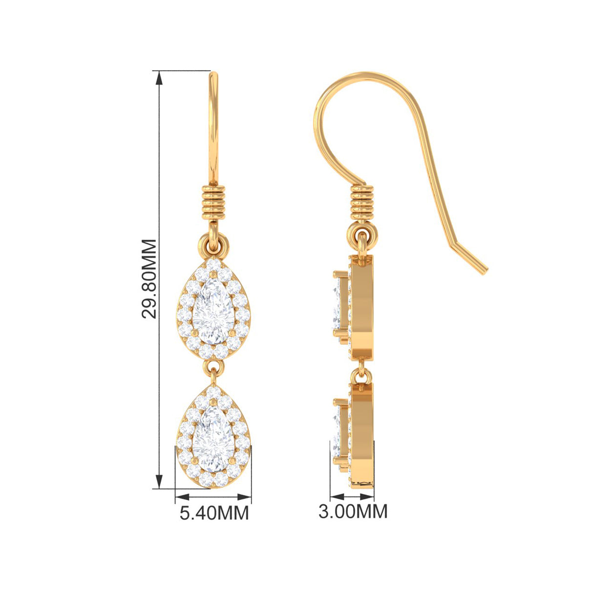Every woman possesses a unique sparkle that complements her beauty. Discover yours with these alluring Moissanite Dangle Earrings. These dangle drop earrings feature pear-cut moissanite arranged in an eye-catching dangle style, embellished with dainty round moissanite accents around them. Crafted from solid gold, these dangler earrings are a must-have accessory that will enhance your radiance and warmth.