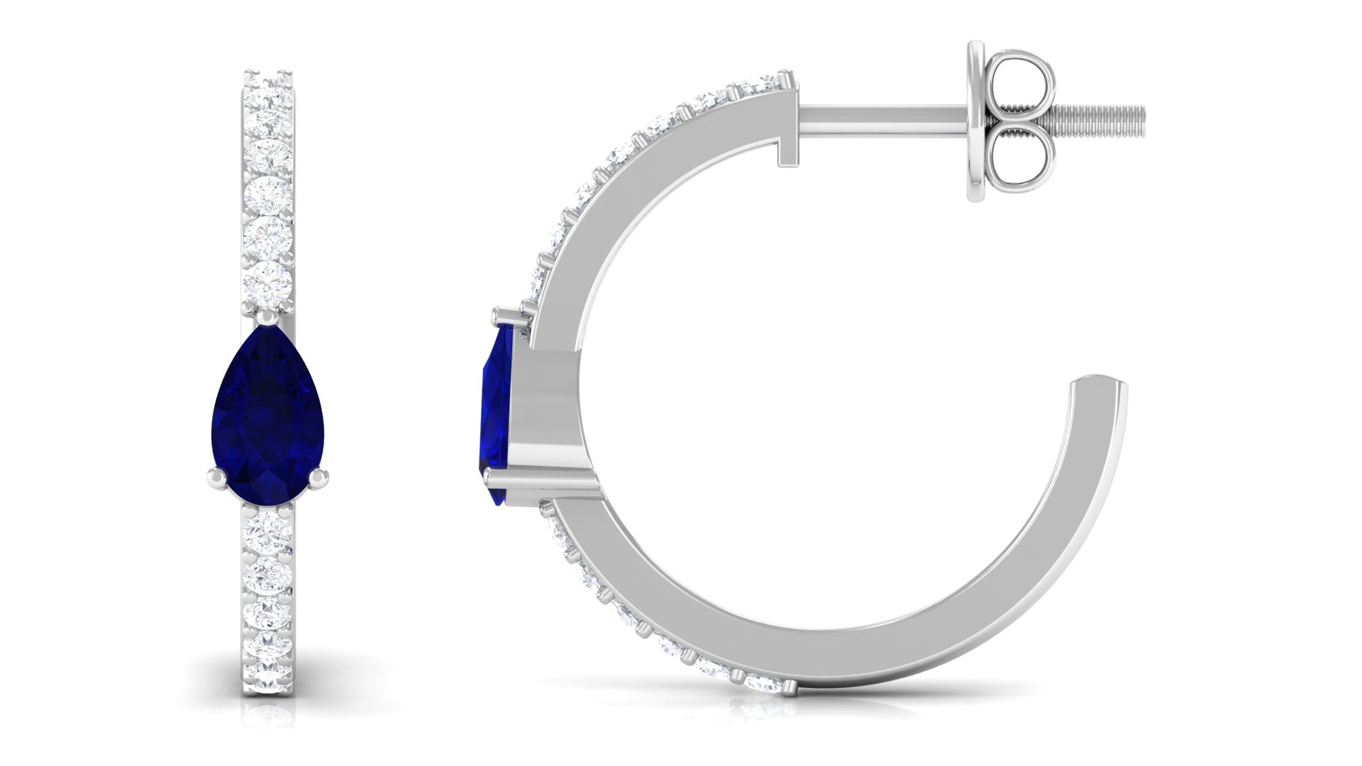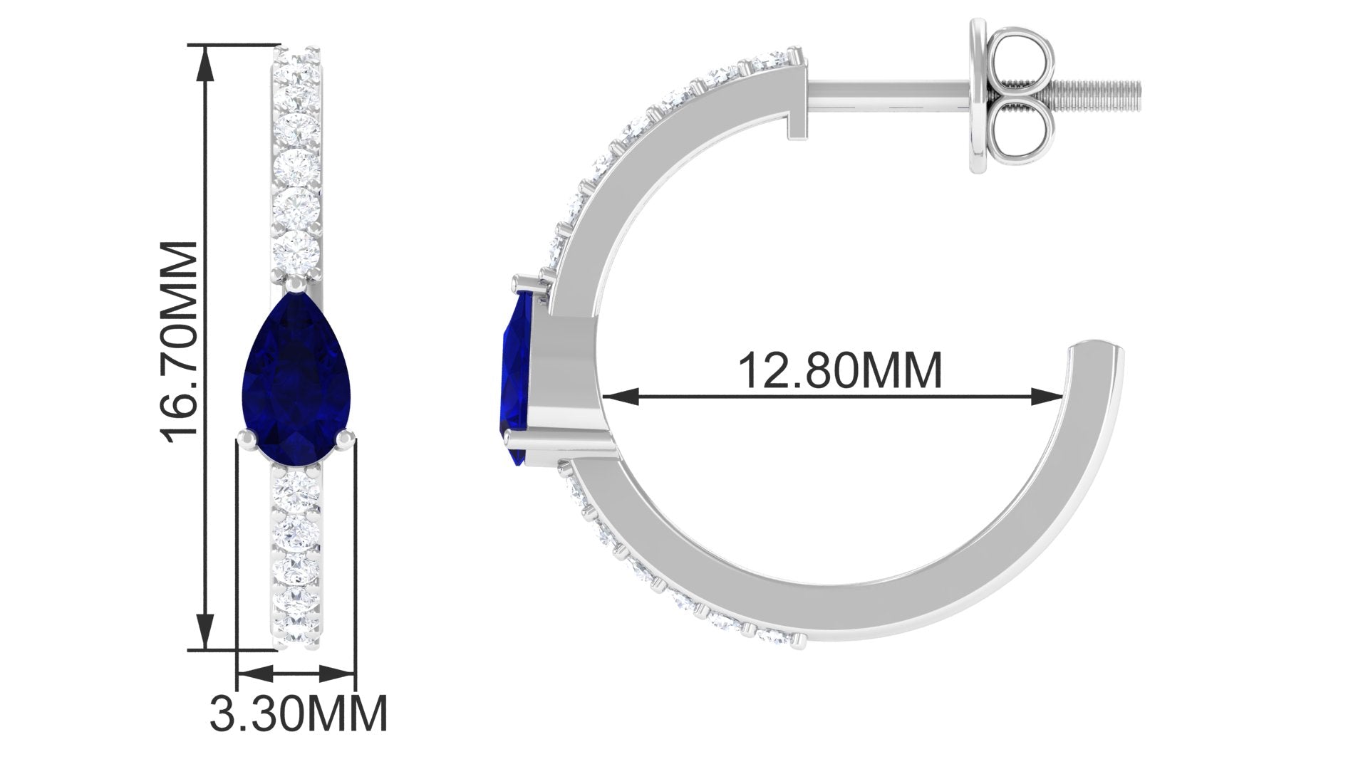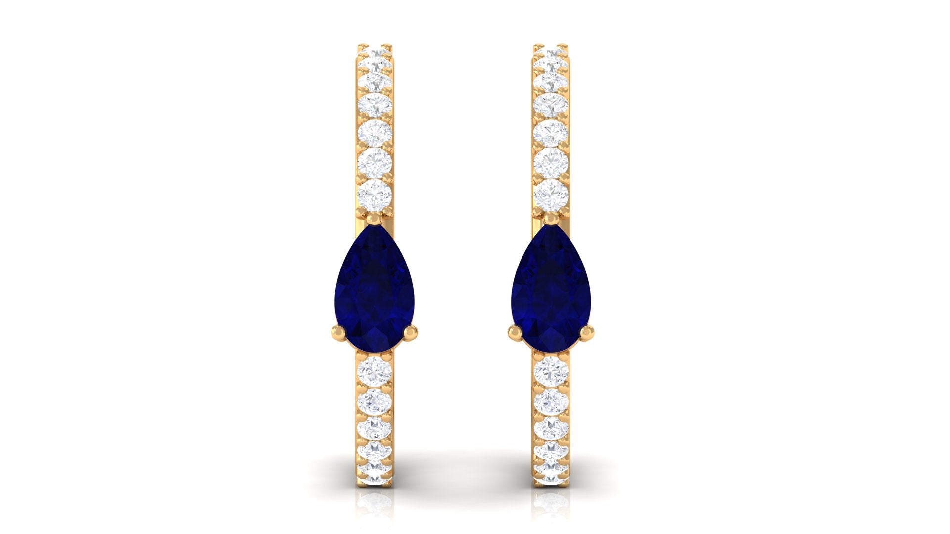 1 CT Pear Cut Blue Sapphire and Diamond Hoop Earrings