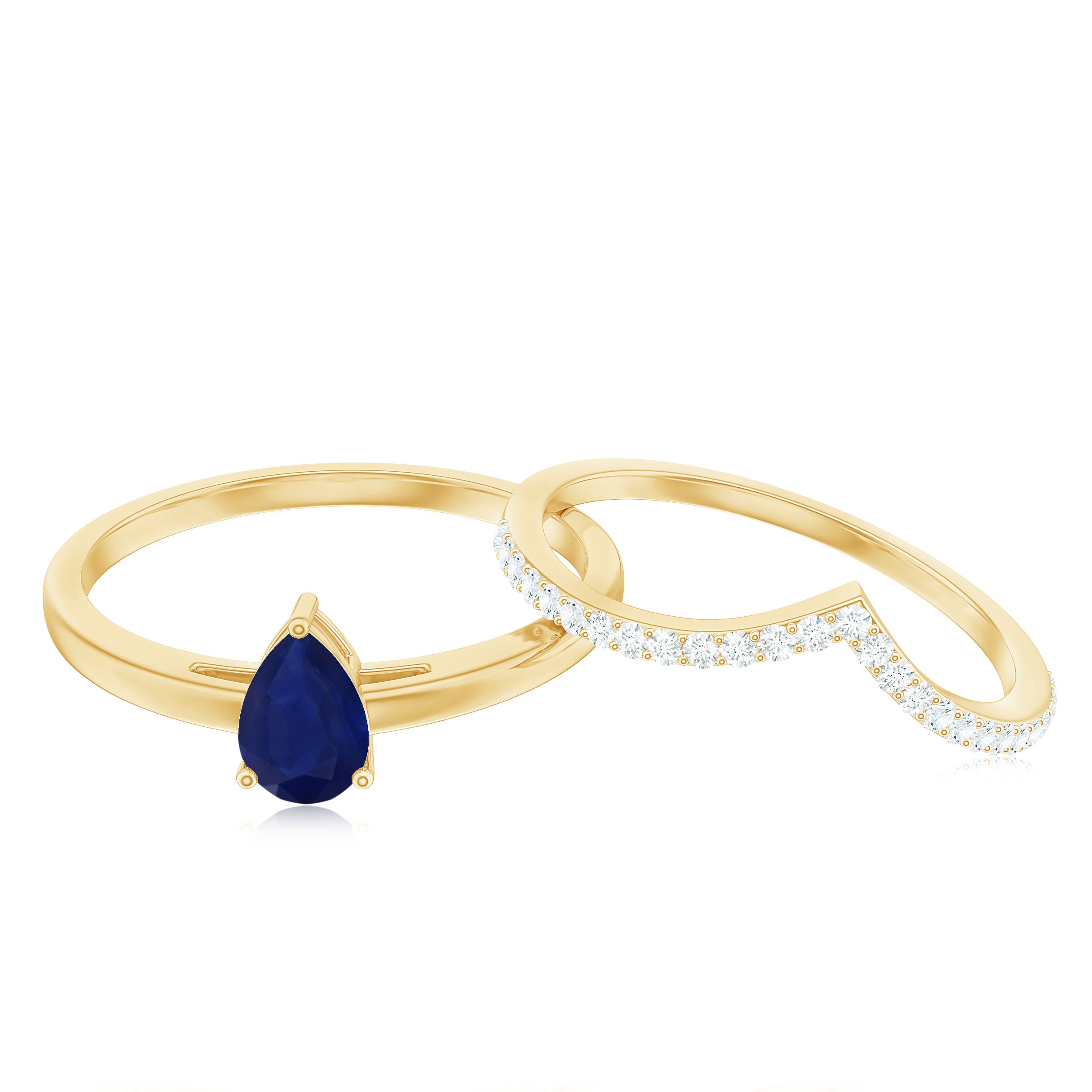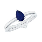 1 CT Pear Cut Blue Sapphire Solitaire Ring Set with Diamond Enhancer Band