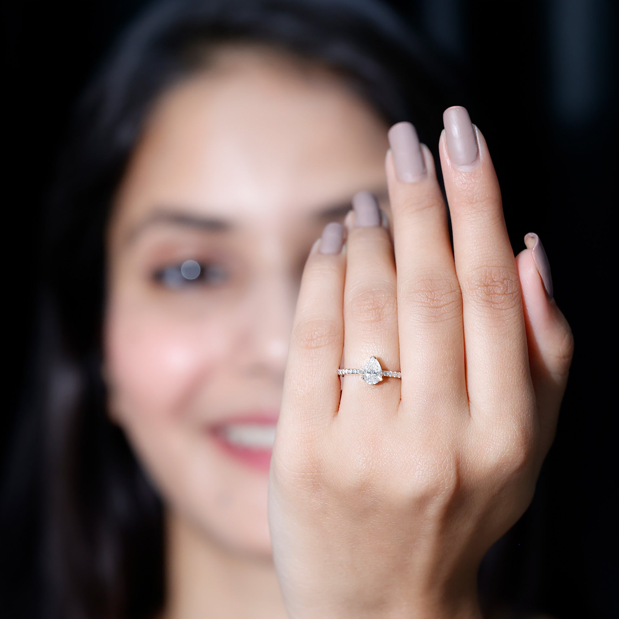 Say yes to timeless elegance with a modern twist. This Lab Grown Diamond Engagement Ring is designed to make your love story sparkle brighter than ever. At the heart of this breathtaking ring sits a stunning 5X7 MM Pear Shape Lab Grown Diamond set in Claw Setting, reflecting light from every angle. Its unique Teardrop Shape symbolizes a love that is both passionate and graceful, while Round Shape Lab Diamond Side Stones add just the right touch of extra brilliance to complete the look. The Delicate Band, adorned with shimmering stones, enhances the beauty of the center stone without overpowering its charm. Perfect for the bride who loves a blend of classic romance and fresh style, this Teardrop Ring captures attention most elegantly. Ethically created and crafted with perfection, this Man Made Diamond Engagement Ring celebrates not only your commitment but also your values. The EF-VS Quality Lab Created Diamond stones ensure clarity, brilliance, and fire that shine in every moment. A ring this radiant is not just a symbol, it is a promise, beautifully captured in sparkle. Make forever unforgettable with a Pear Shaped Diamond Ring (Ethical) that is as rare and remarkable as your bond.