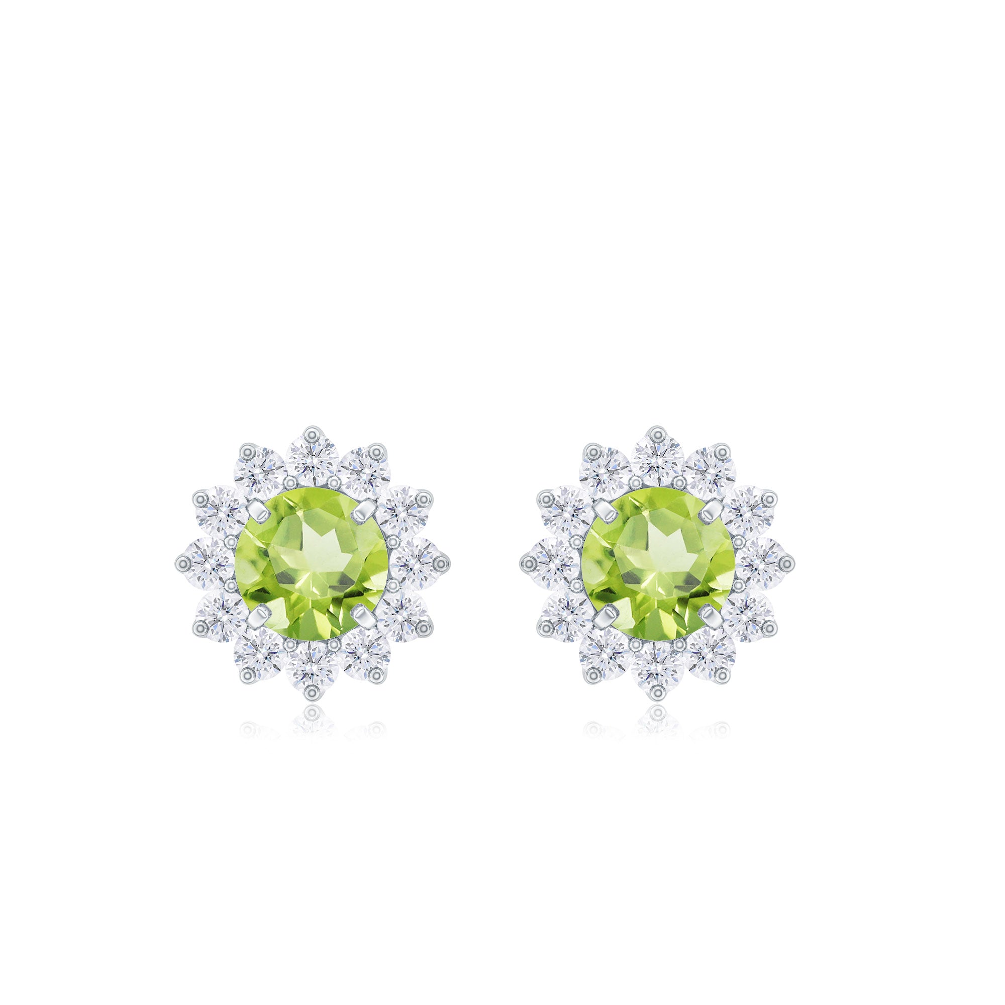 1 CT Peridot and Diamond Flower Halo Stud Earrings