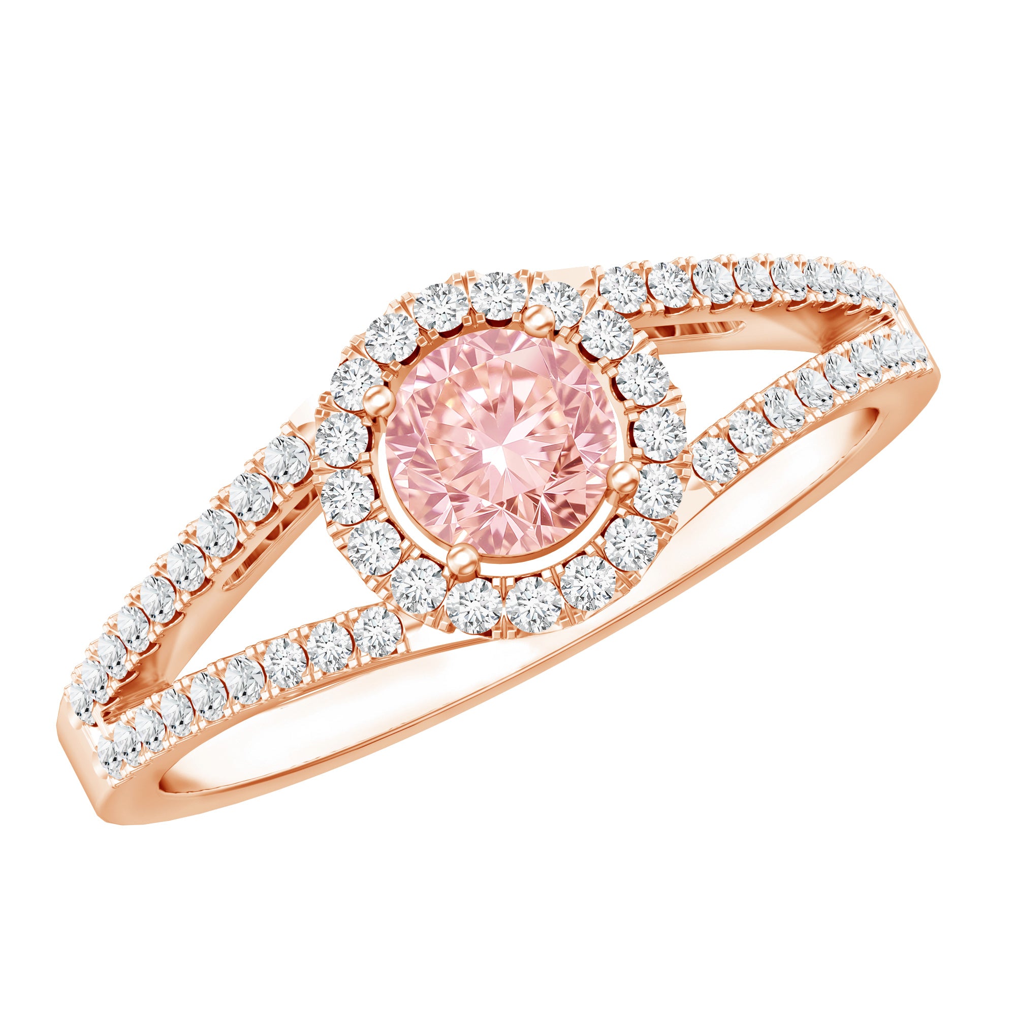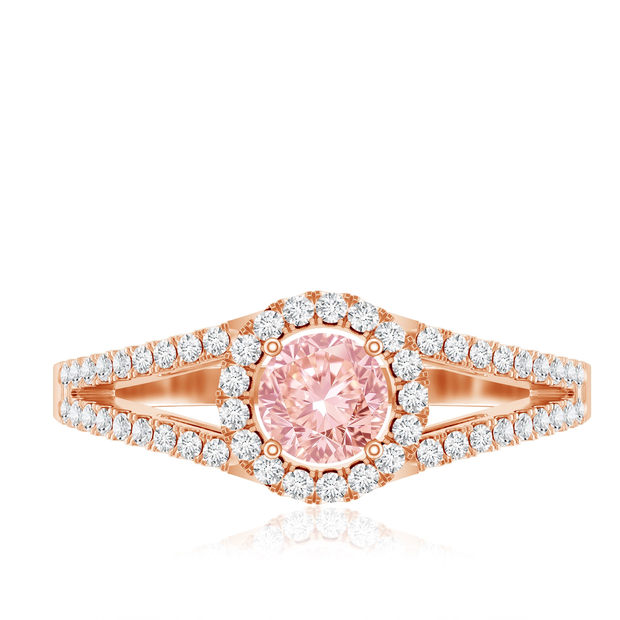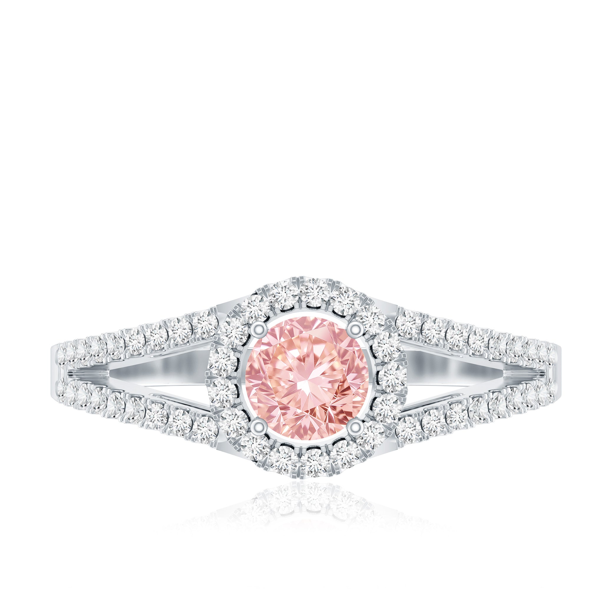 1 CT Pink Lab Grown Diamond Halo Engagement Ring
