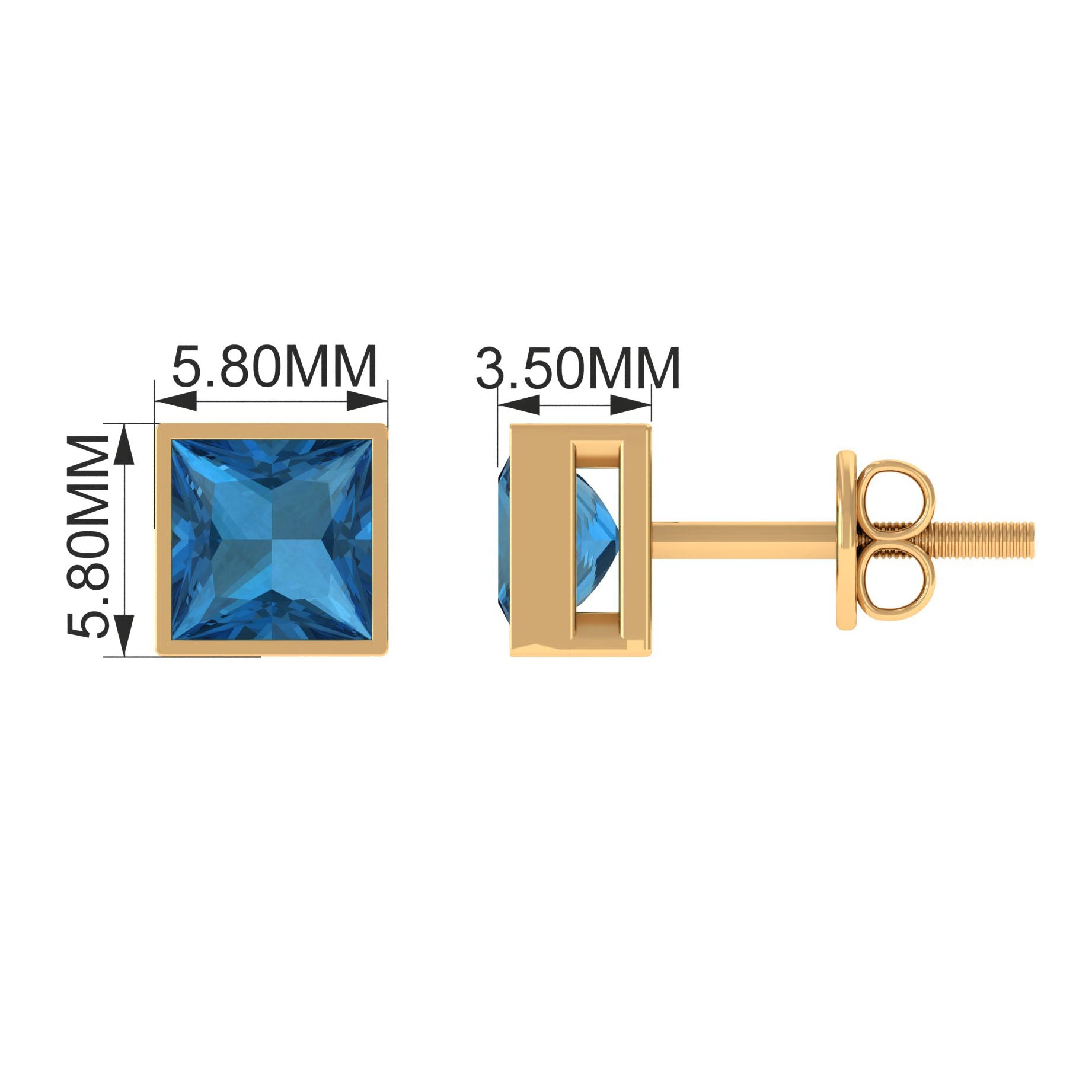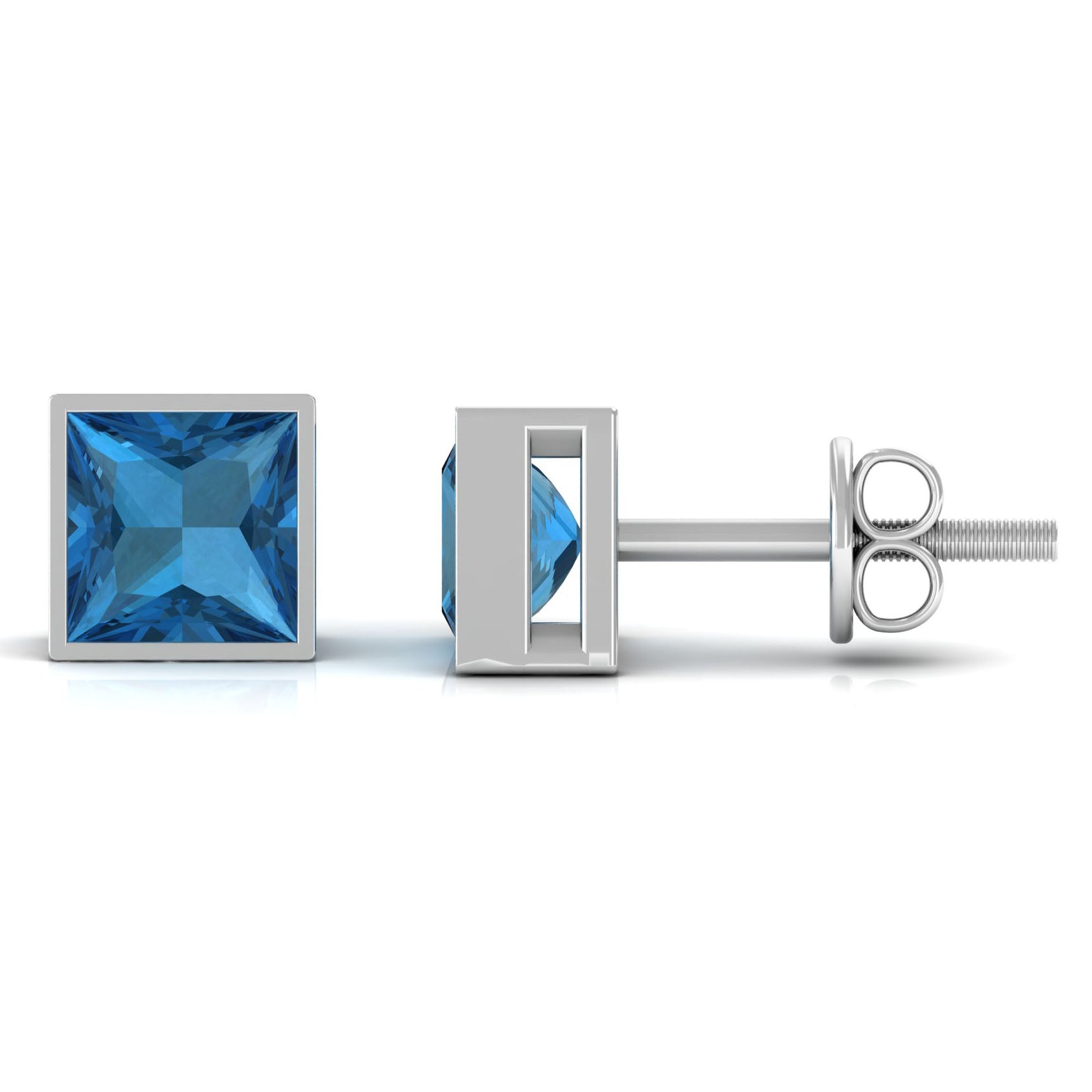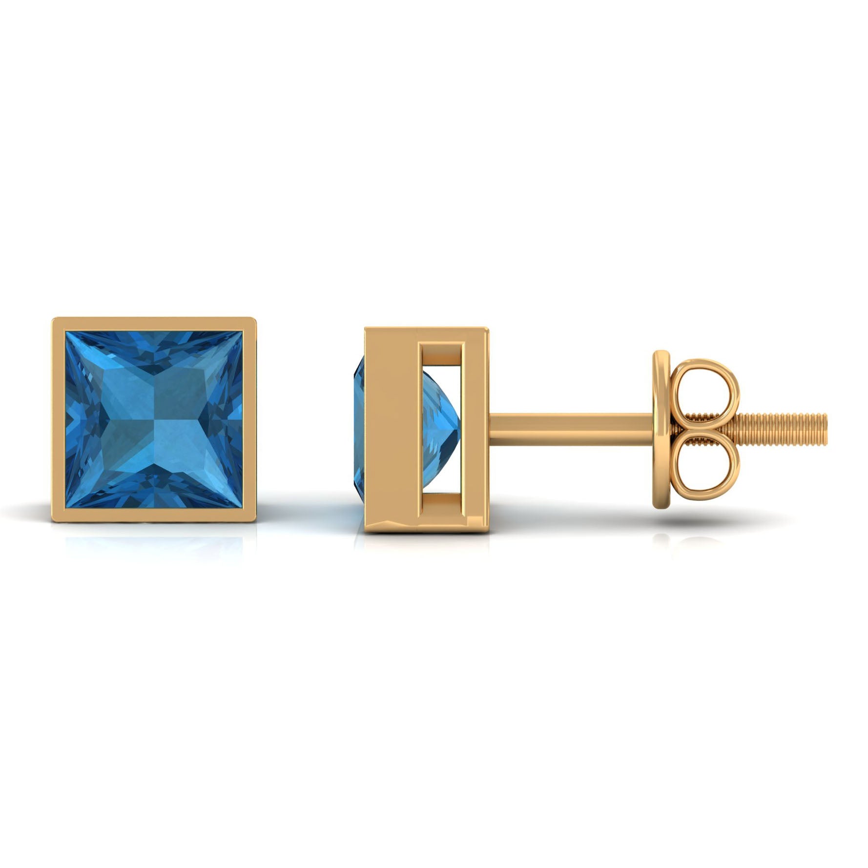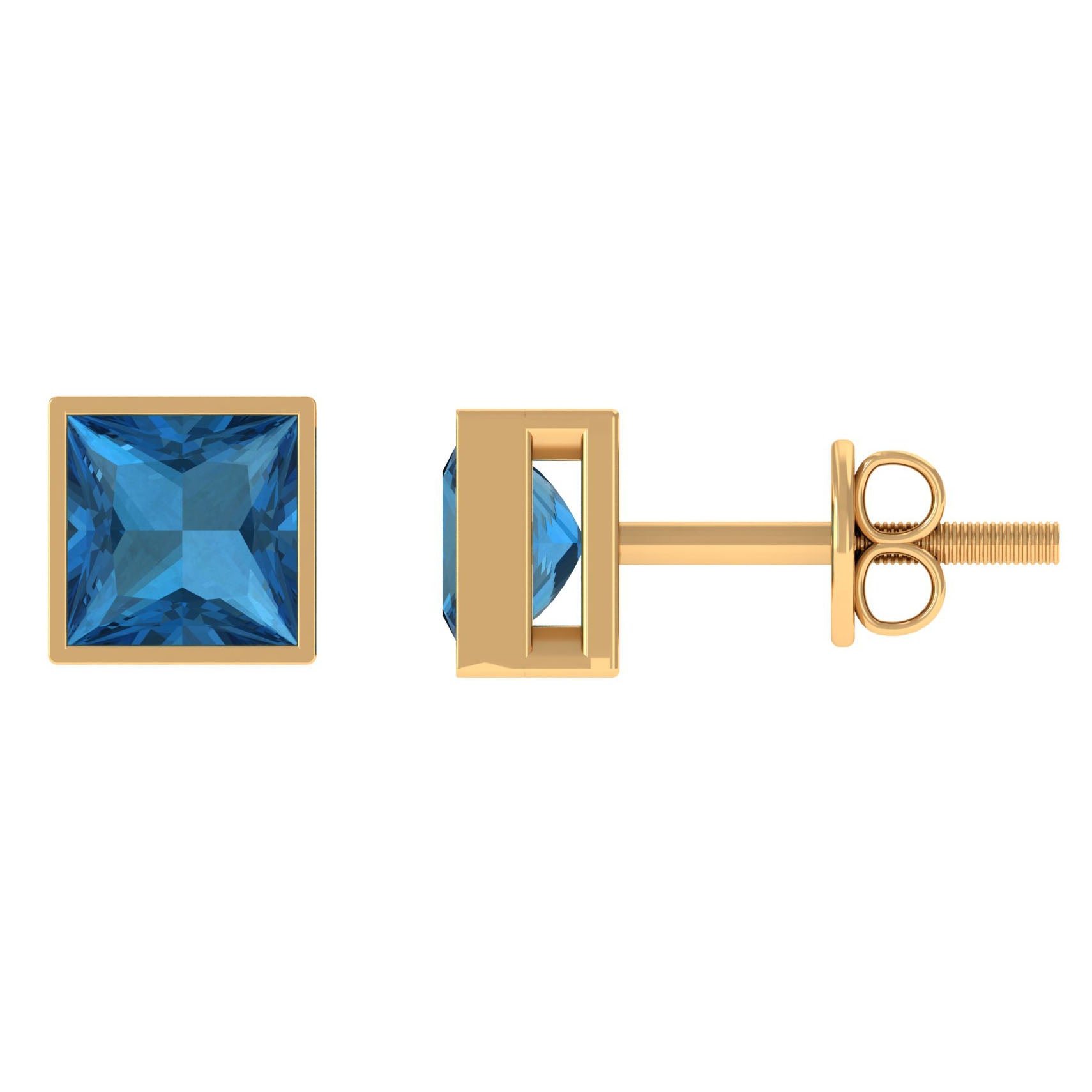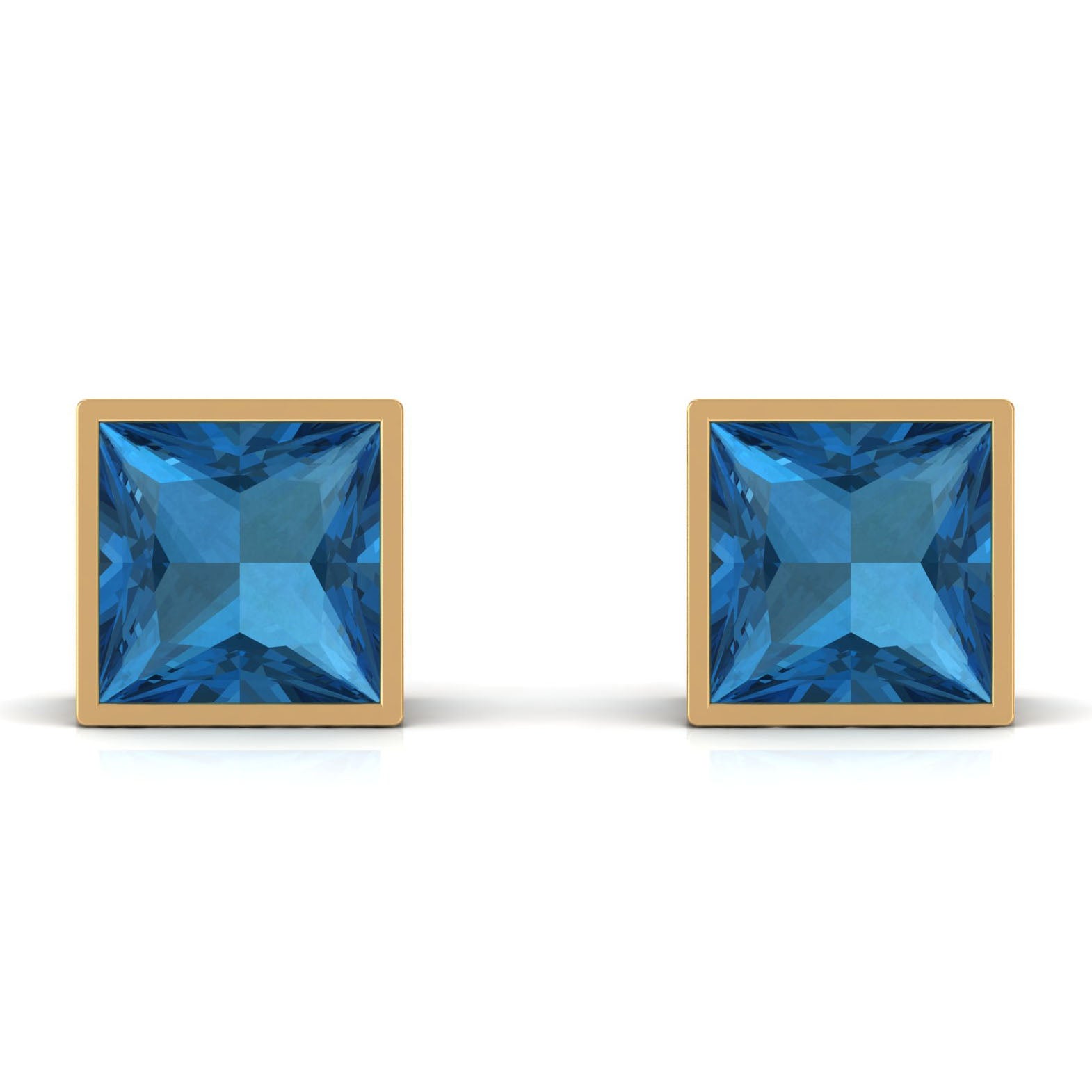 These elegant Solitaire Stud Earrings are designed with Princess Cut London Blue Topaz Solitaire in Bezel Setting to make for a trendy choice for the special occasions. These earrings are crafted in 14K Gold.