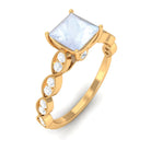 1 CT Princess Cut Moonstone Solitaire Ring with Diamond Side Stones