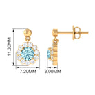 Complete your outfit with this elegantly designed Aquamarine Earrings. This Flower Drop Earrings is crafted with Gold and adorned with Round Shape Aquamarine with Diamond to make for a lovely choice for different occasions. These Halo Earrings and your love make her eyes glitter.