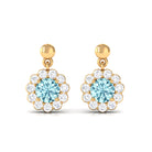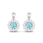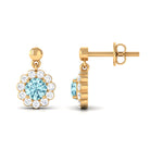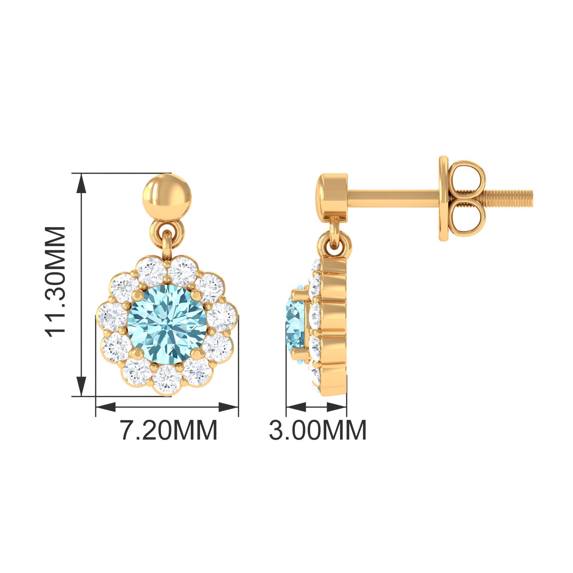 1 CT Real Aquamarine and Diamond Flower Halo Drop Earrings