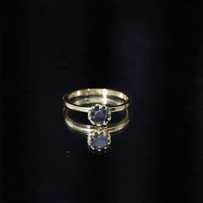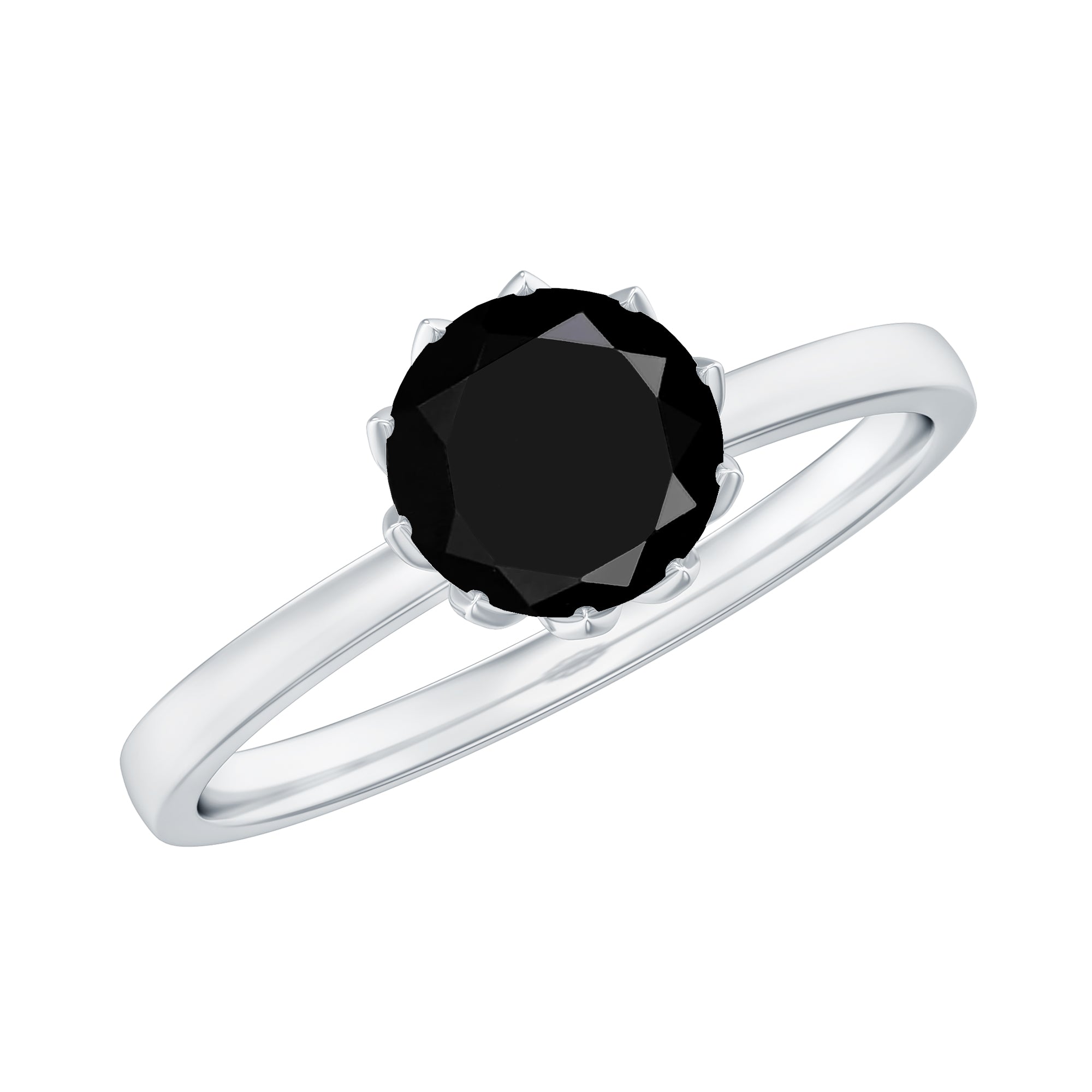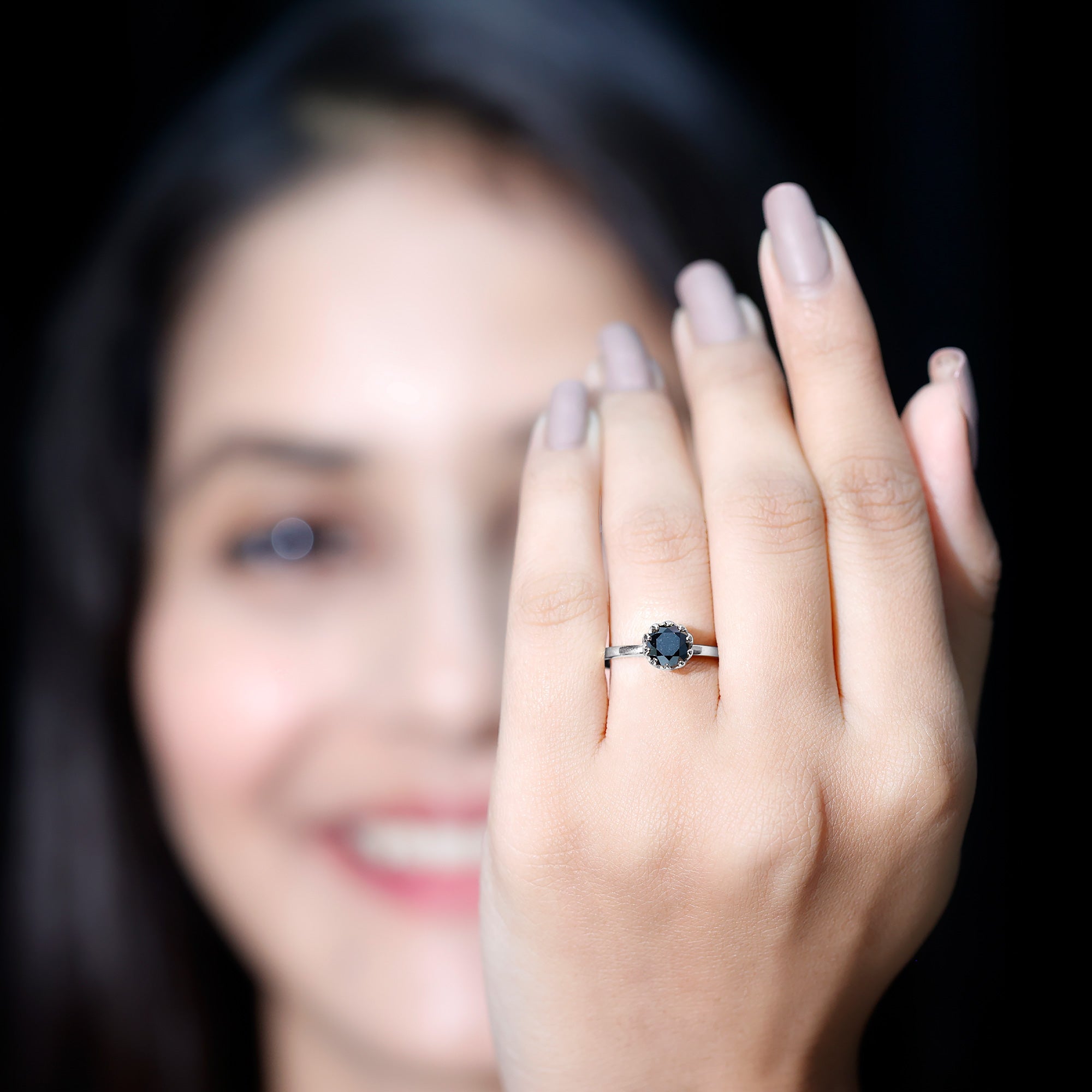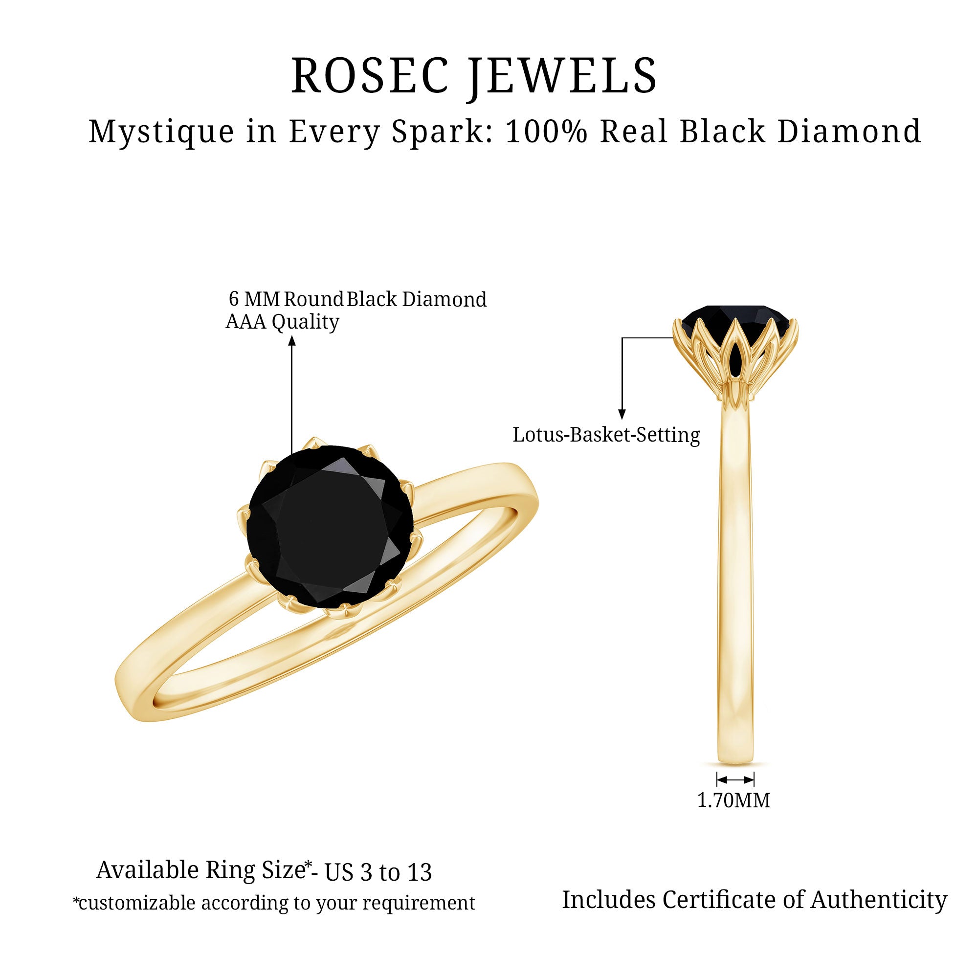 1 CT Real Black Diamond Solitaire Ring in Lotus Basket Setting