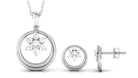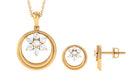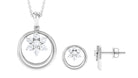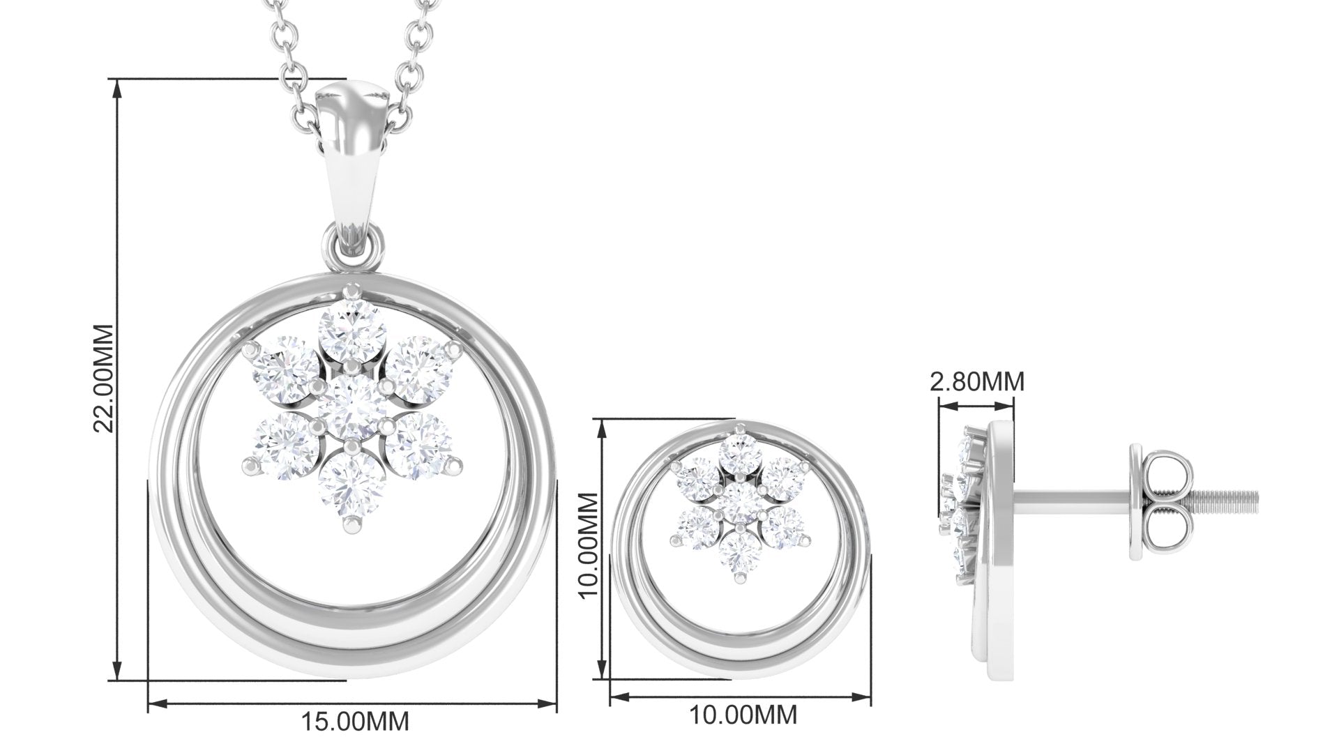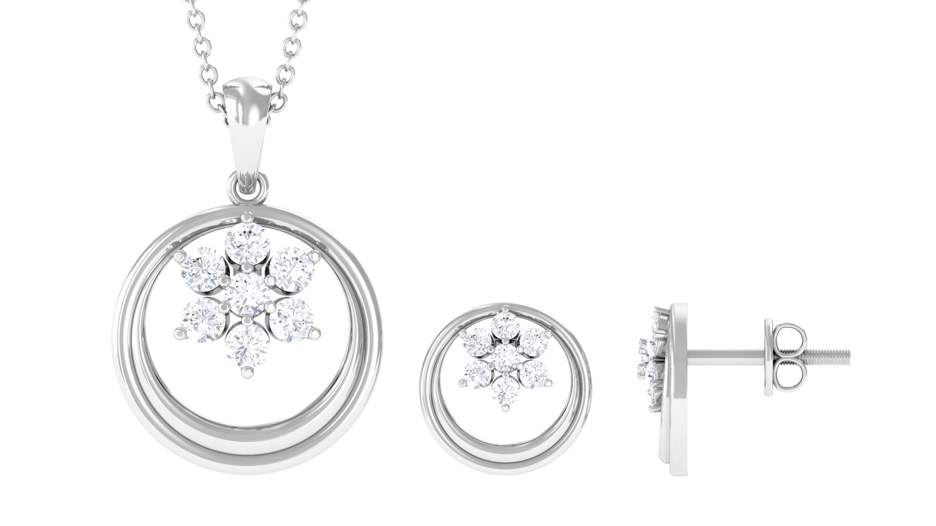 1 CT Real Diamond Floral Pendant Necklace and Stud Earring Set