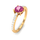 1 CT Real Pink Tourmaline Solitaire Promise Ring with Diamond Side Stones
