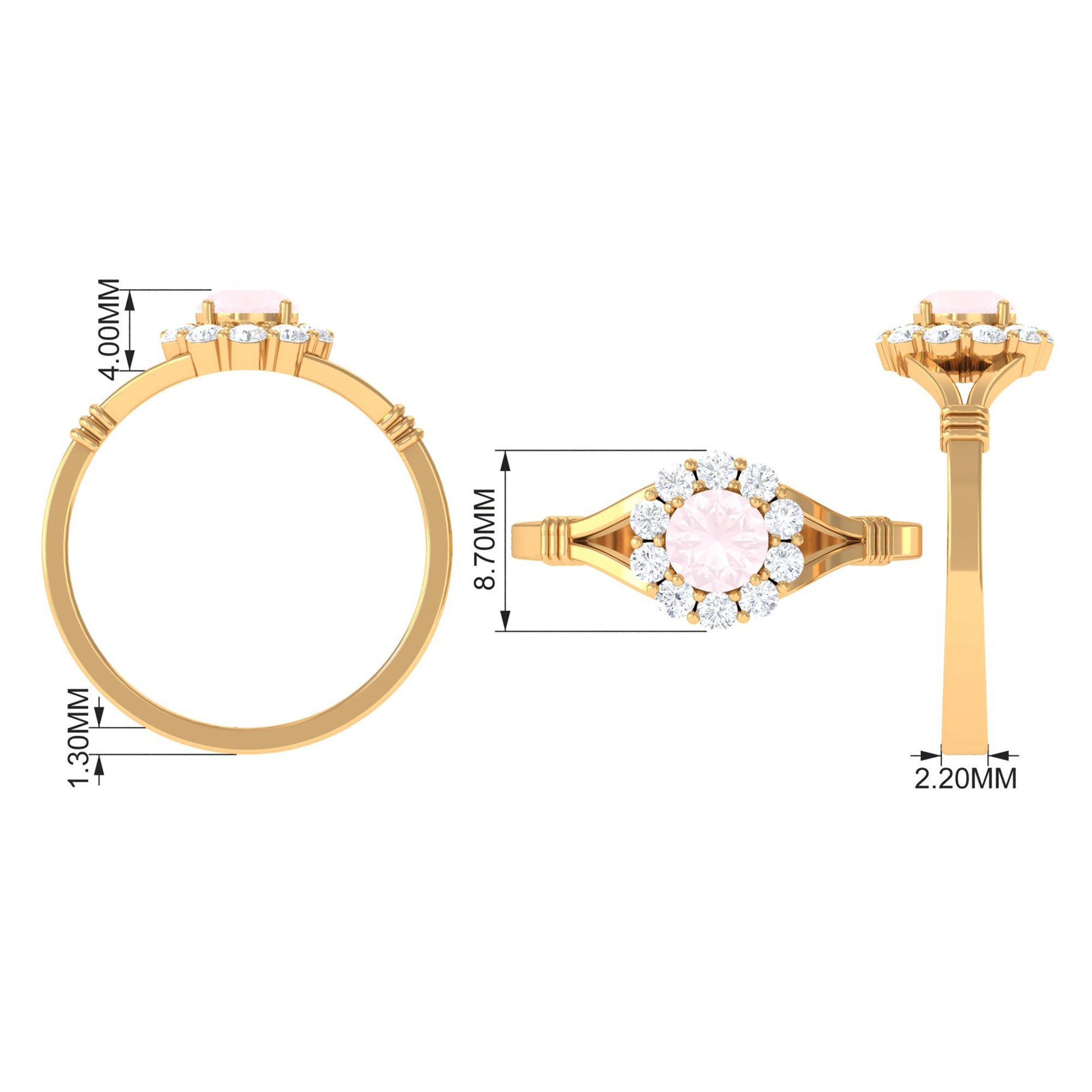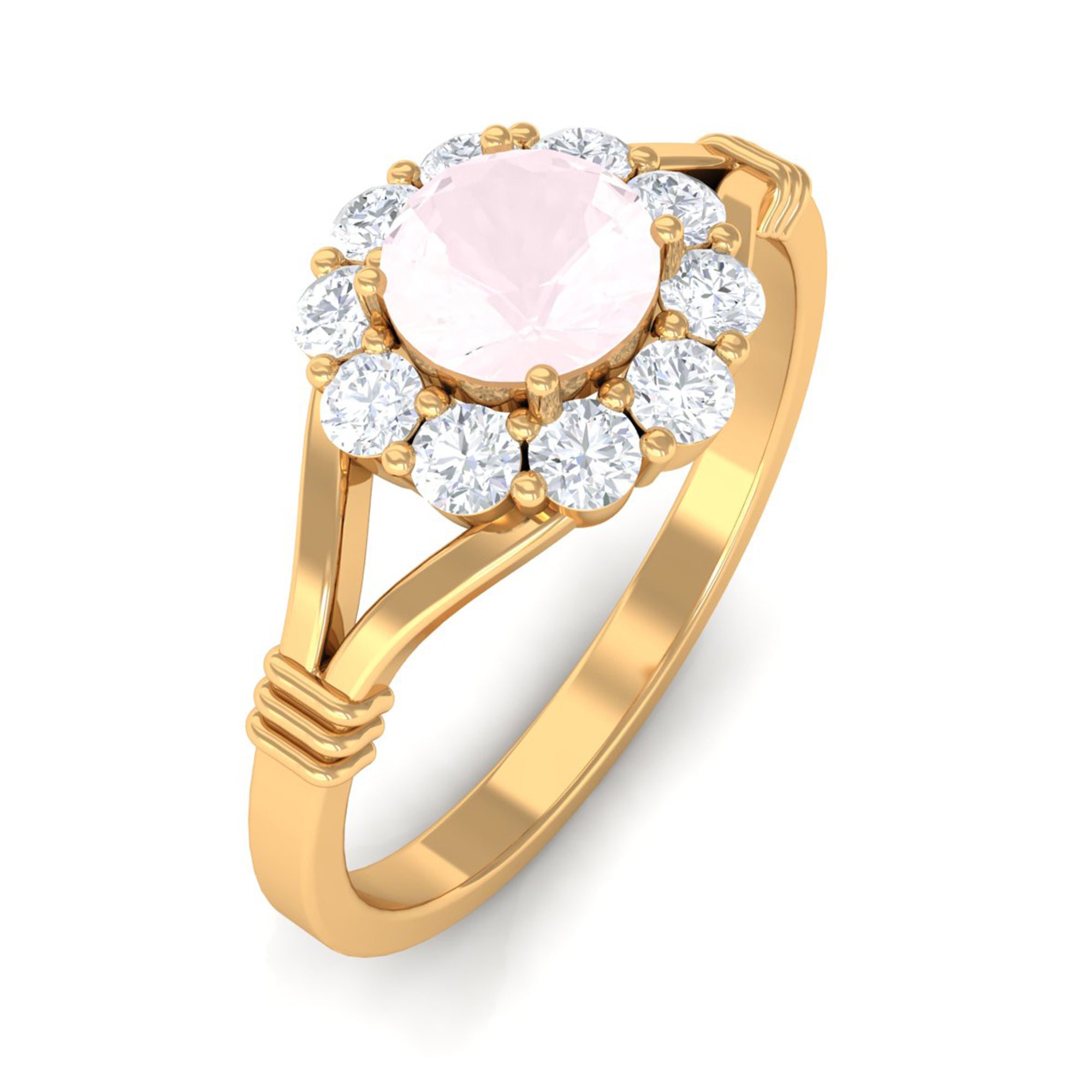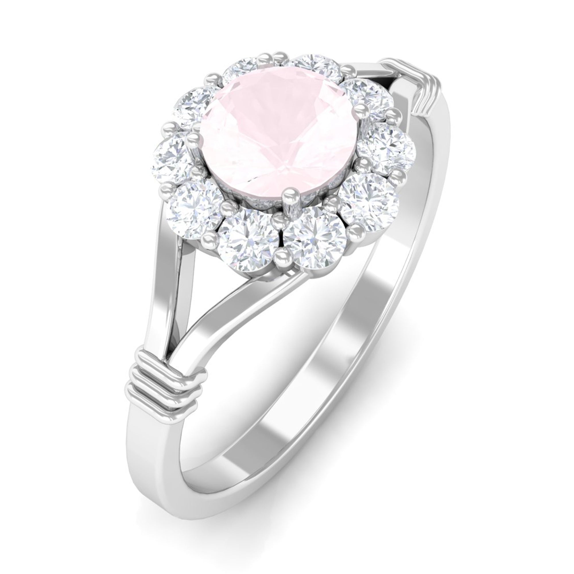 1 CT Rose Quartz Flower Engagement Ring with Diamond Halo in Split Shank