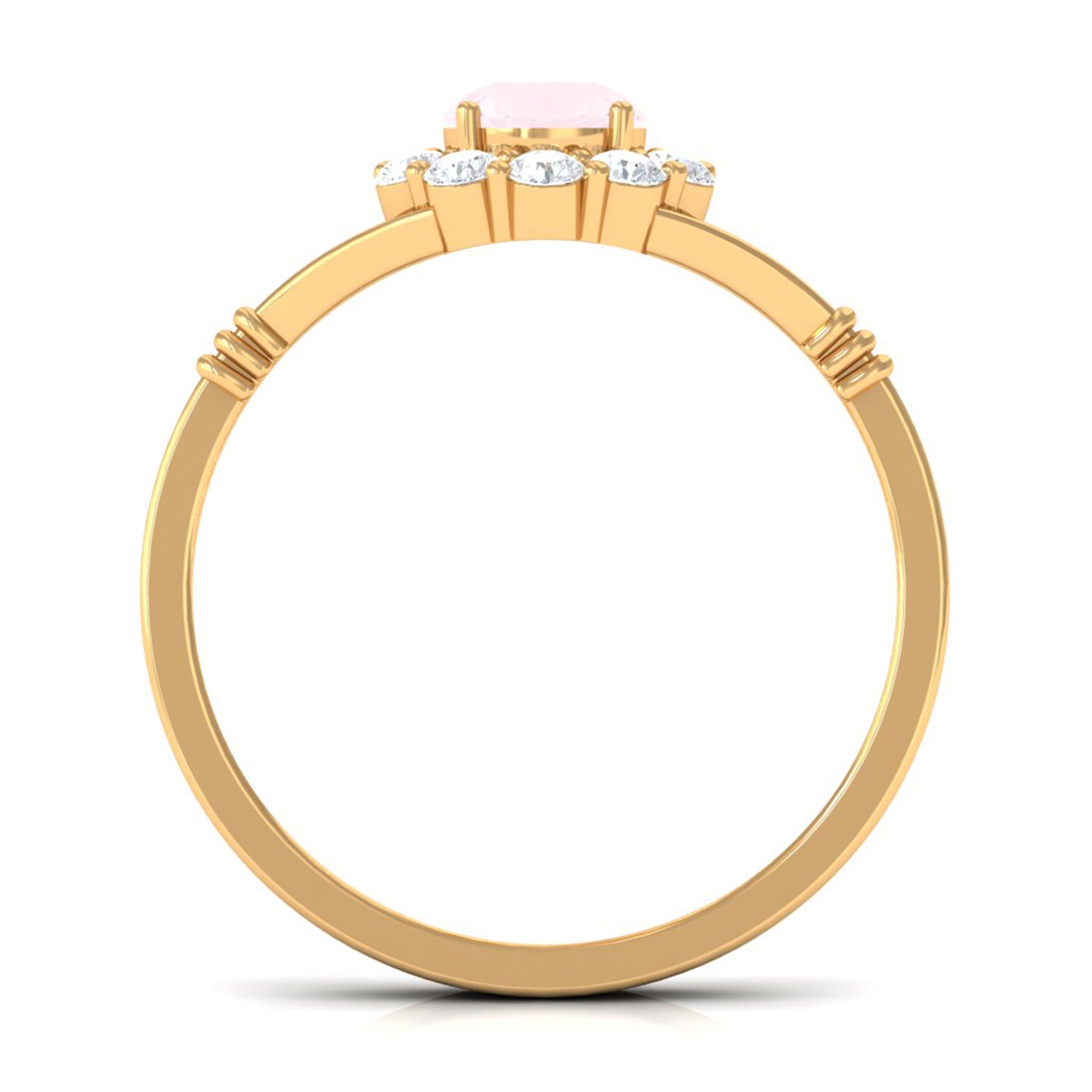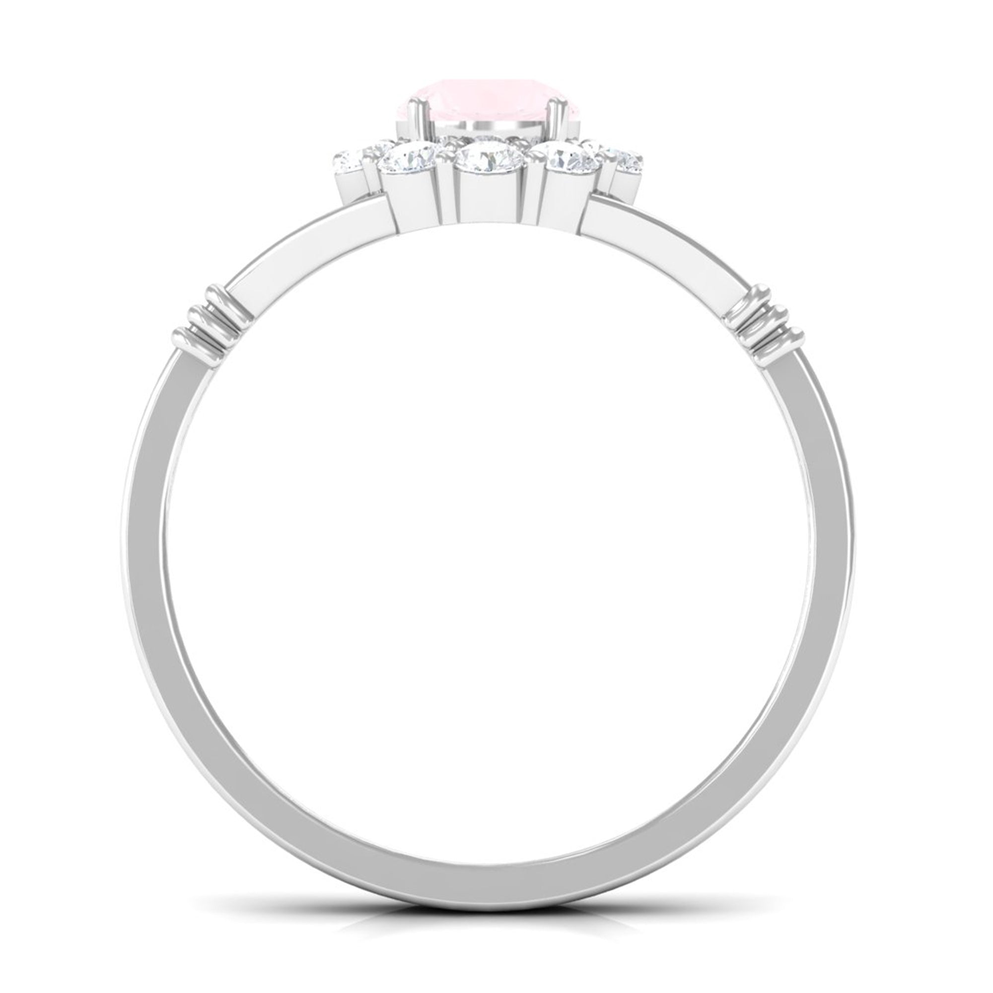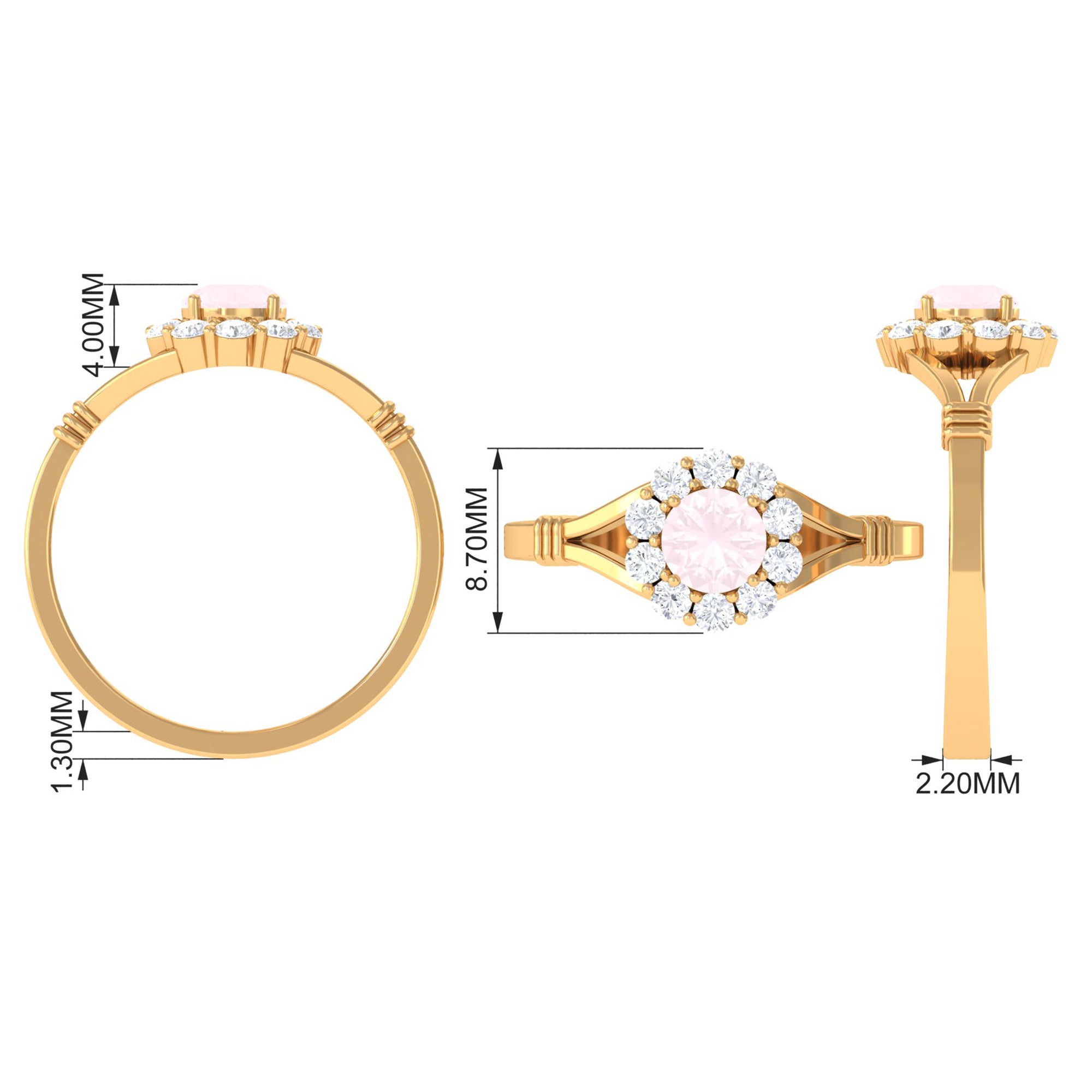 1 CT Rose Quartz Flower Engagement Ring with Diamond Halo in Split Shank