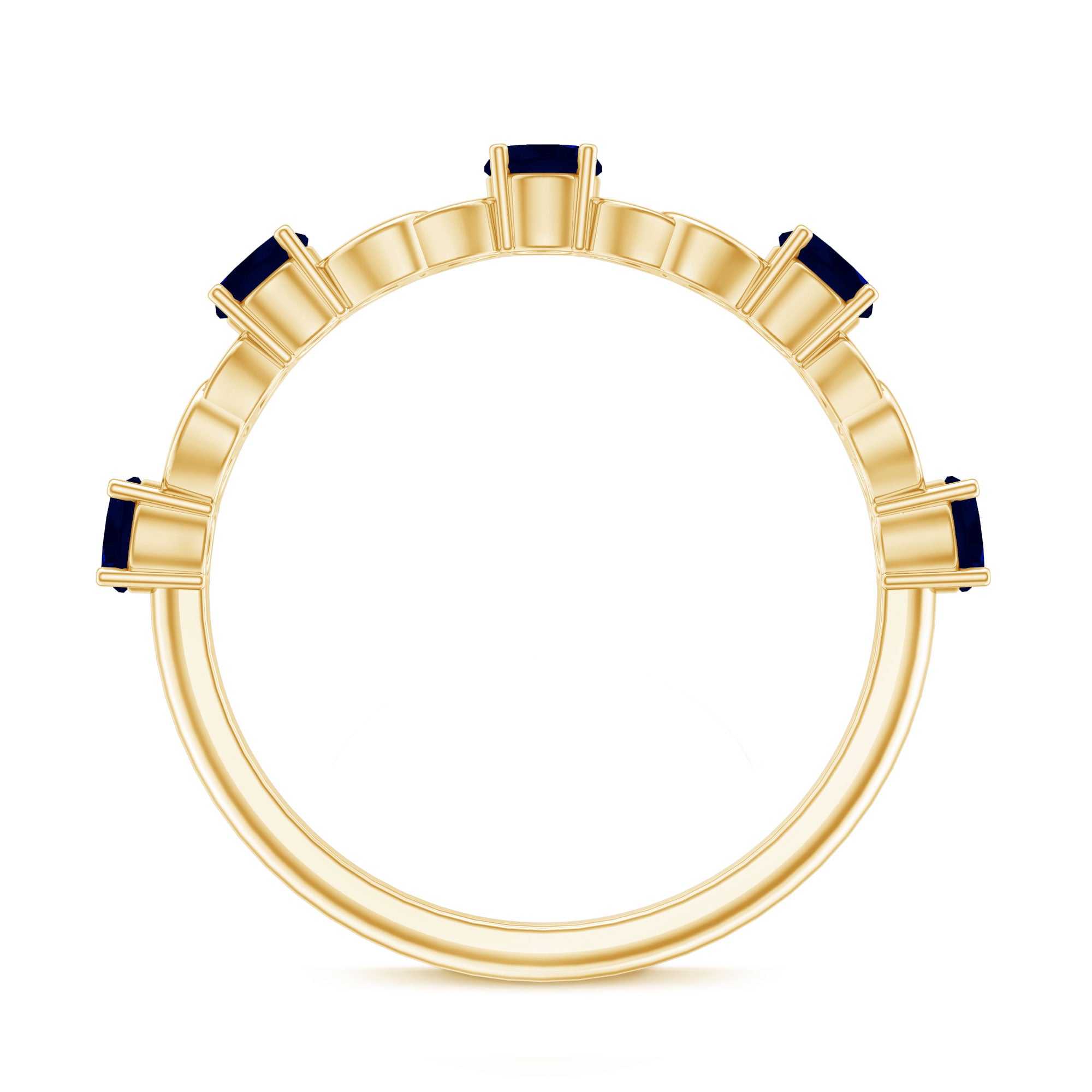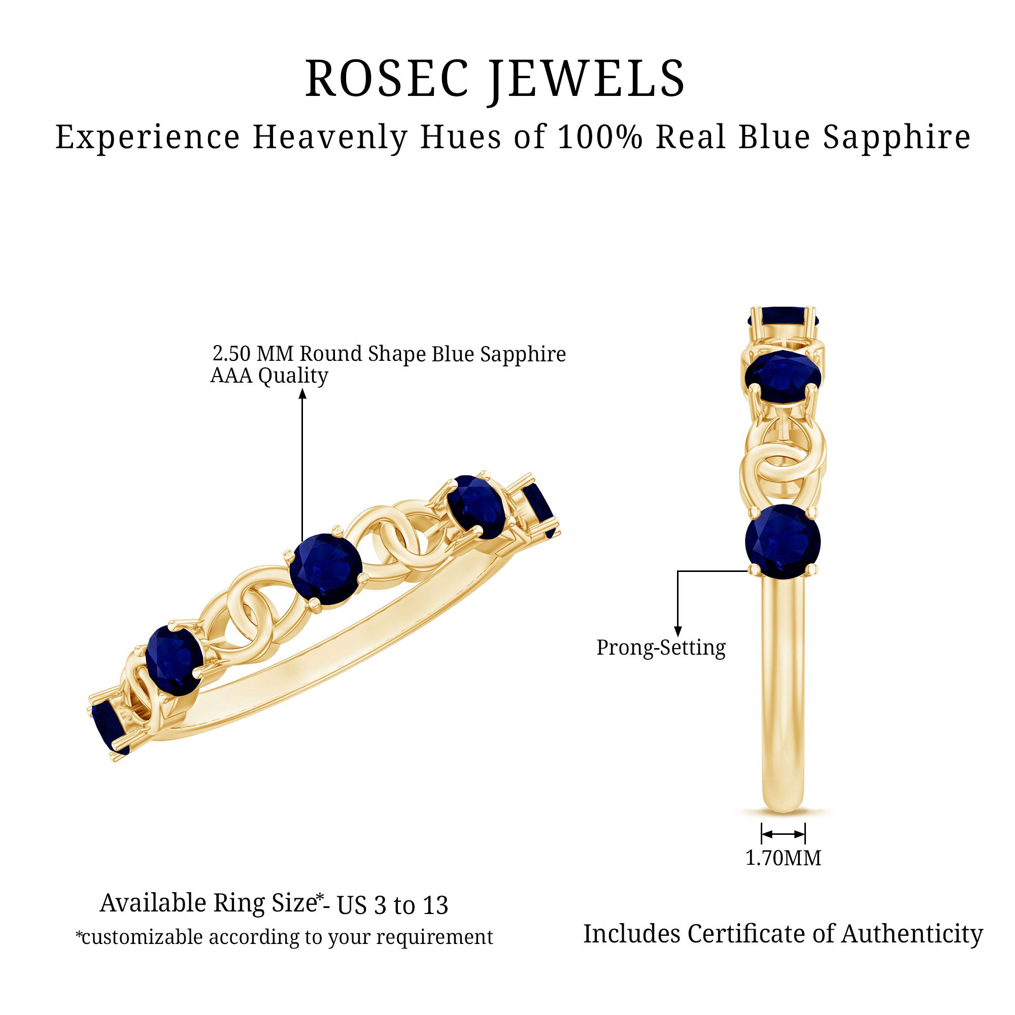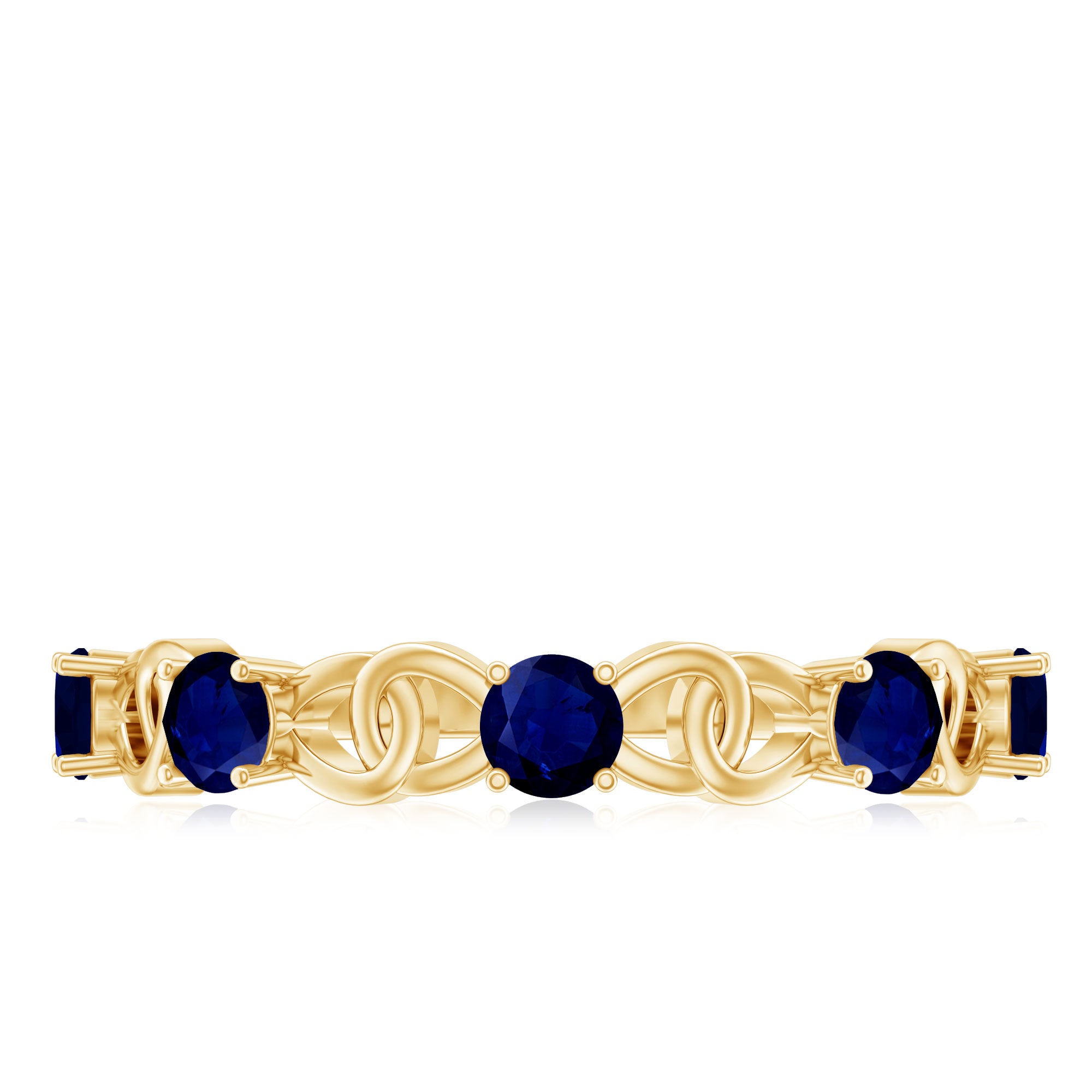 1 CT Round Blue Sapphire Gold Interlock Half Eternity Ring