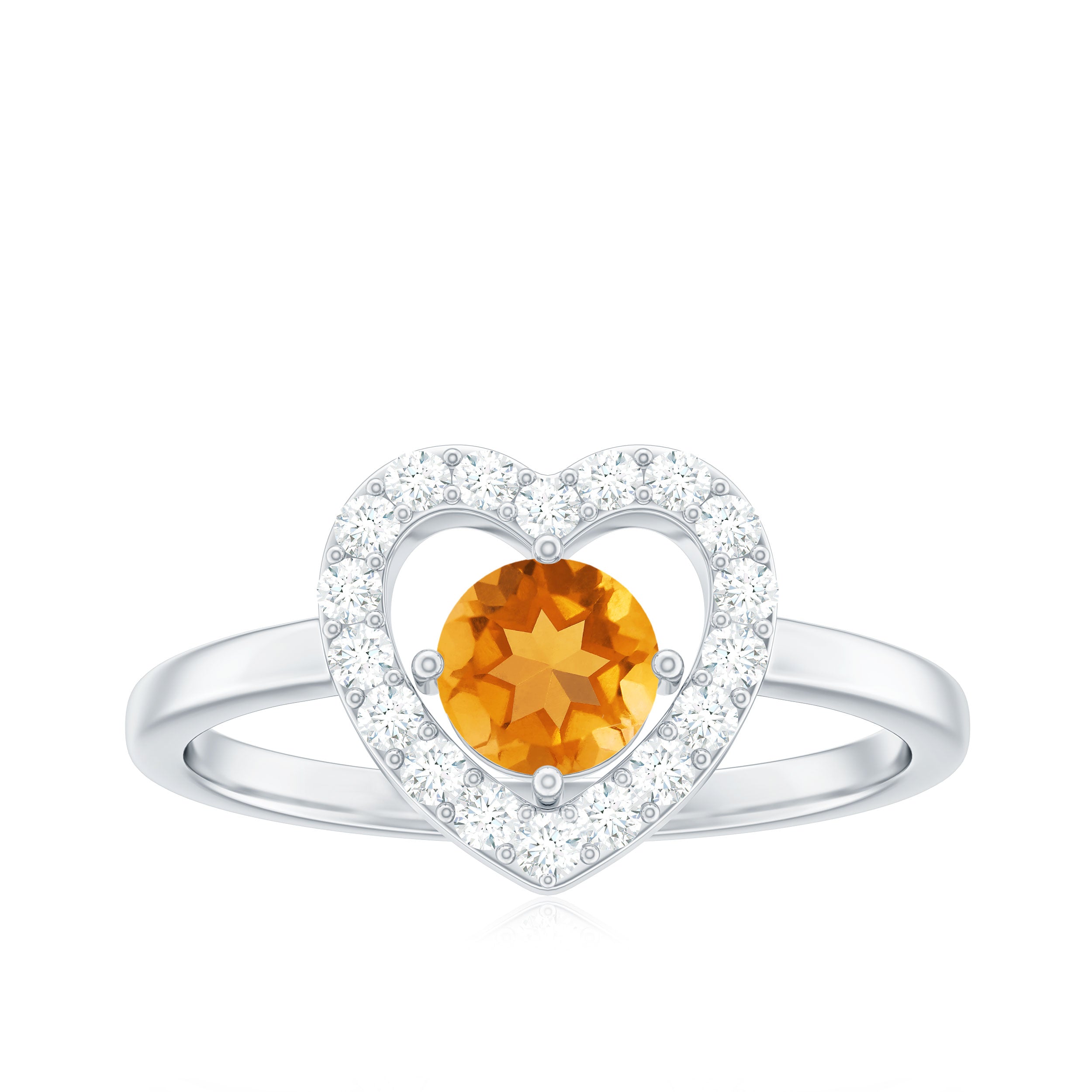1 CT Round Citrine Heart Engagement Ring with Diamond Halo