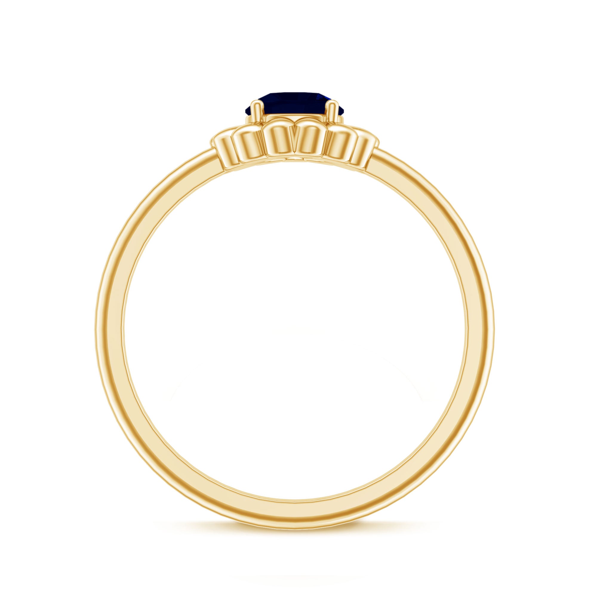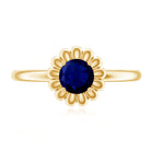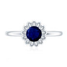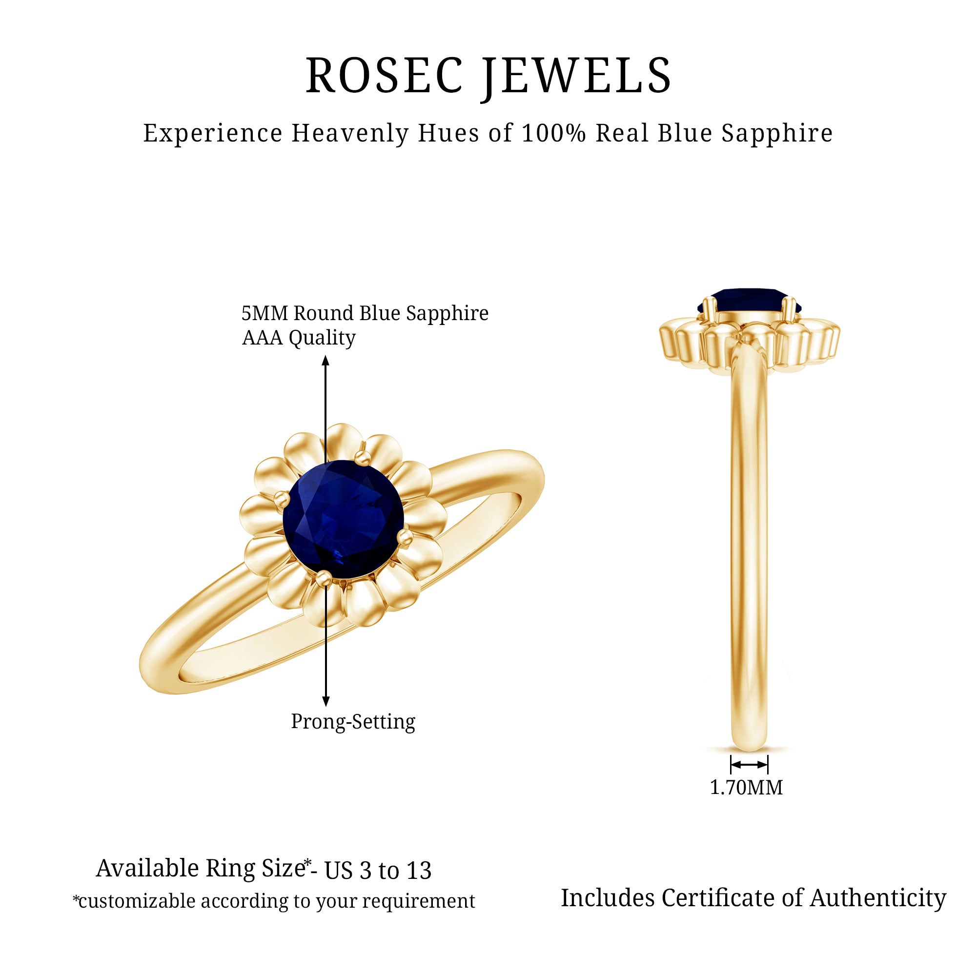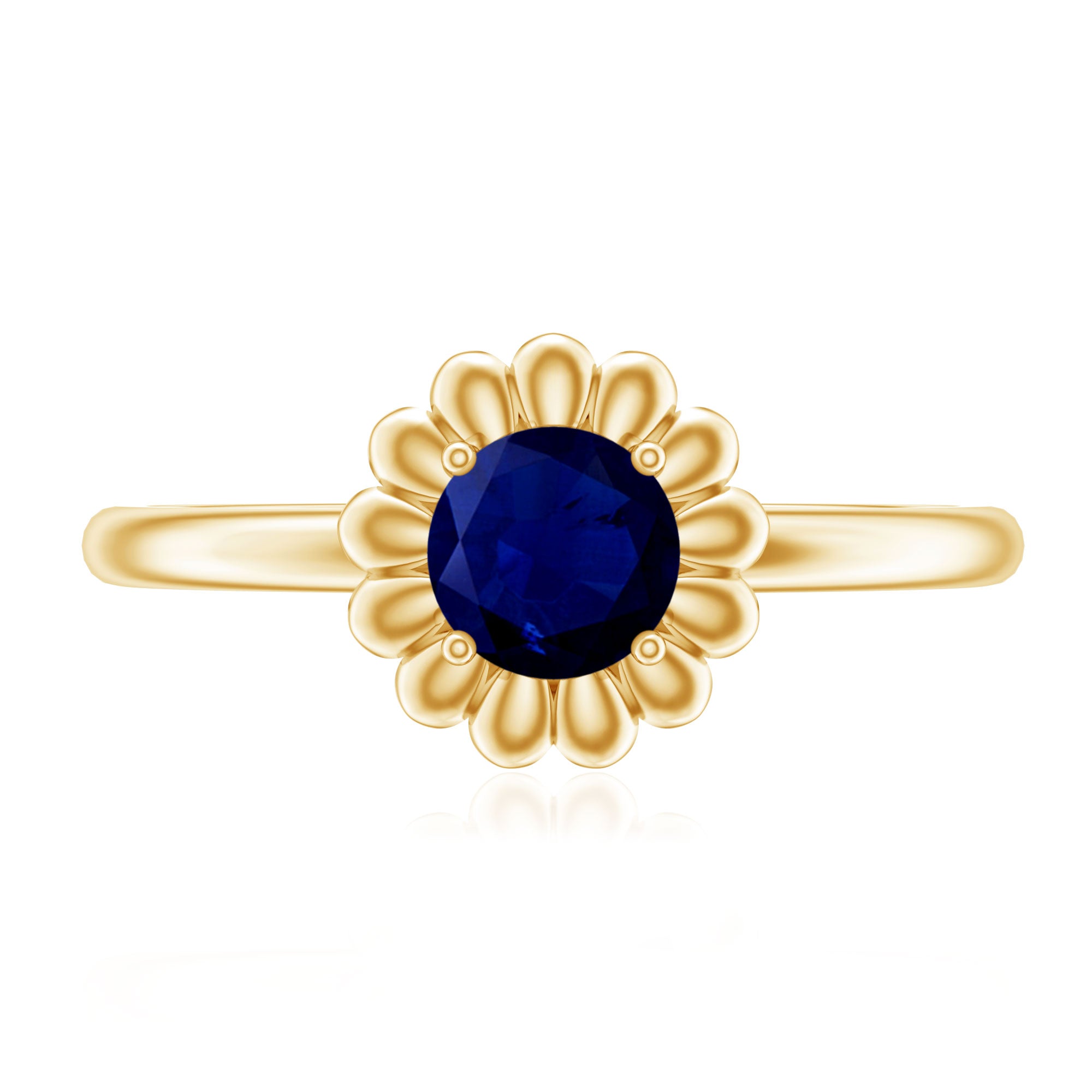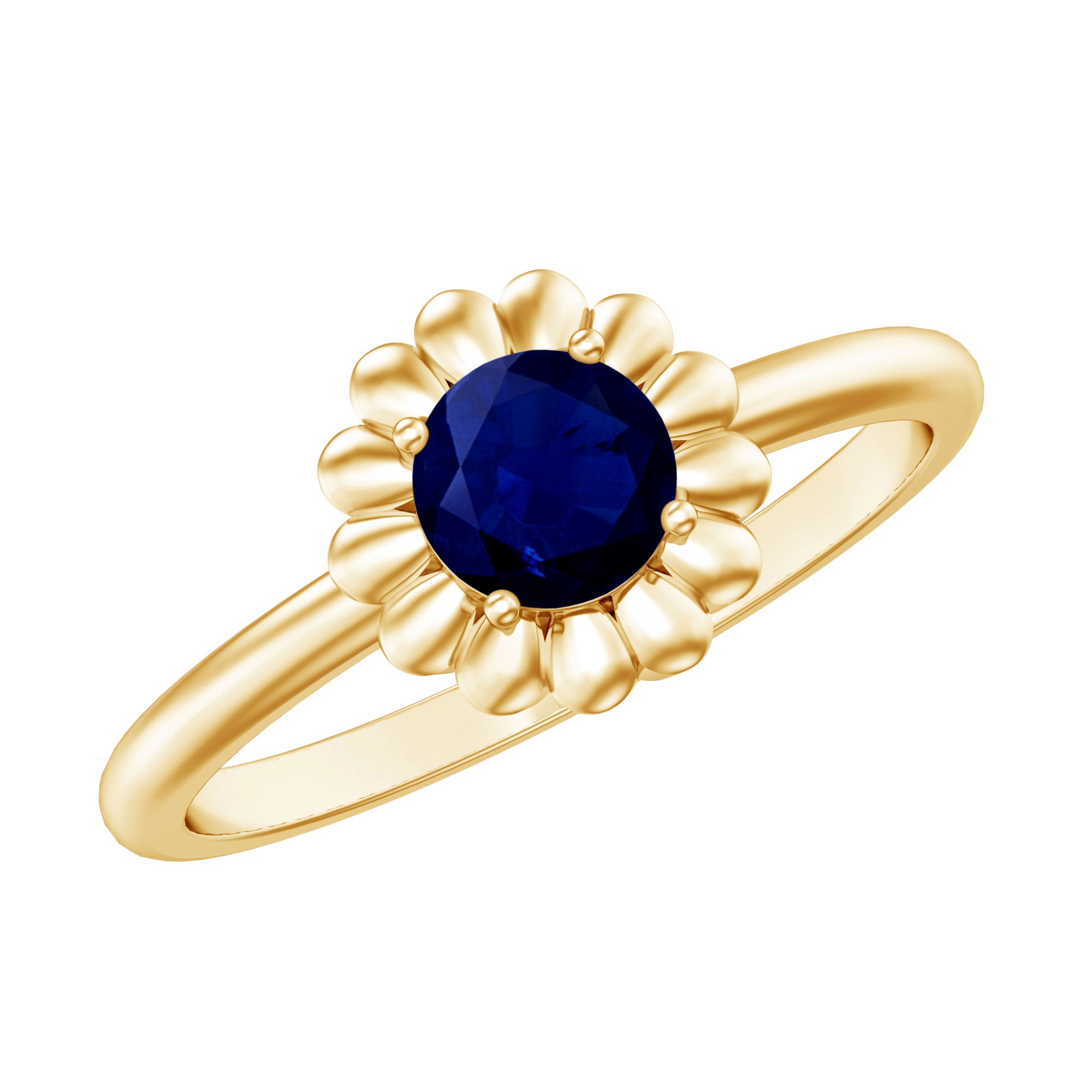 1 CT Round Cut Solitaire Blue Sapphire Gold Flower Ring