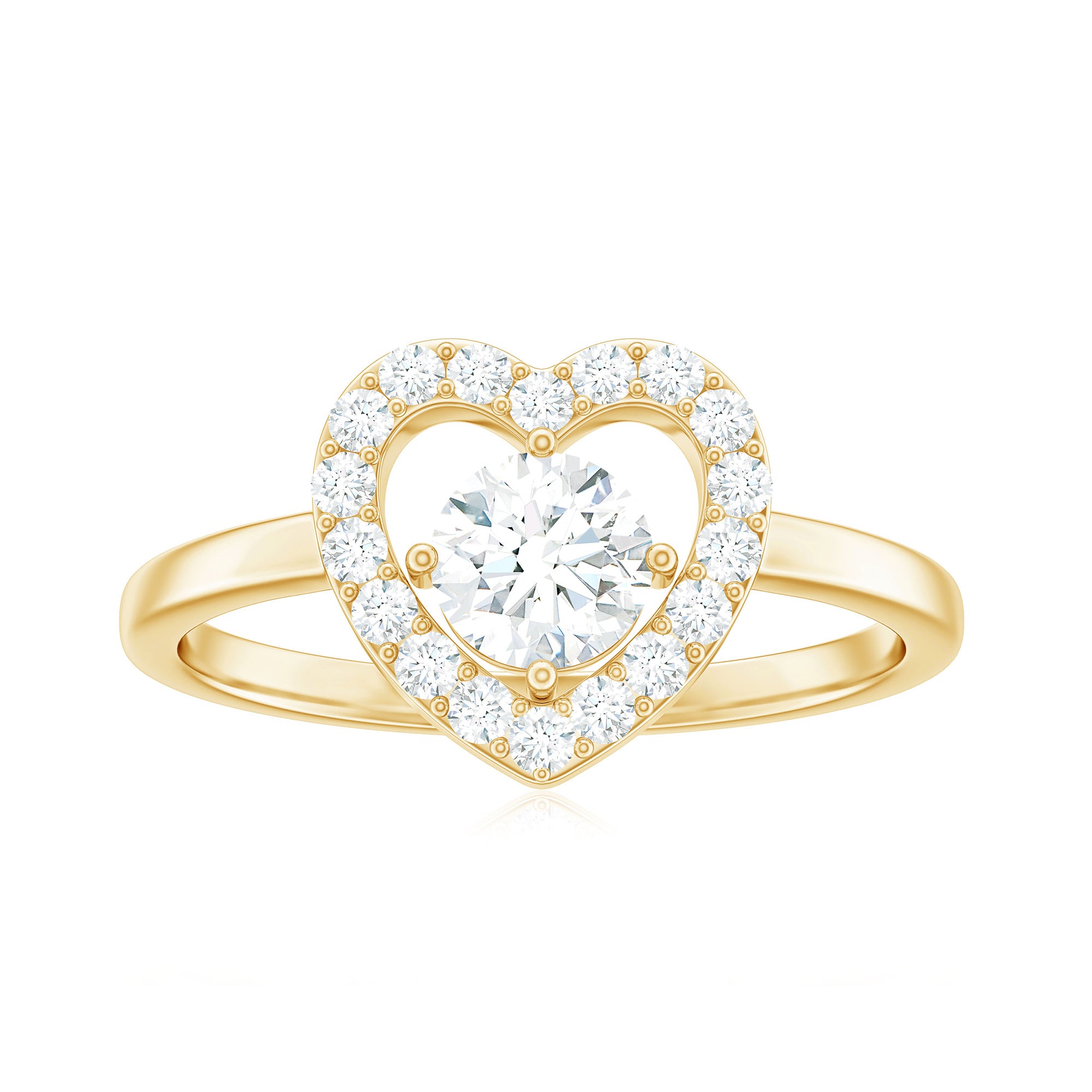 1 CT Round Cut Zircon Heart Engagement Ring with Halo