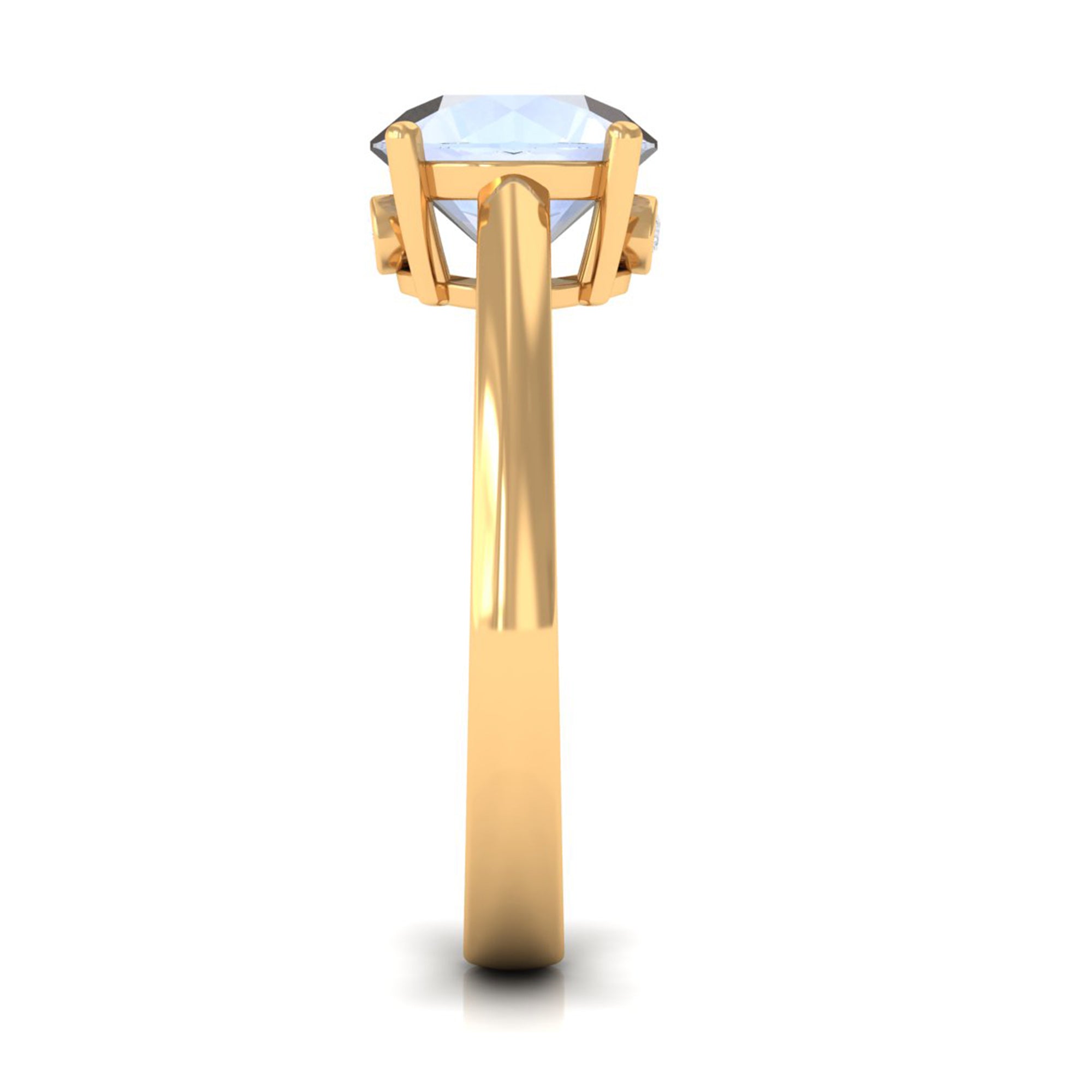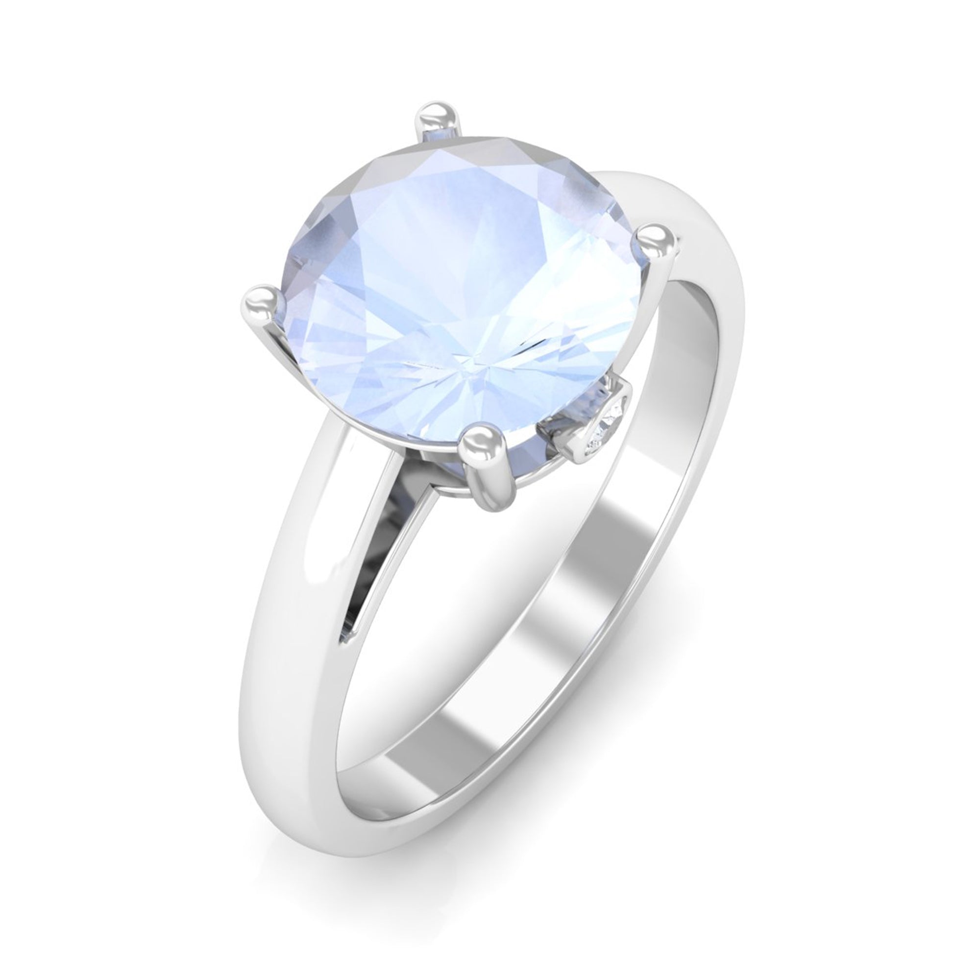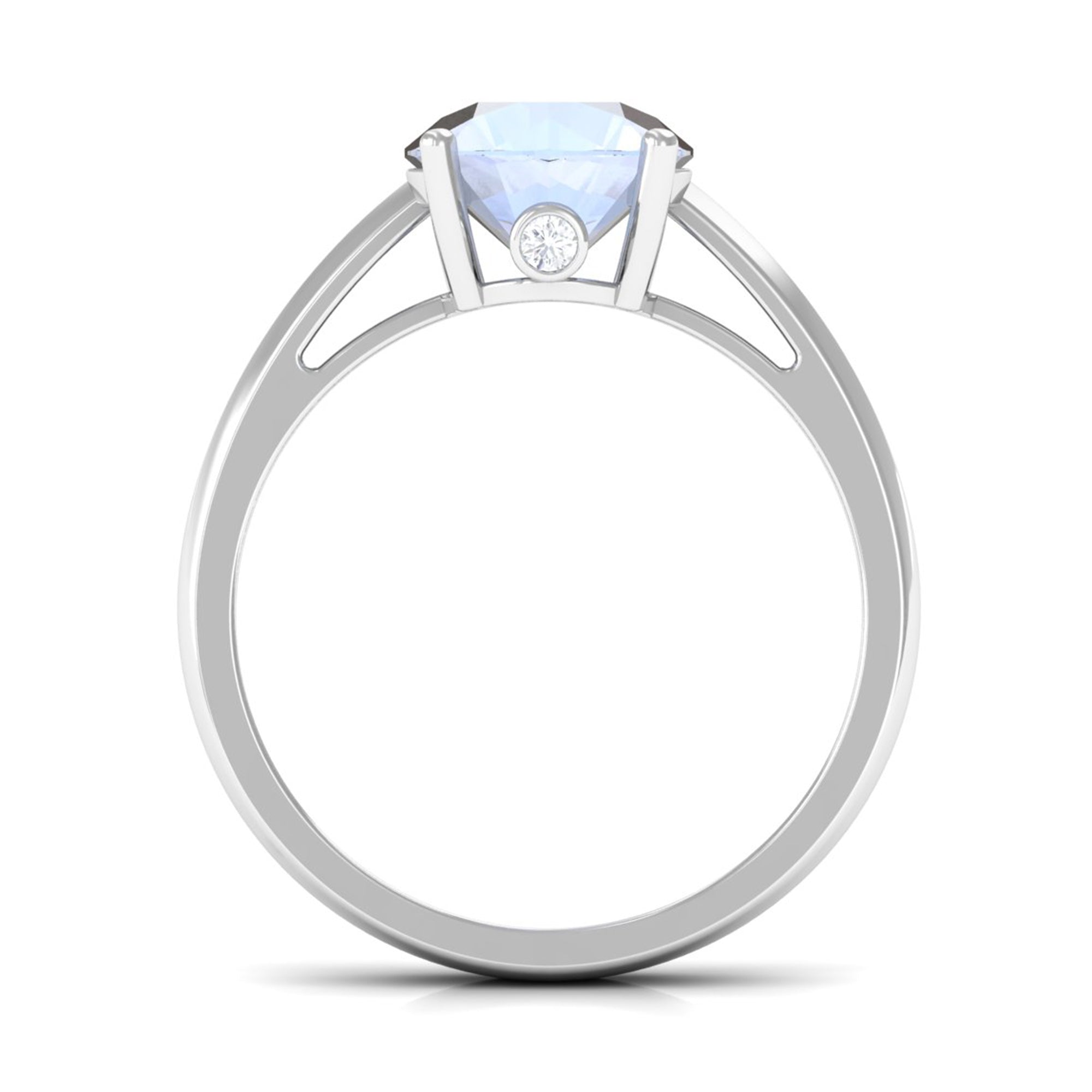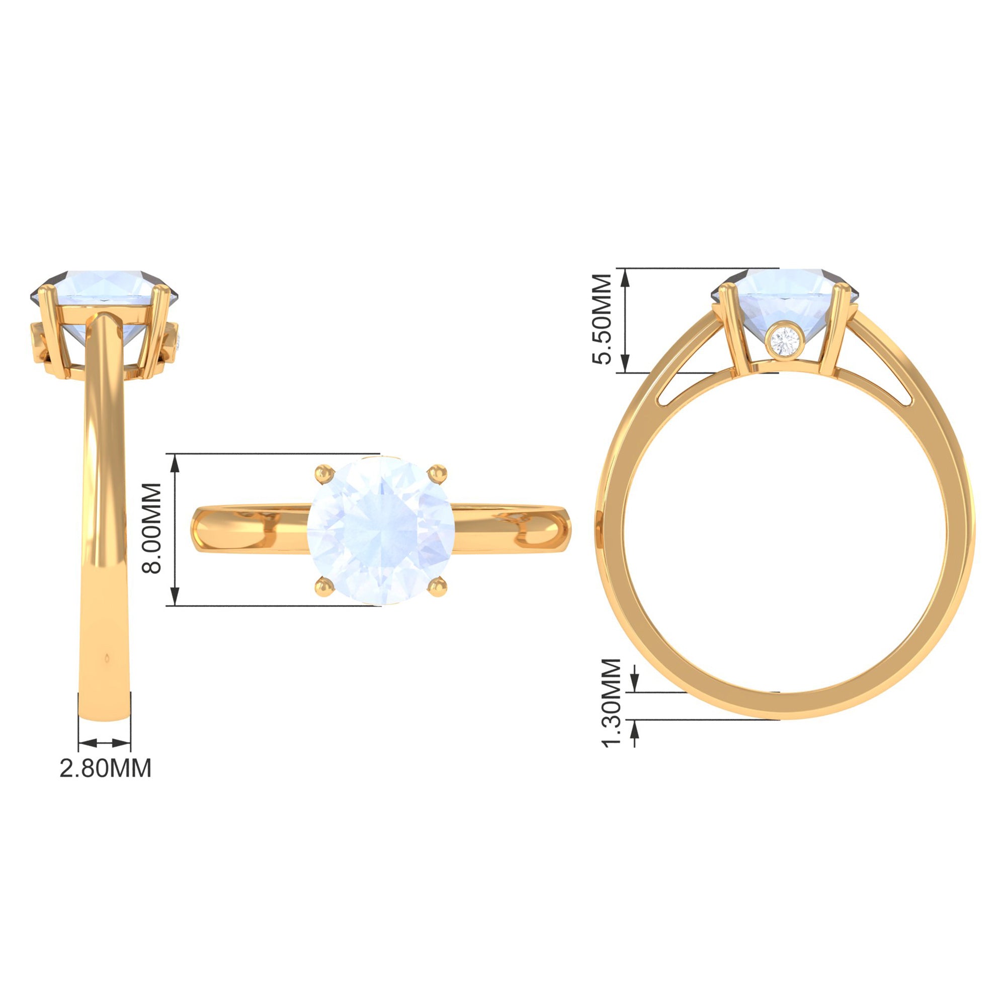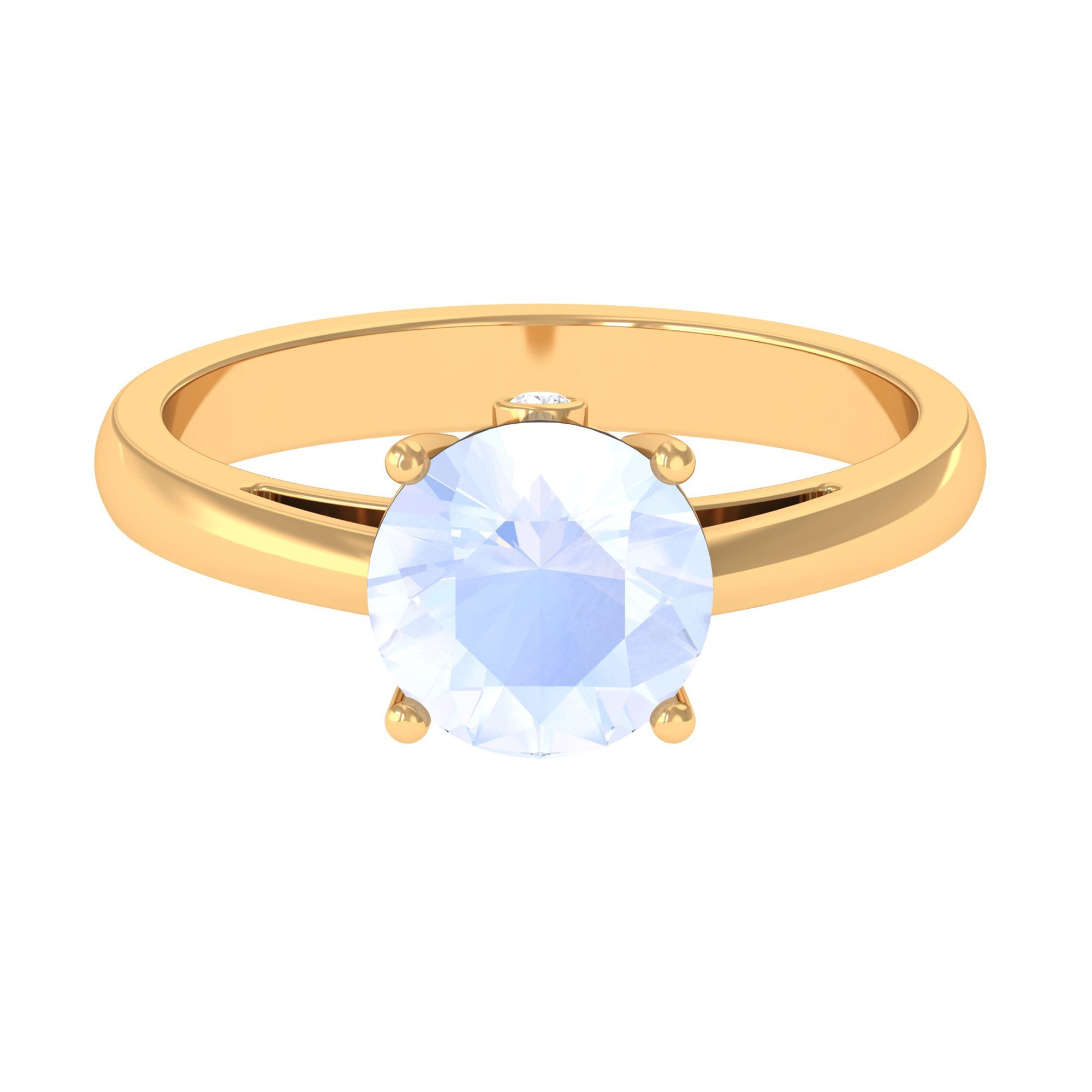 Elevate your style with a touch of shimmer by adorning this elegant Moonstone Solitaire Ring. The sleek band boasts a round-cut moonstone at the center, beautifully embellished with Diamond on the hidden shank. This gold ring is perfect for those looking to achieve a chic and classic look, adding a sophisticated touch to any outfit. Make a statement with this exquisite piece of jewelry.
