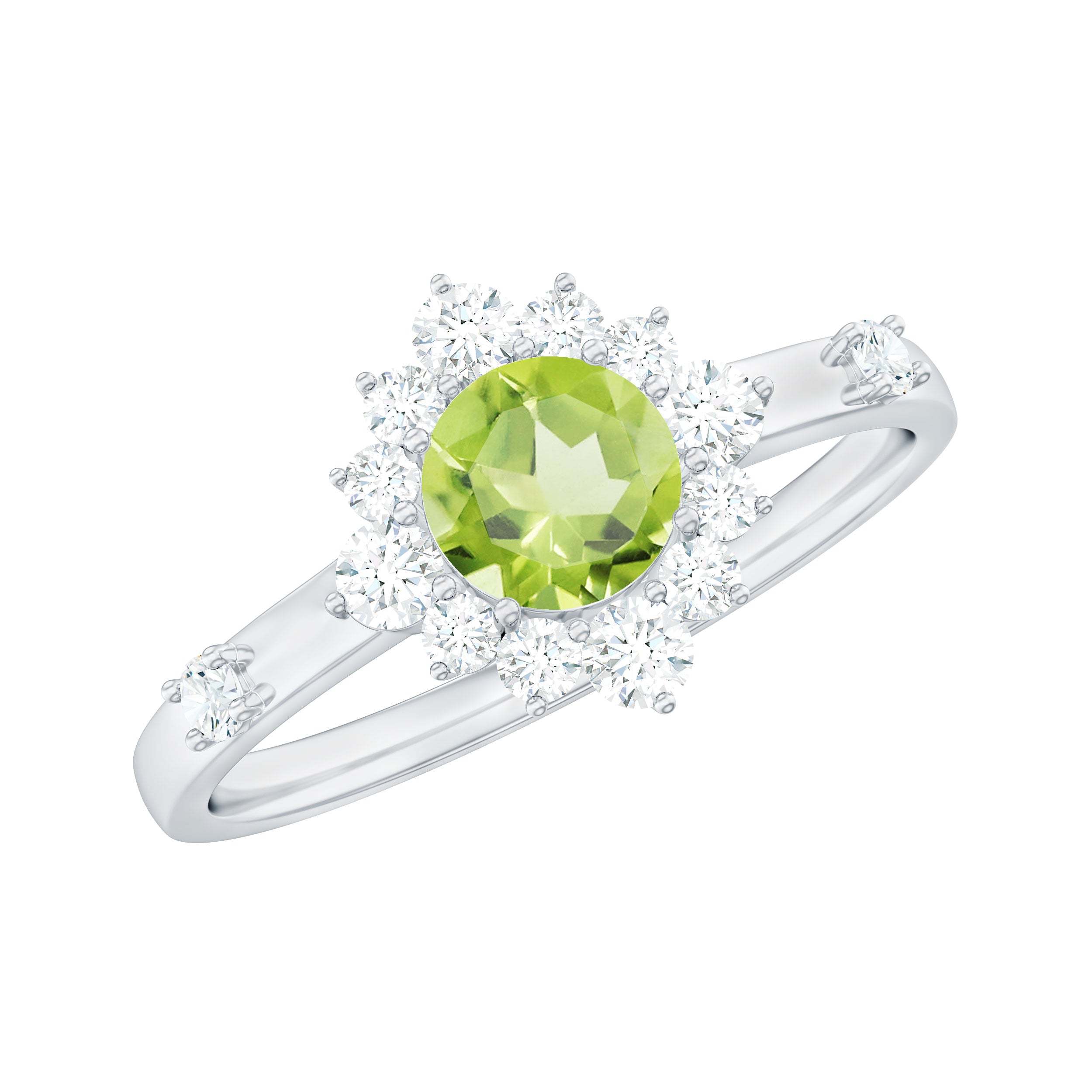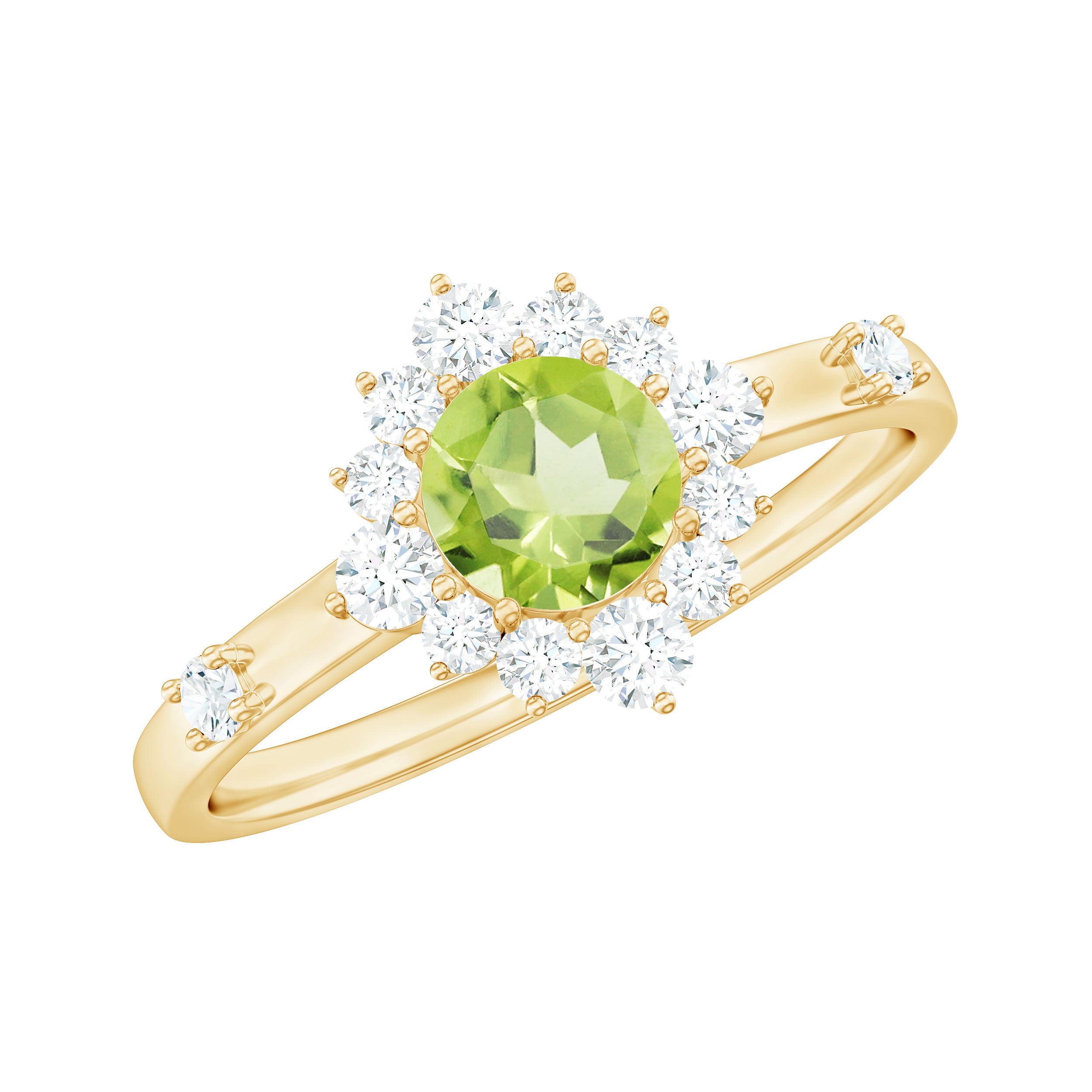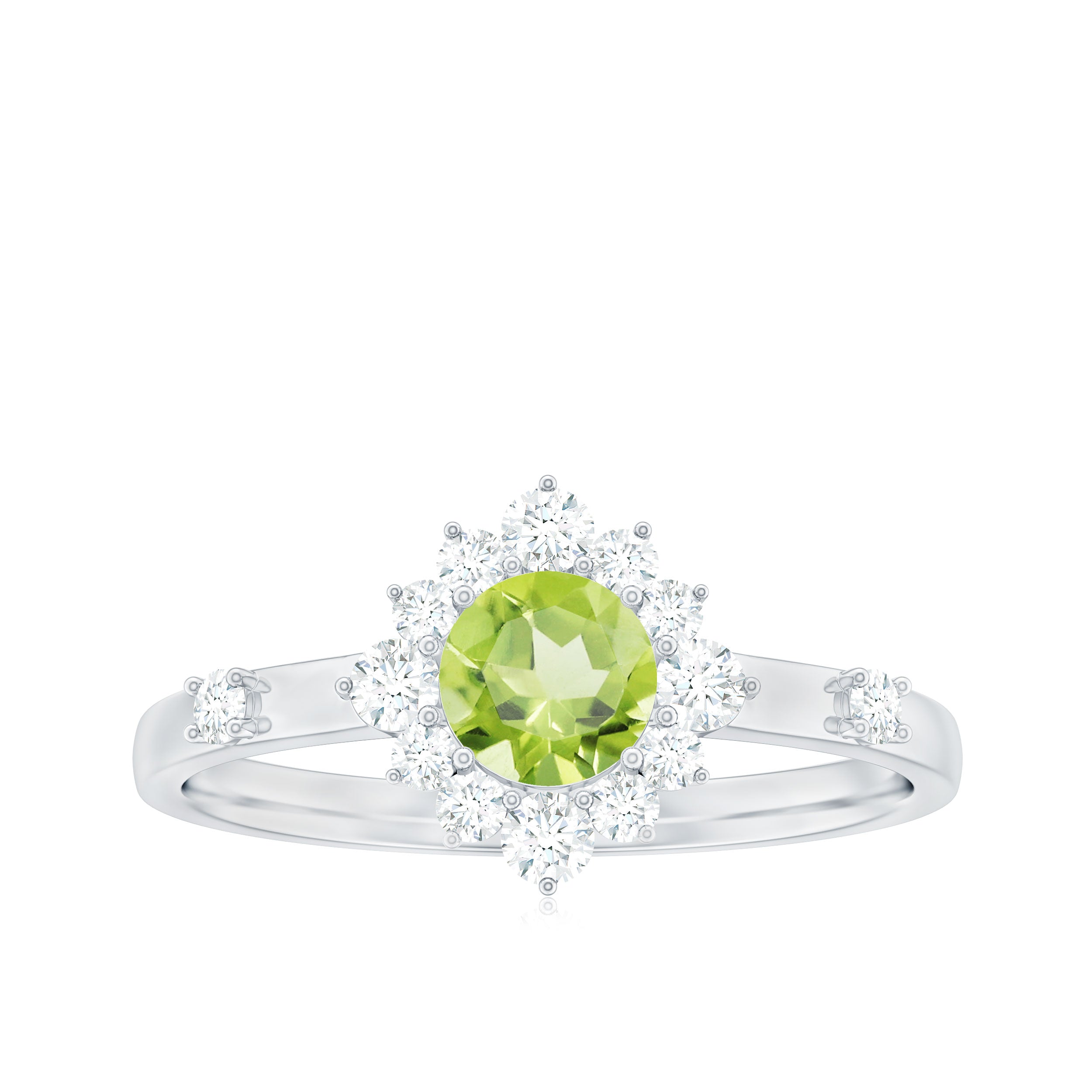 1 CT Round Peridot and Diamond Halo Engagement Ring