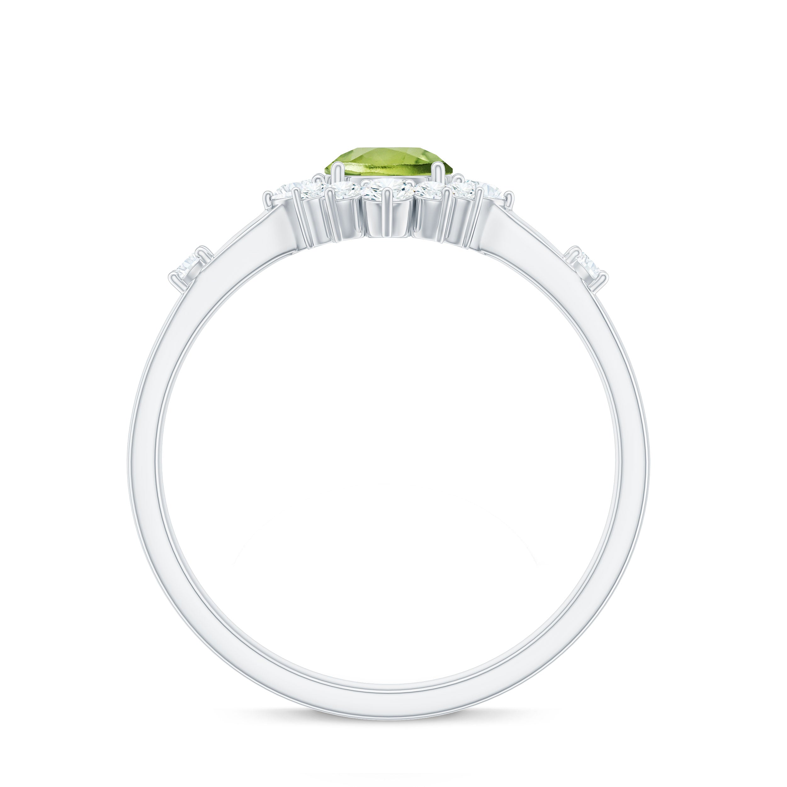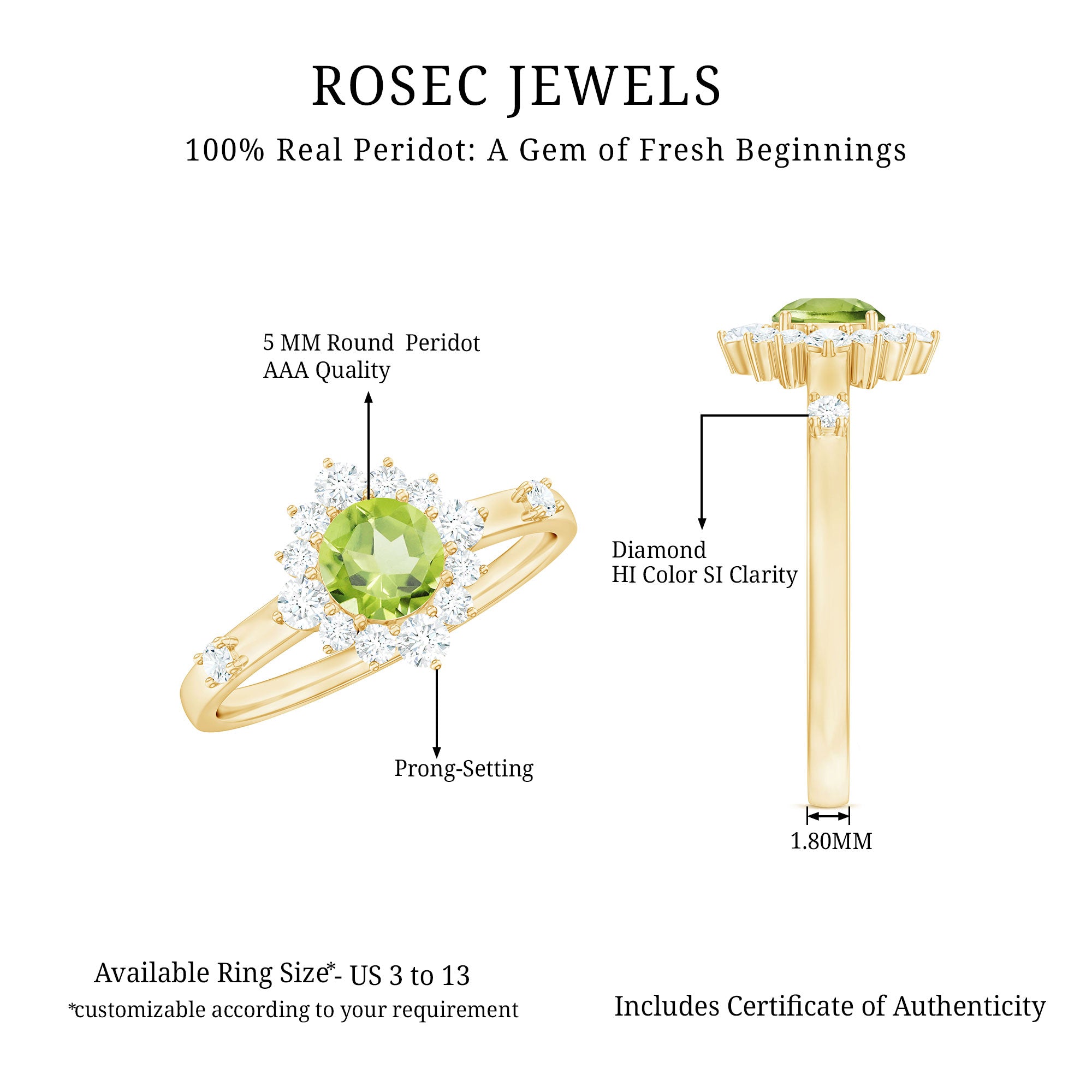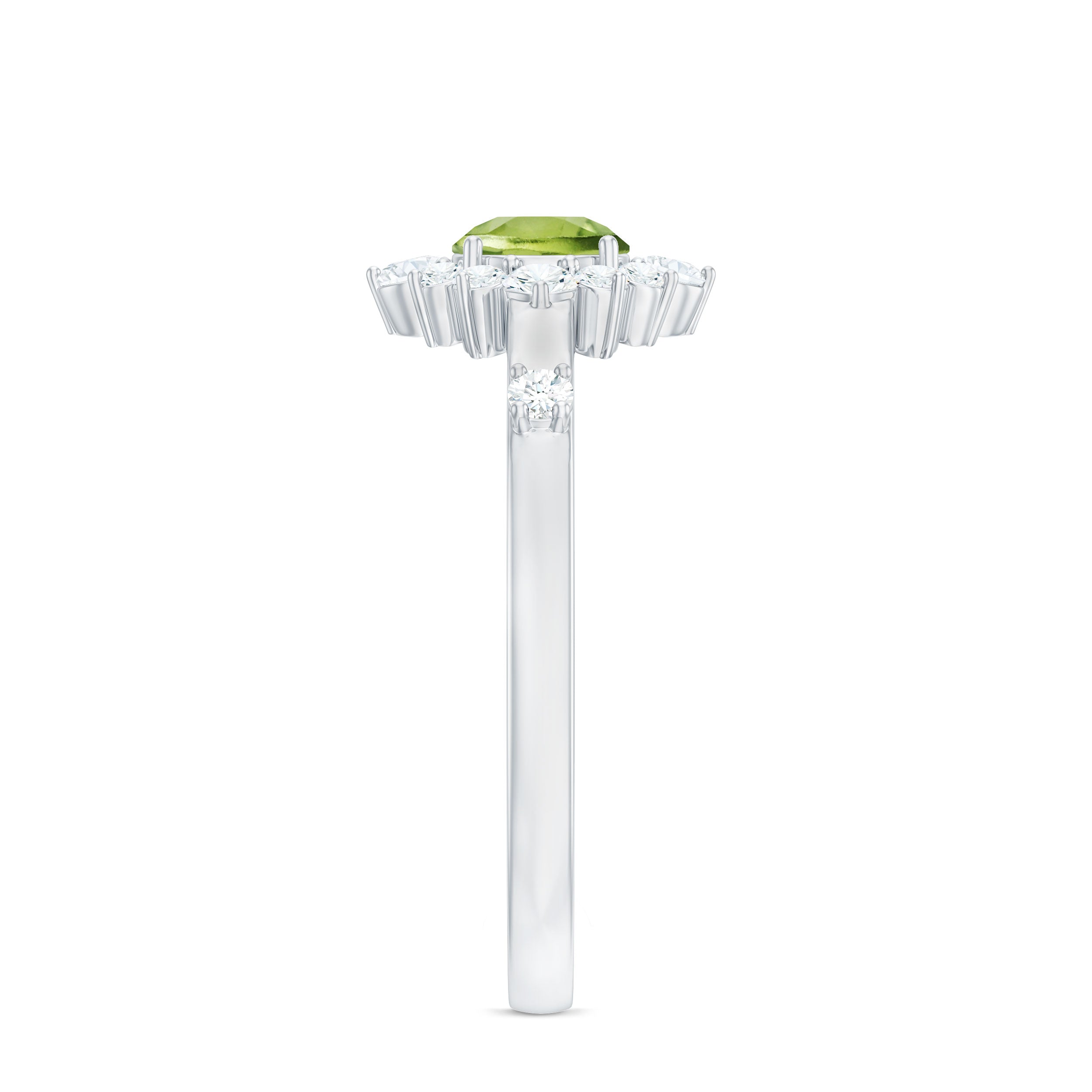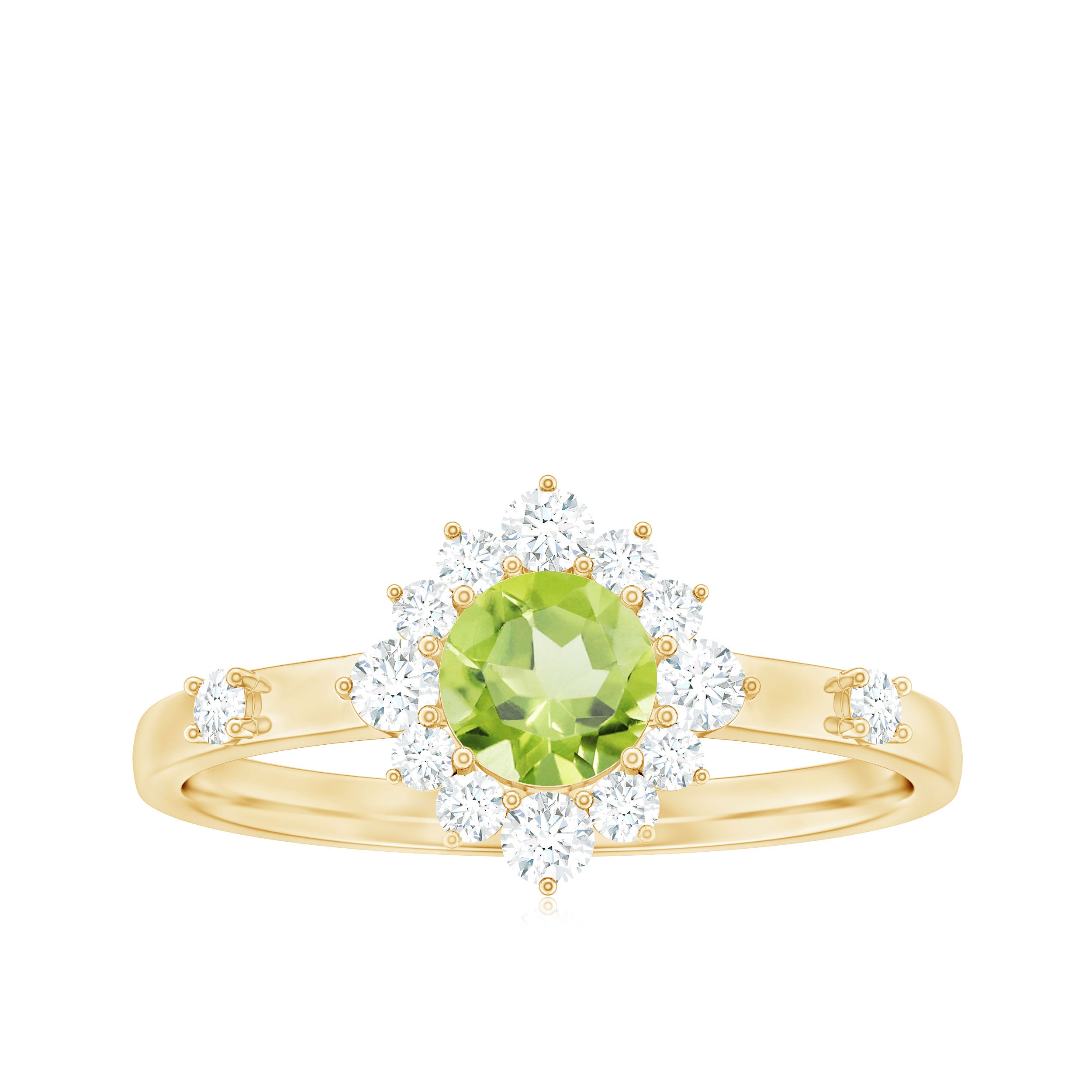 1 CT Round Peridot and Diamond Halo Engagement Ring