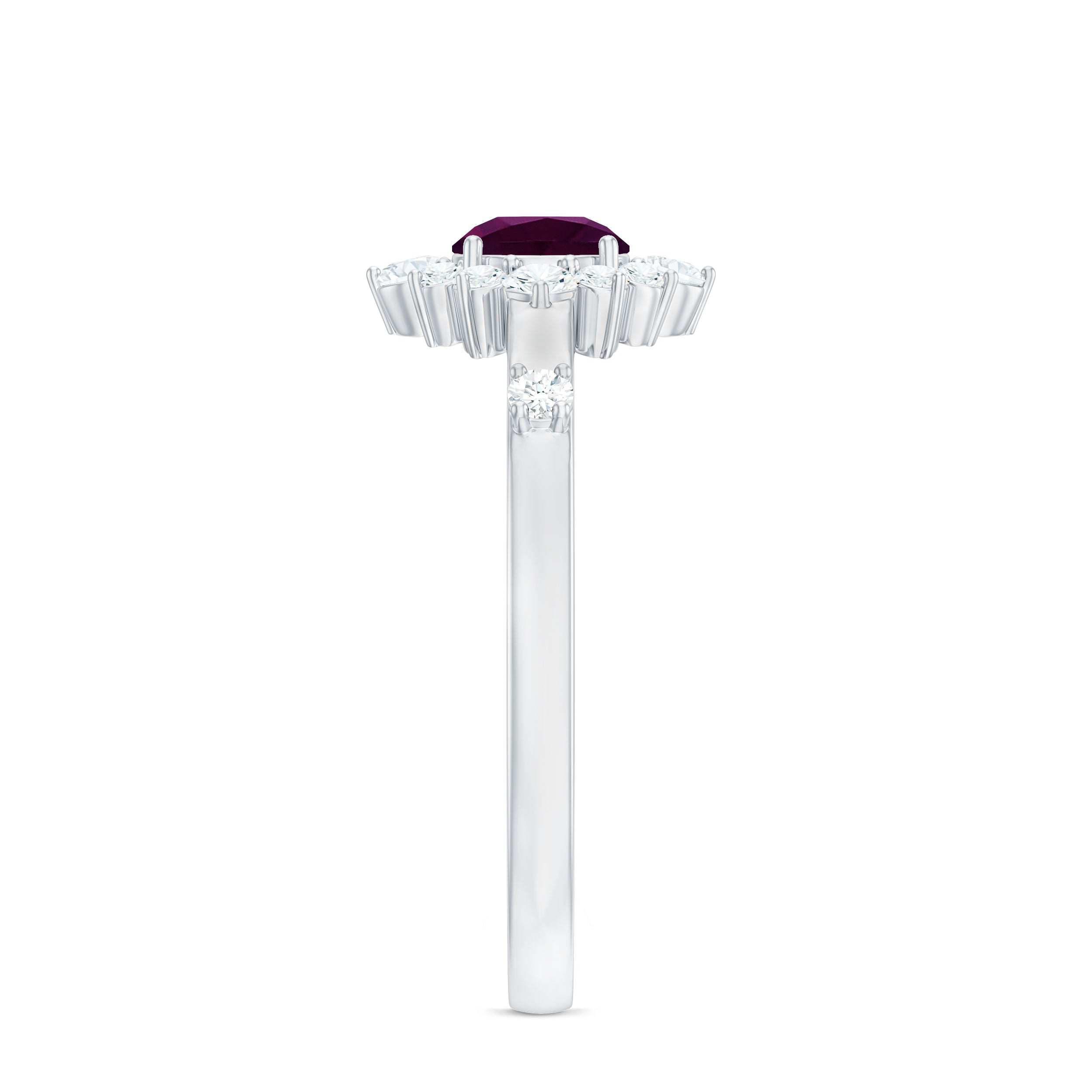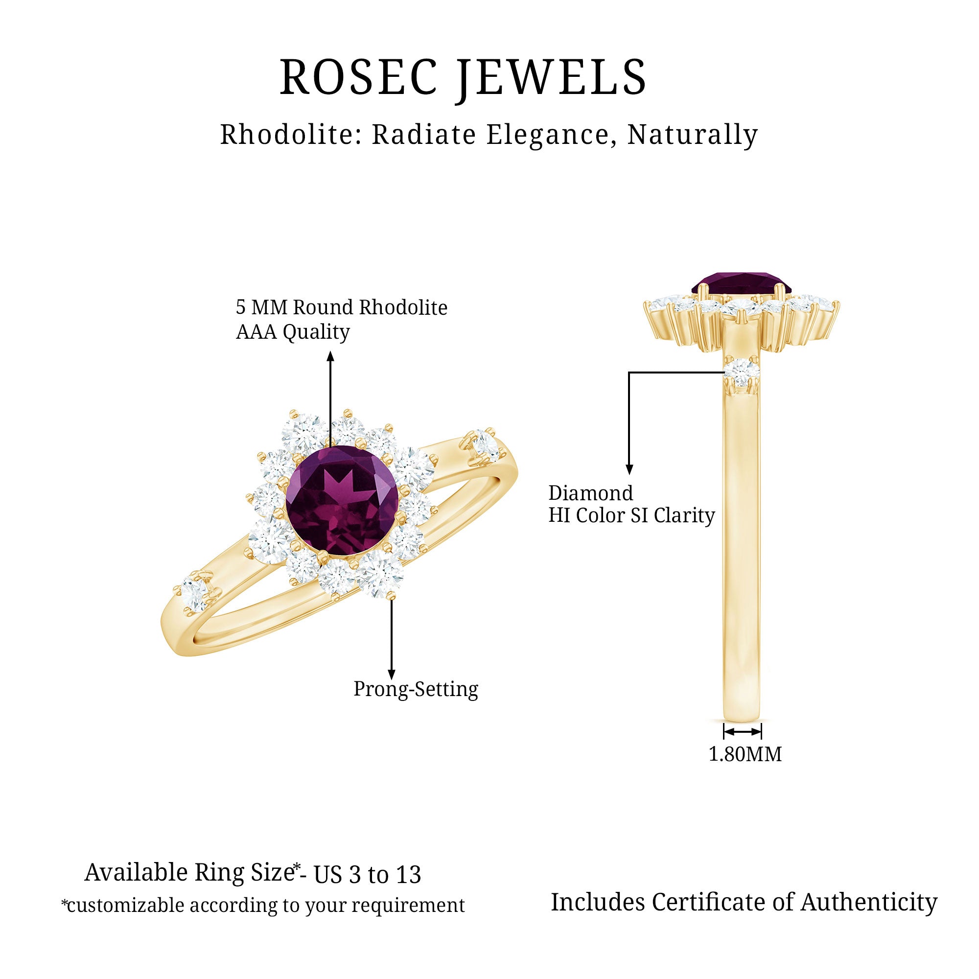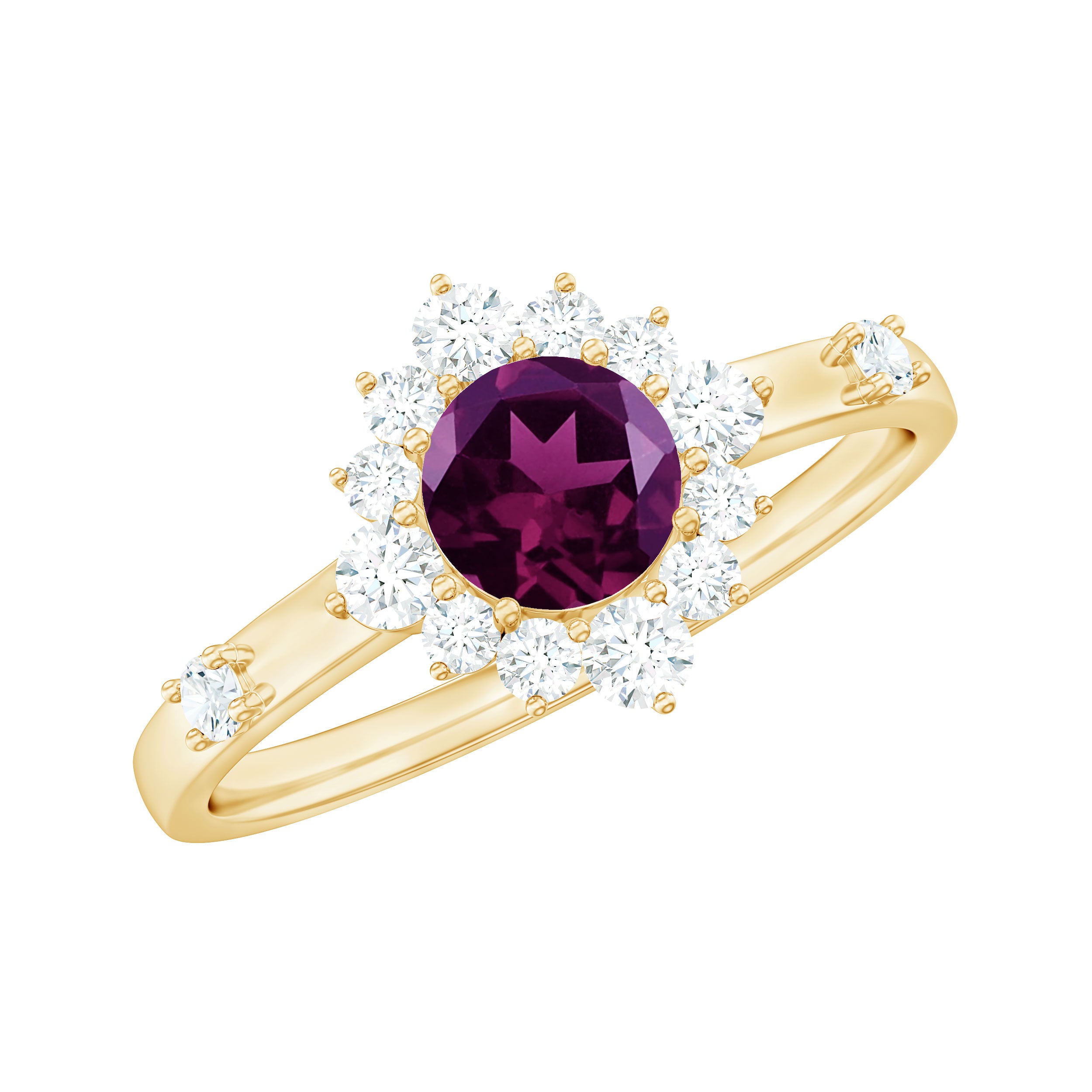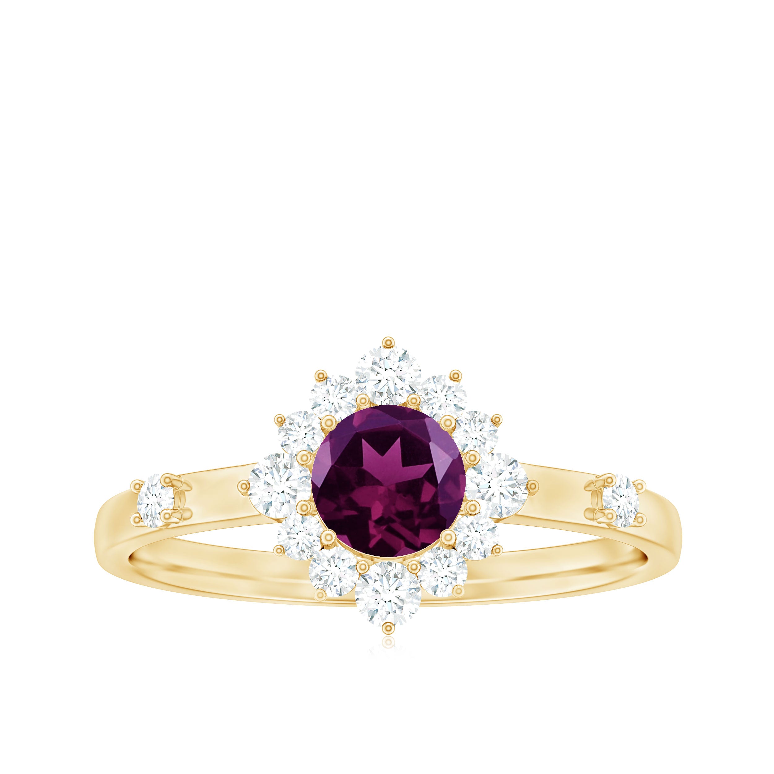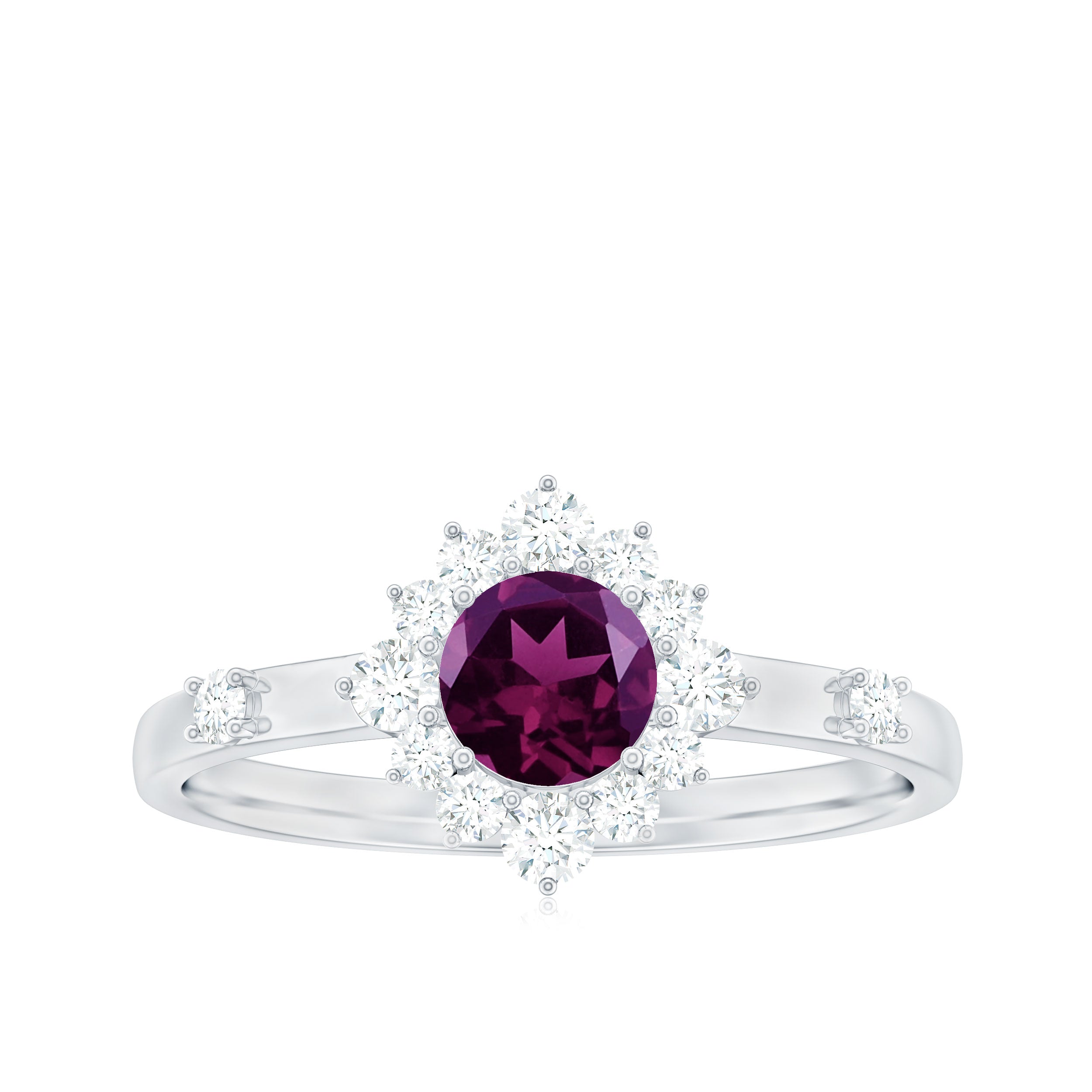 1 CT Round Rhodolite and Diamond Halo Engagement Ring