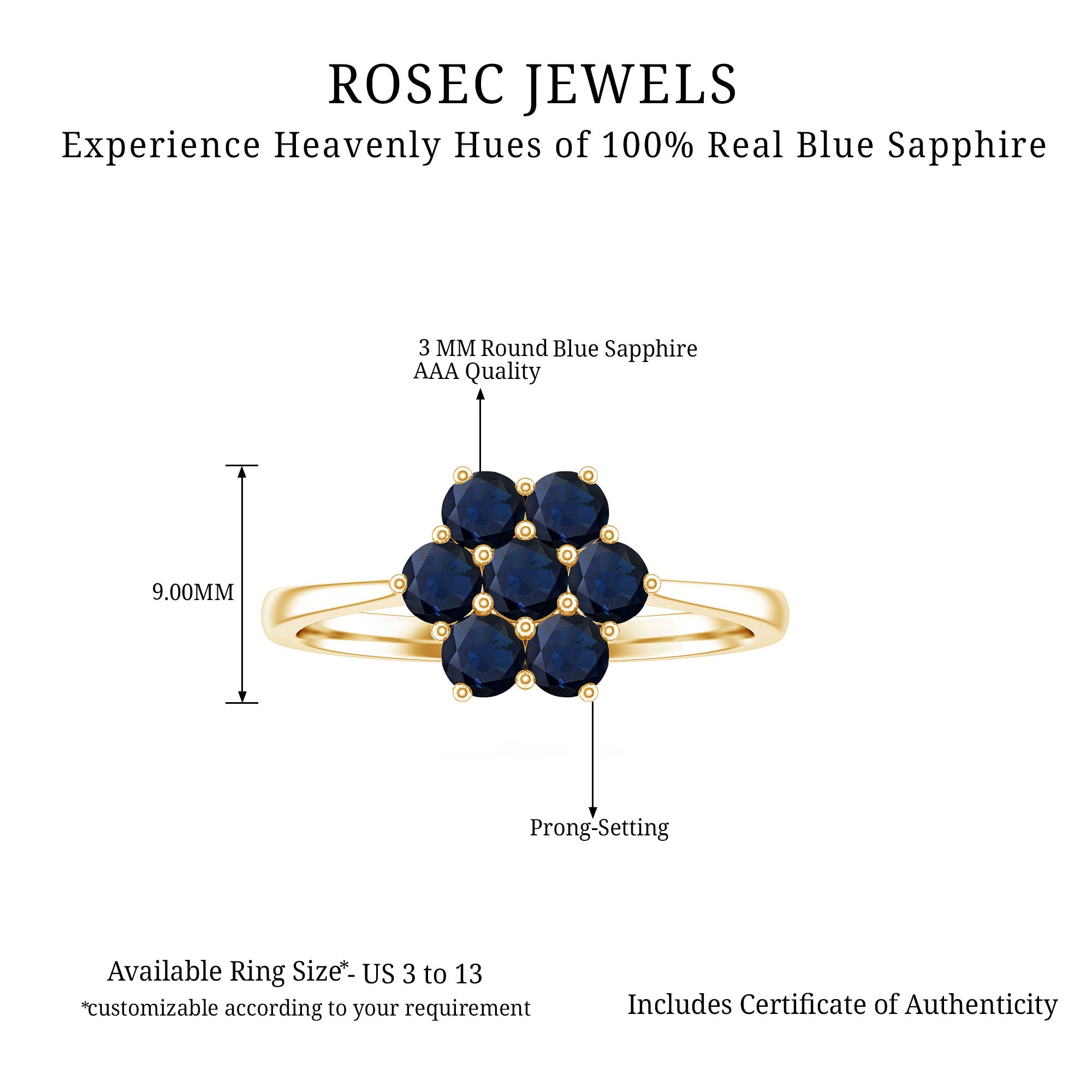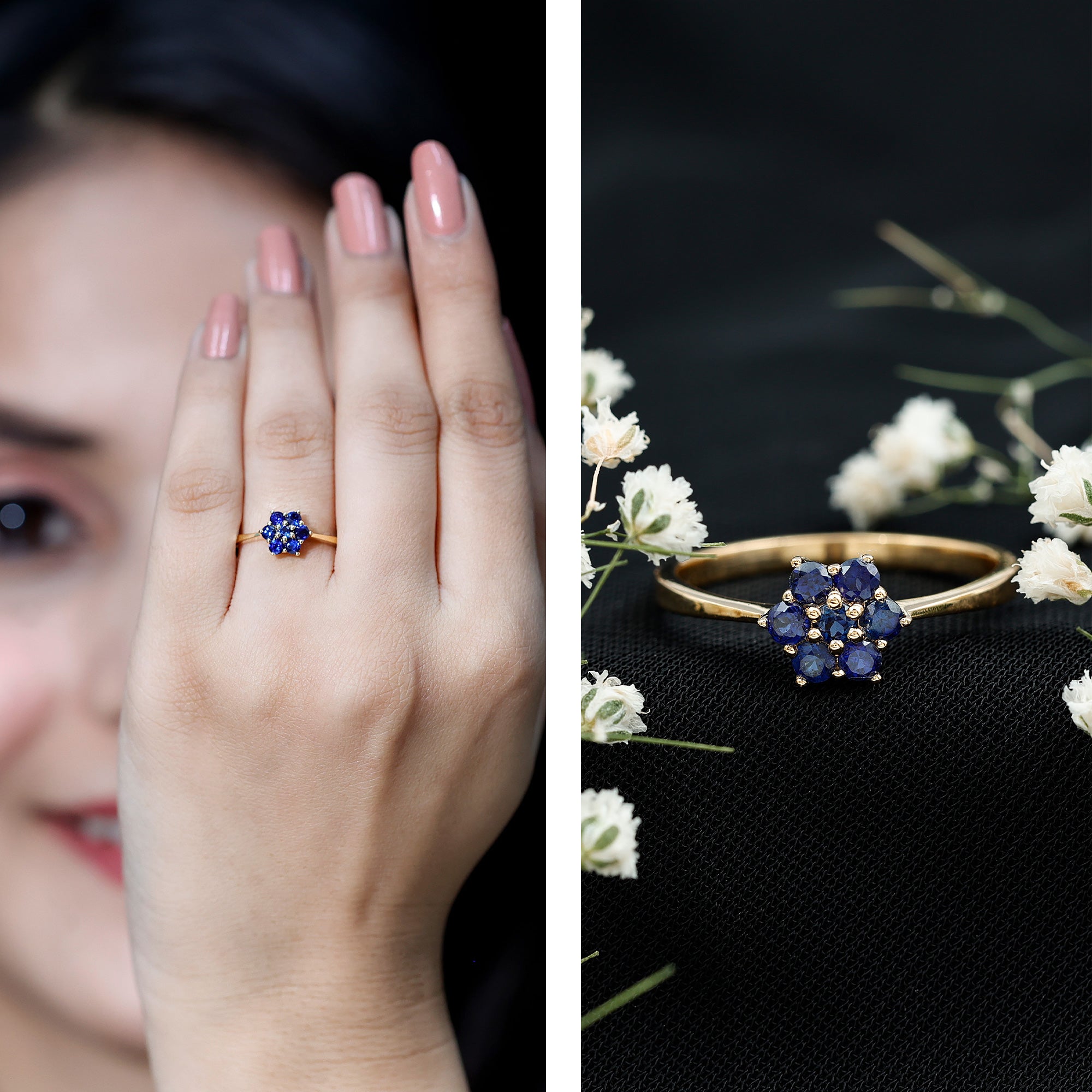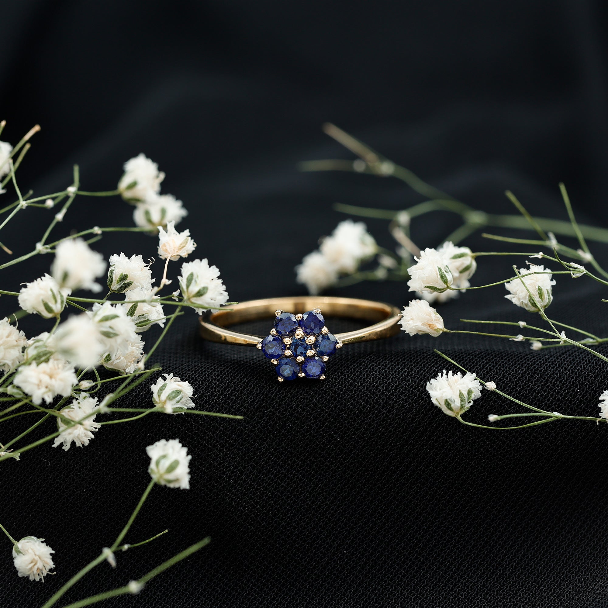 1 CT Round Shape Blue Sapphire Cluster Flower Ring