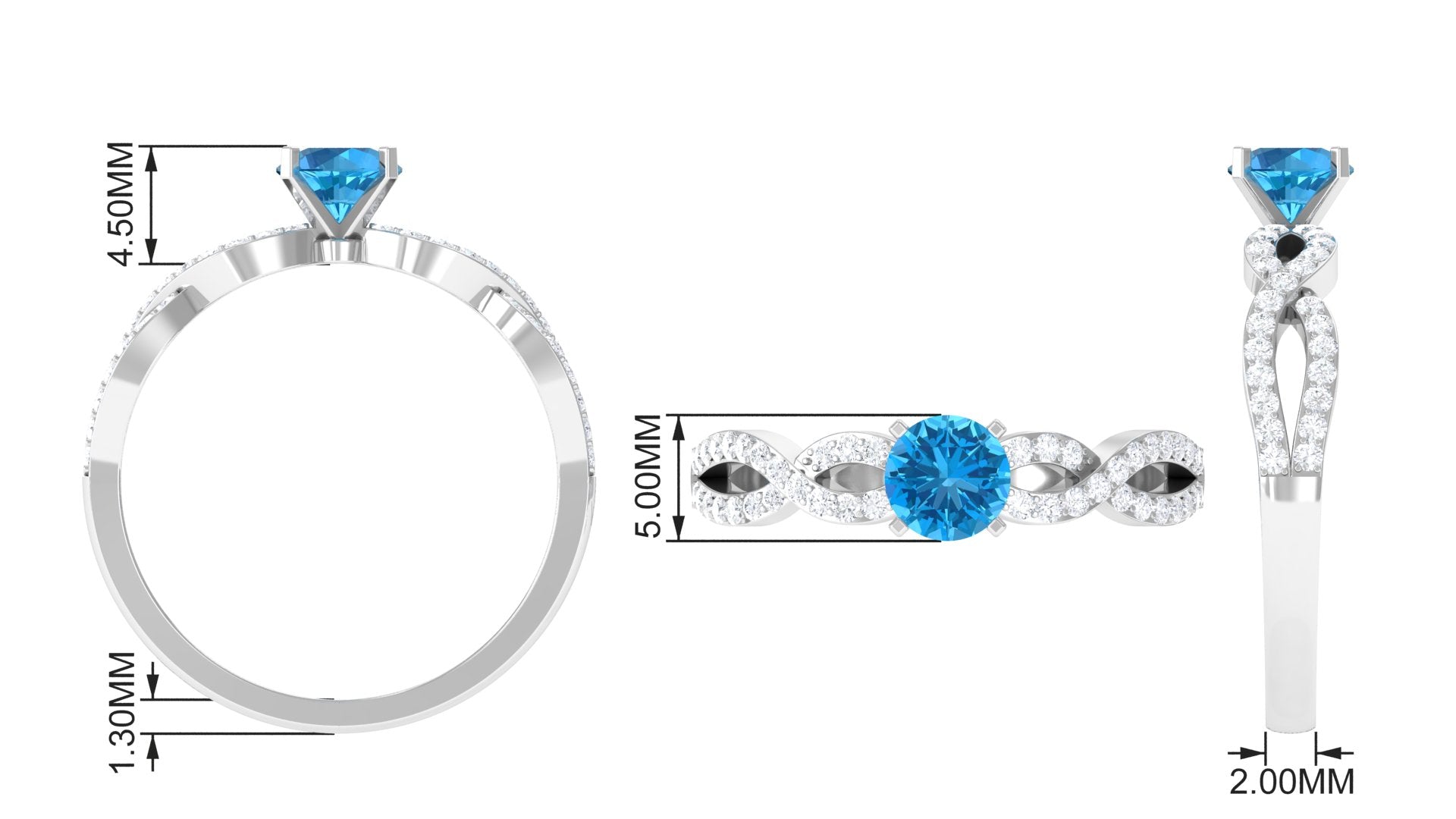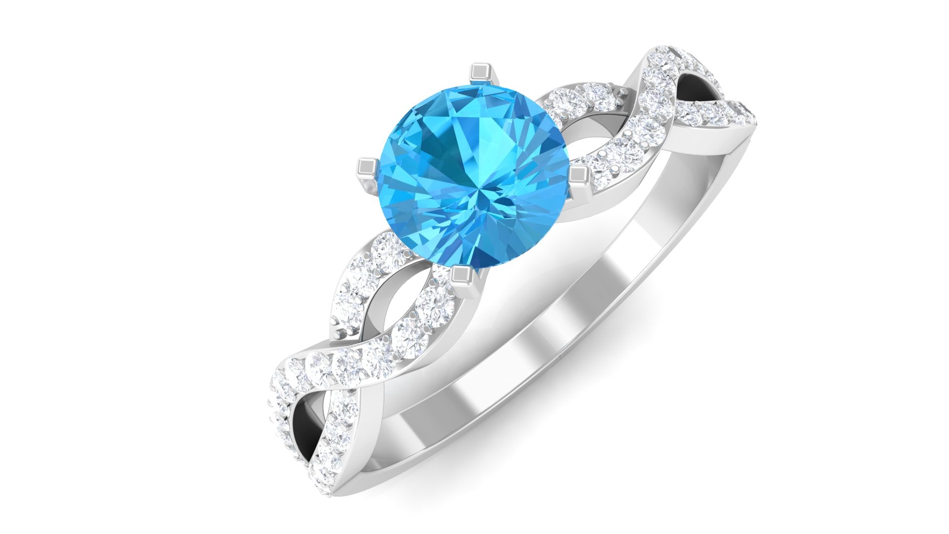 1 CT Round Shape Swiss Blue Topaz and Diamond Criss Cross Ring