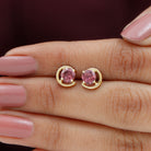 1 CT Simple Pink Tourmaline Solitaire Stud Earrings