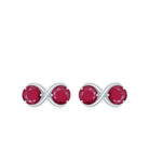 1 CT Simple Ruby Two Stone Infinity Stud Earrings