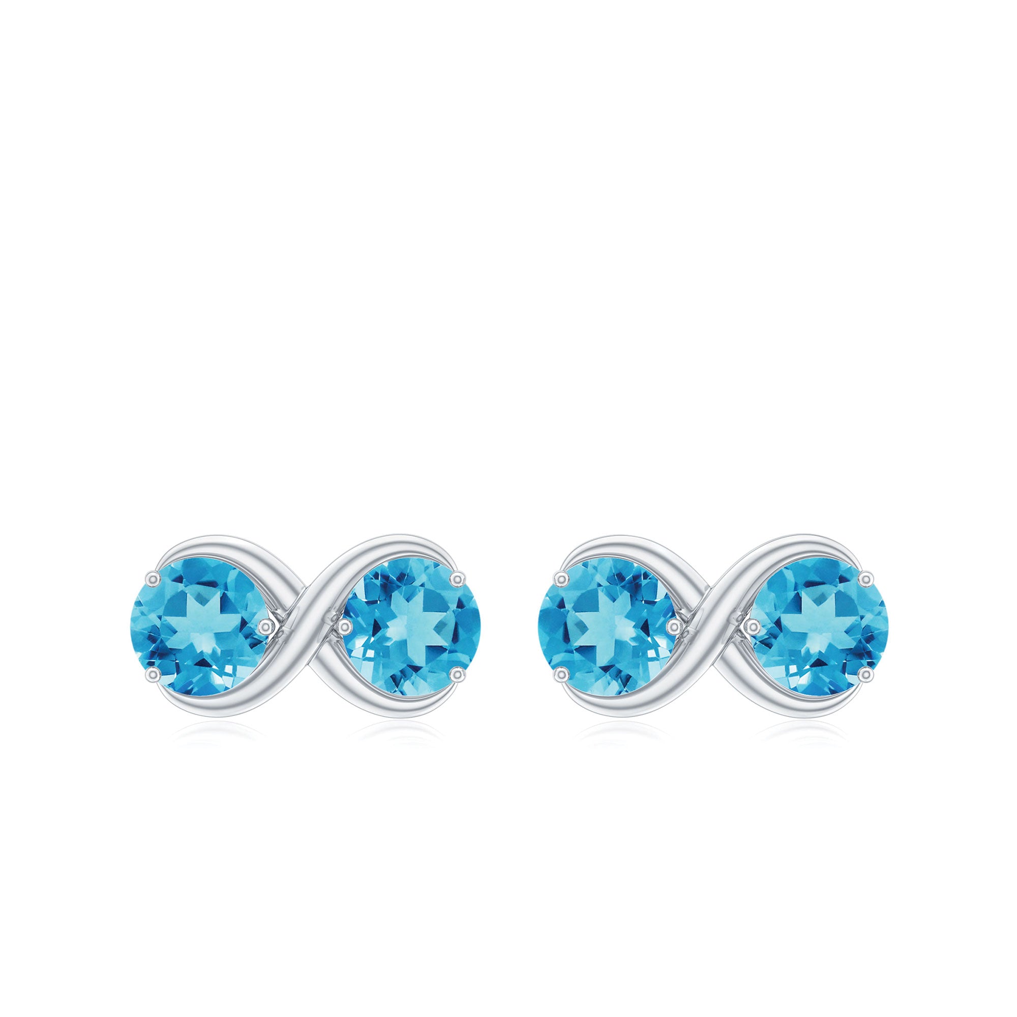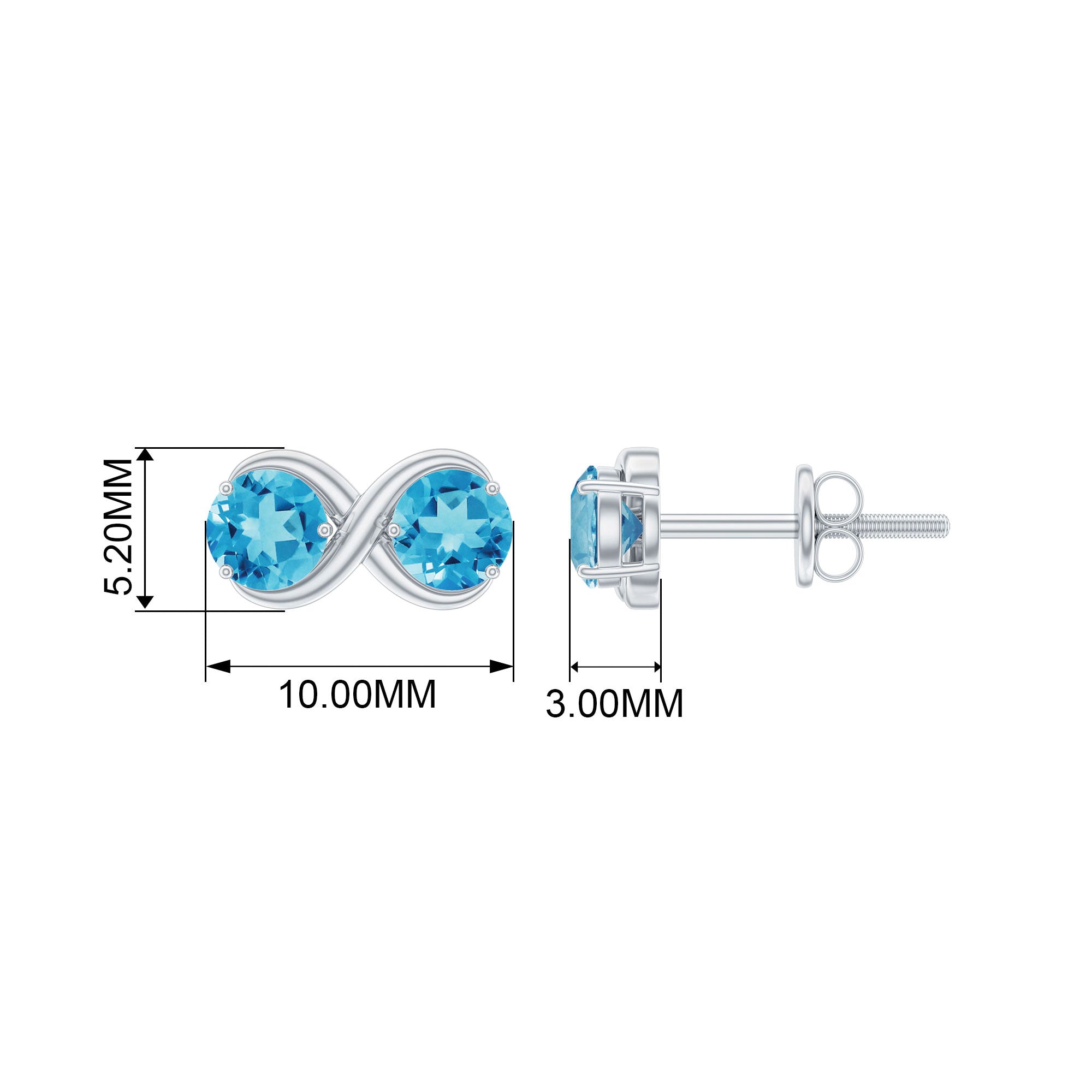 1 CT Simple Swiss Blue Topaz Two Stone Infinity Stud Earrings