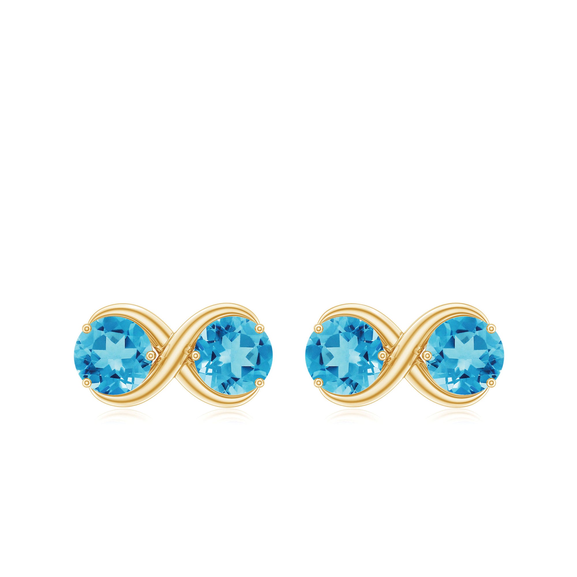 Make this promised day really special for her by giving her this pair of Infinity Stud Earrings she will cherish forever. Starring Round Shape Swiss Blue Topaz in a Two Stone Setting held between a gorgeous infinity symbol crafted with Solid Gold.