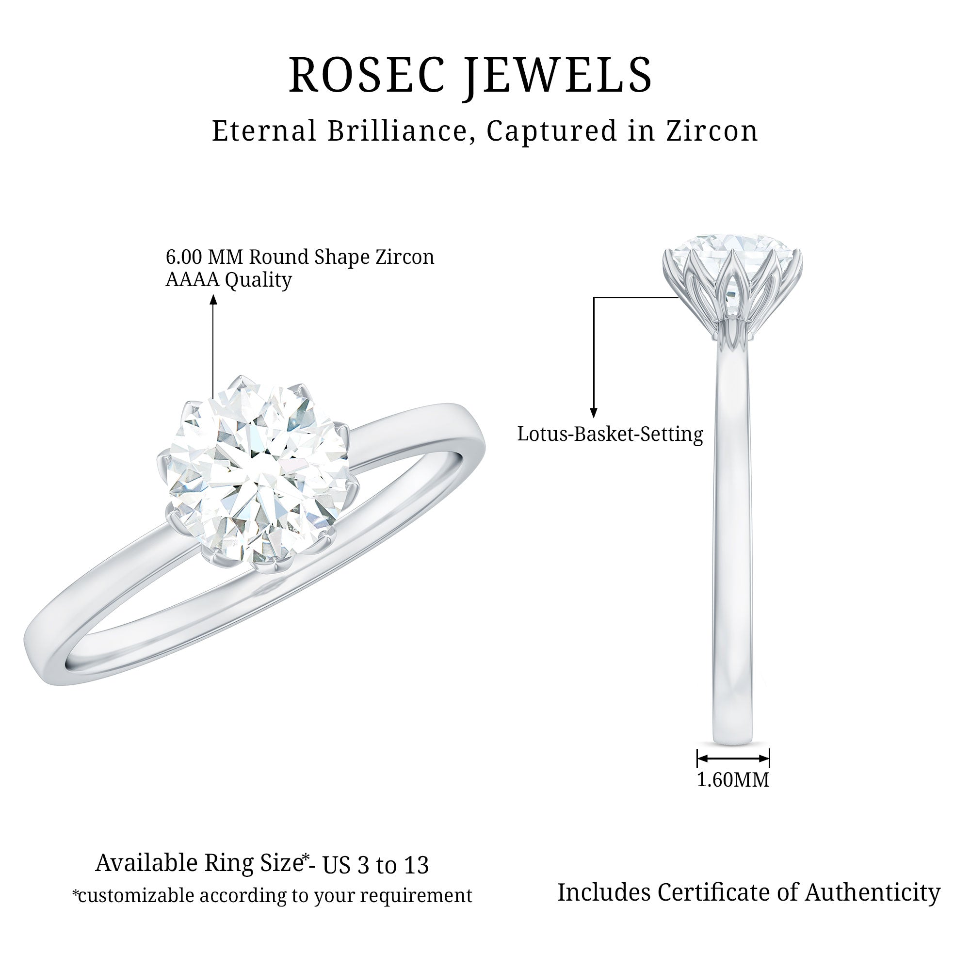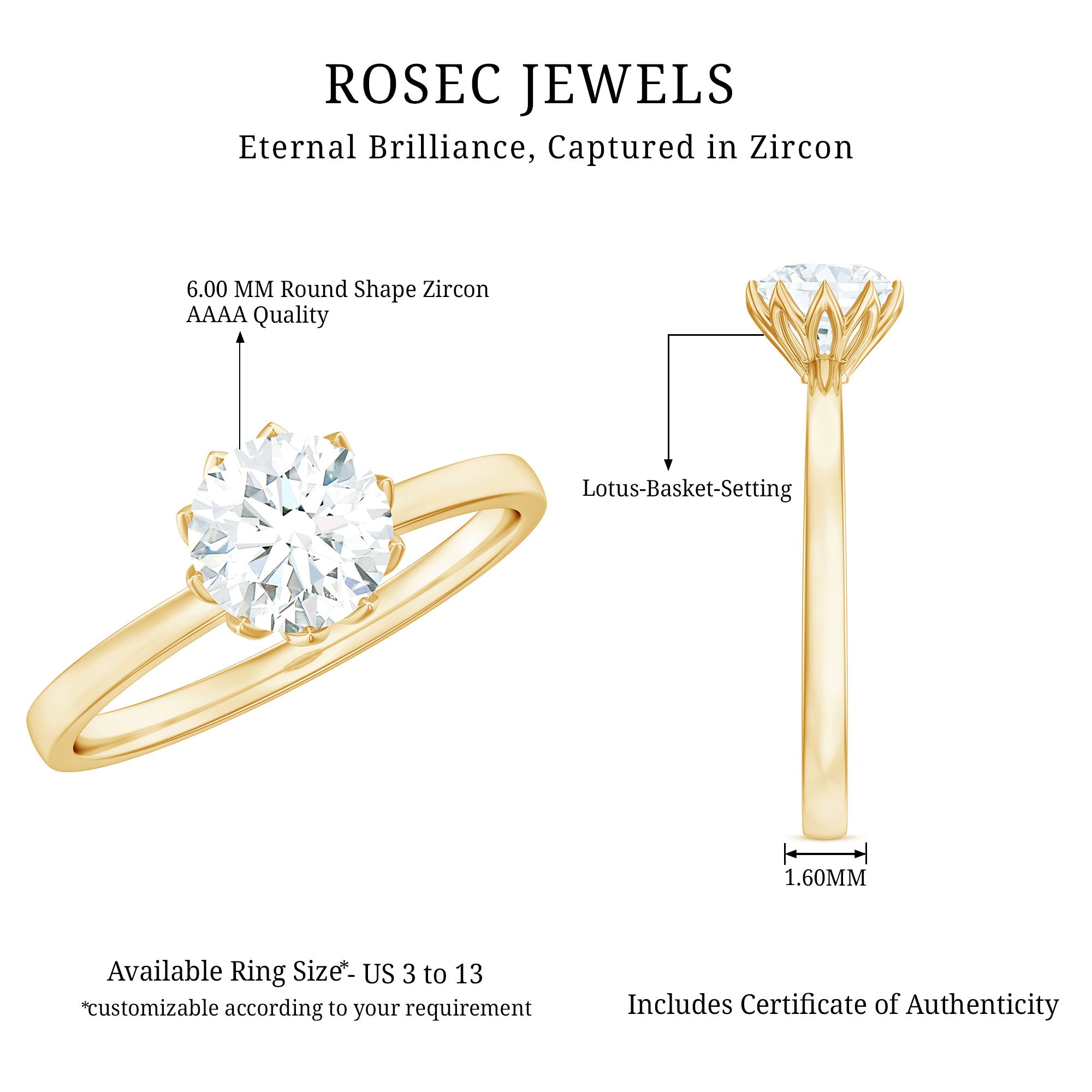 1 CT Simulated Diamond Solitaire Ring in Lotus Basket Setting