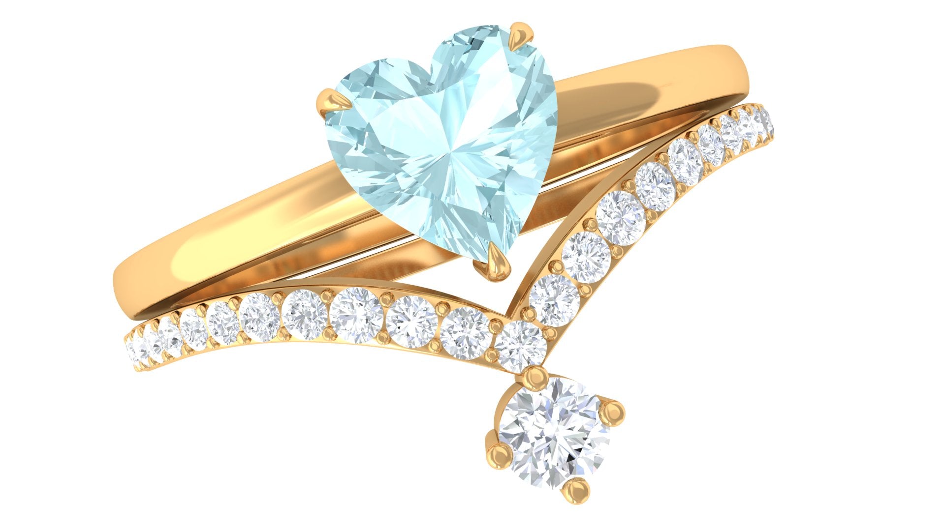 Celebrate love with our Sky Blue Topaz and Diamond Heart Ring Set, a radiant symbol of your romantic connection. The engagement ring features a captivating heart-shaped Sky Blue Topaz, expressing the depth of your affection. Surrounding it, brilliant Diamond stones add a touch of eternal sparkle, embodying the enduring nature of your love. The matching wedding band complements the engagement ring, creating a perfect harmony of design. Meticulously crafted, this set captures the essence of romantic elegance and timeless beauty. Wear this heart-shaped ring set as a testament to the love that fills your hearts, where the tranquil blue of the Sky Blue Topaz meets the everlasting sparkle of Diamond in a symbol of enduring commitment.