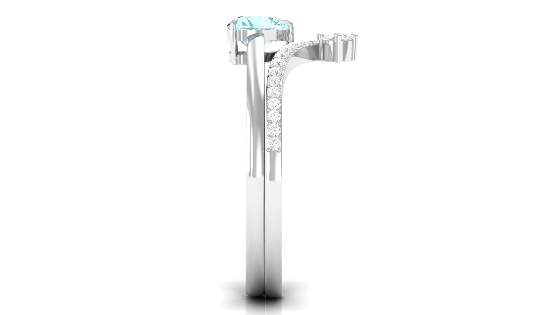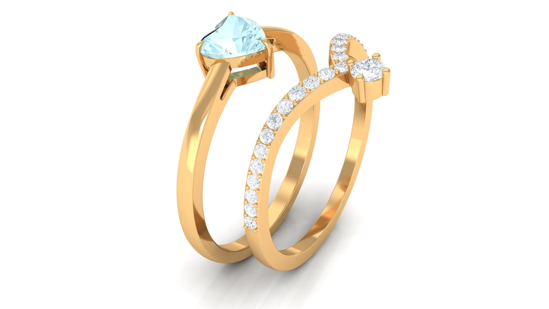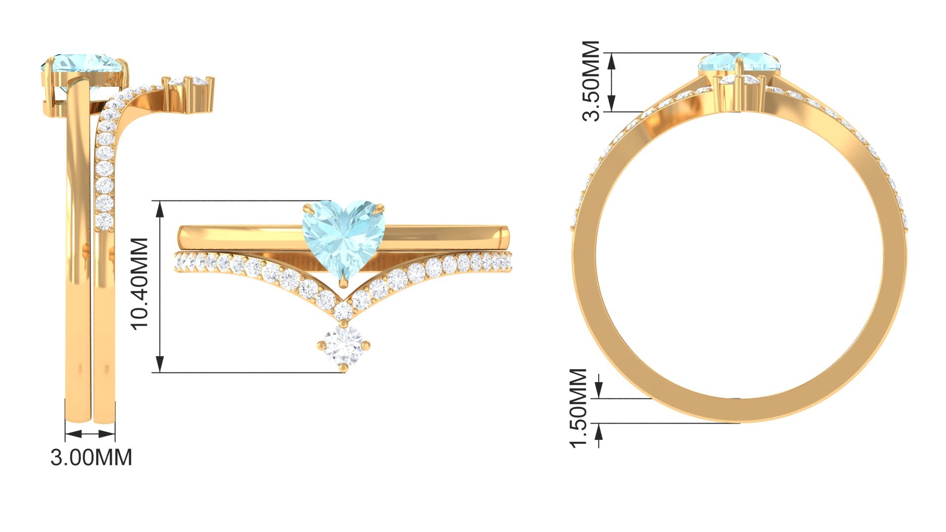 1 CT Sky Blue Topaz and Diamond Heart Ring Set