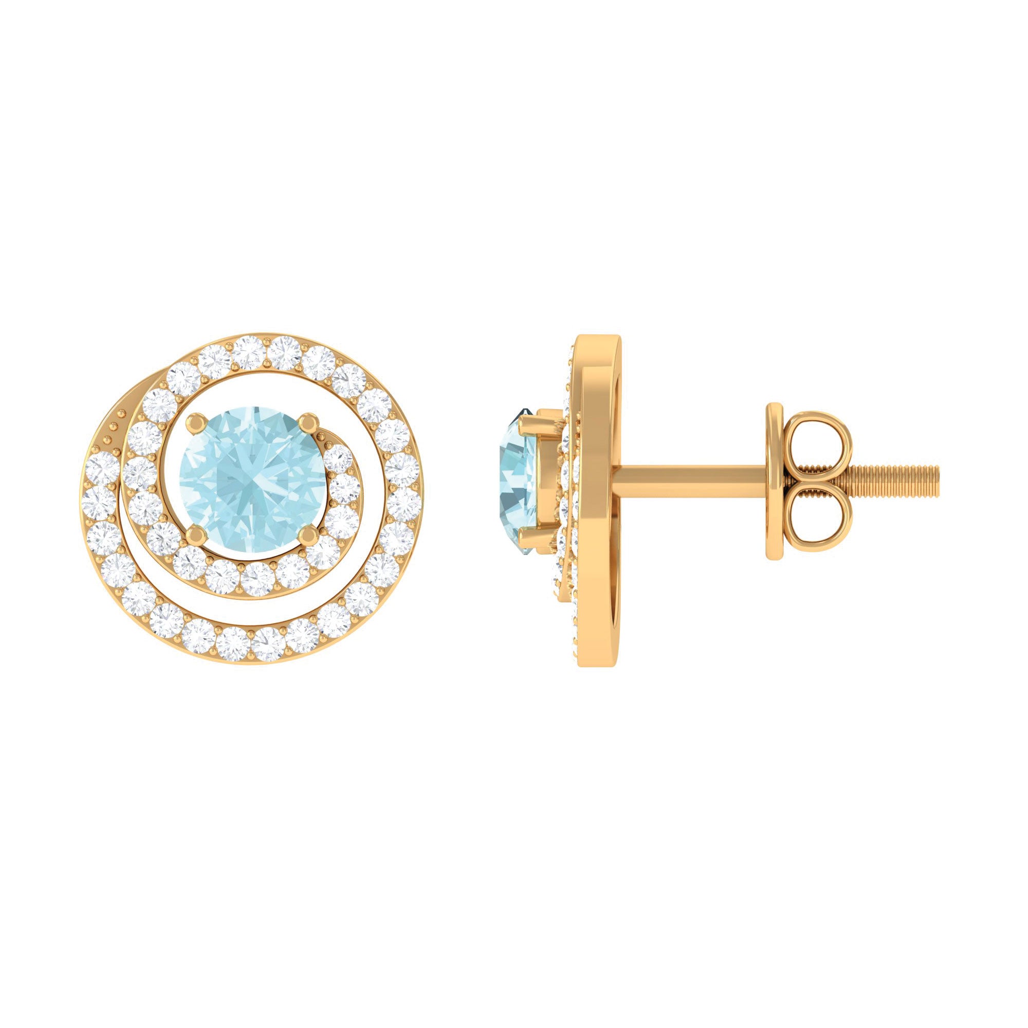 1 CT Sky Blue Topaz Swirl Stud Earrings with Diamond
