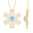1 CT Snowflake Pendant Necklace with Aquamarine and Diamond