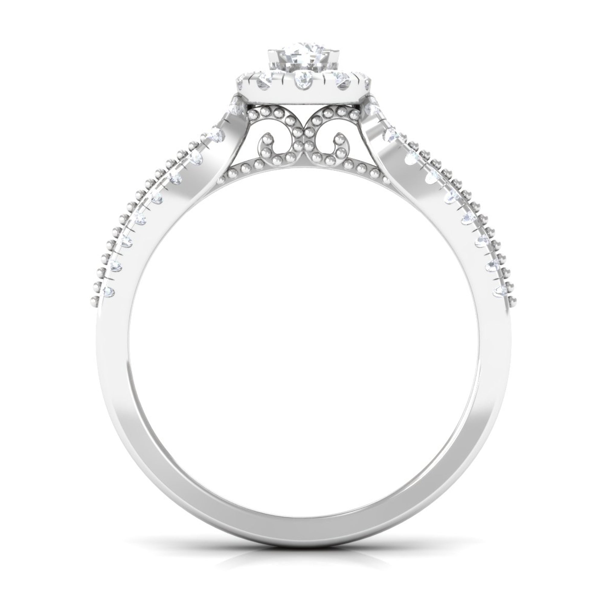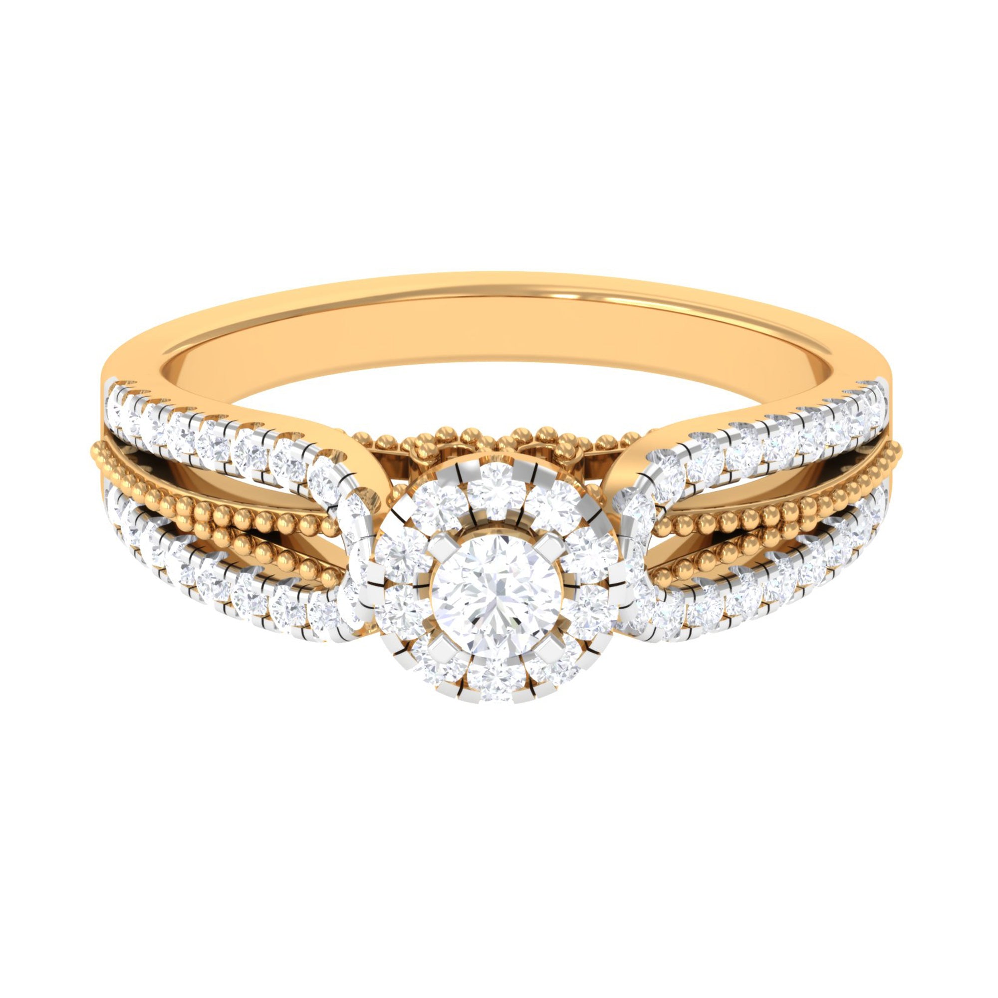 1 CT Split Shank Zircon Designer Engagement Ring with Beaded Gold