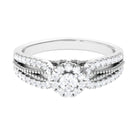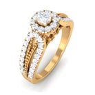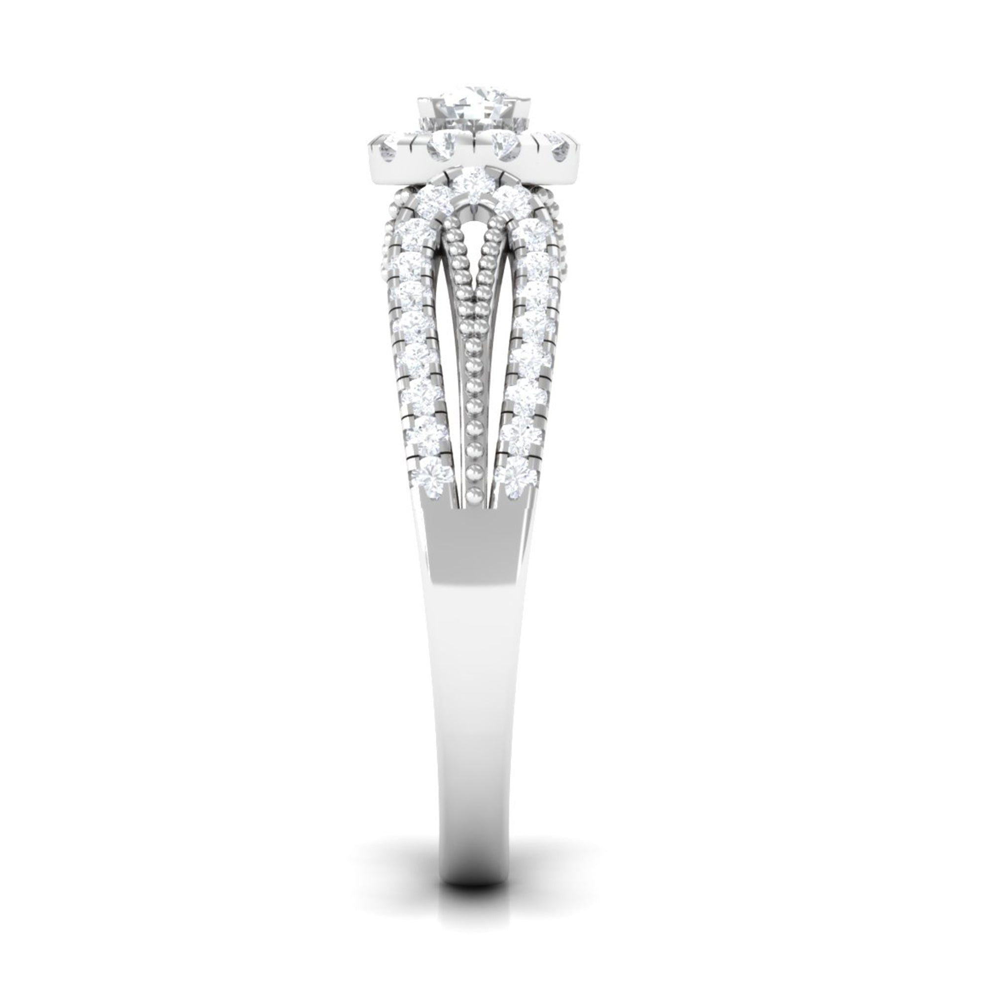 This stunning Designer Engagement Ring features brilliant zircon at its center with similar zircon stones studded over the split shank with gold beaded detailing. This engagement ring is the perfect choice for those who want a unique and eye-catching piece of jewelry to symbolize their love and commitment. Its a beautiful addition to any collection and is sure to be treasured for years to come.