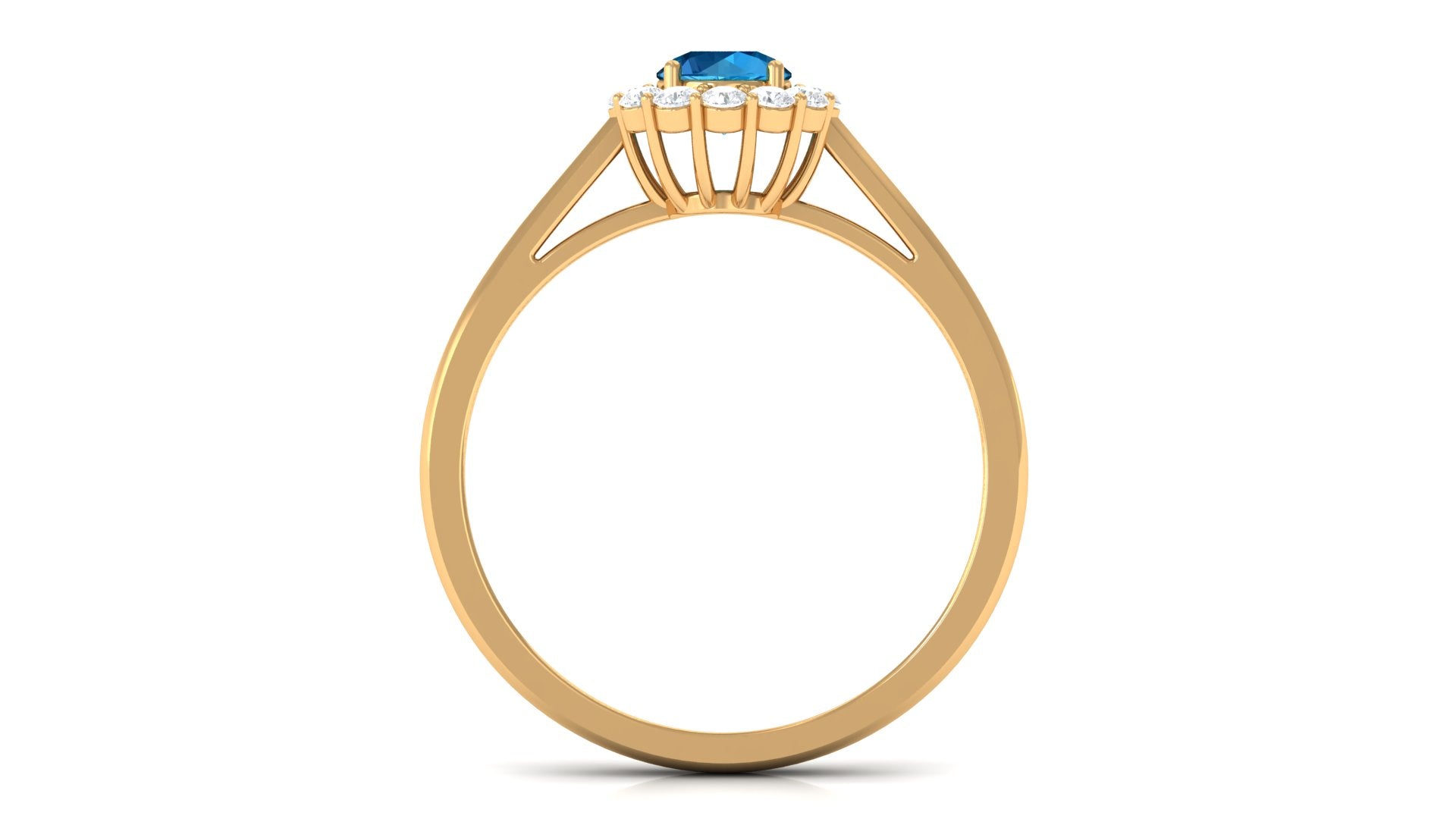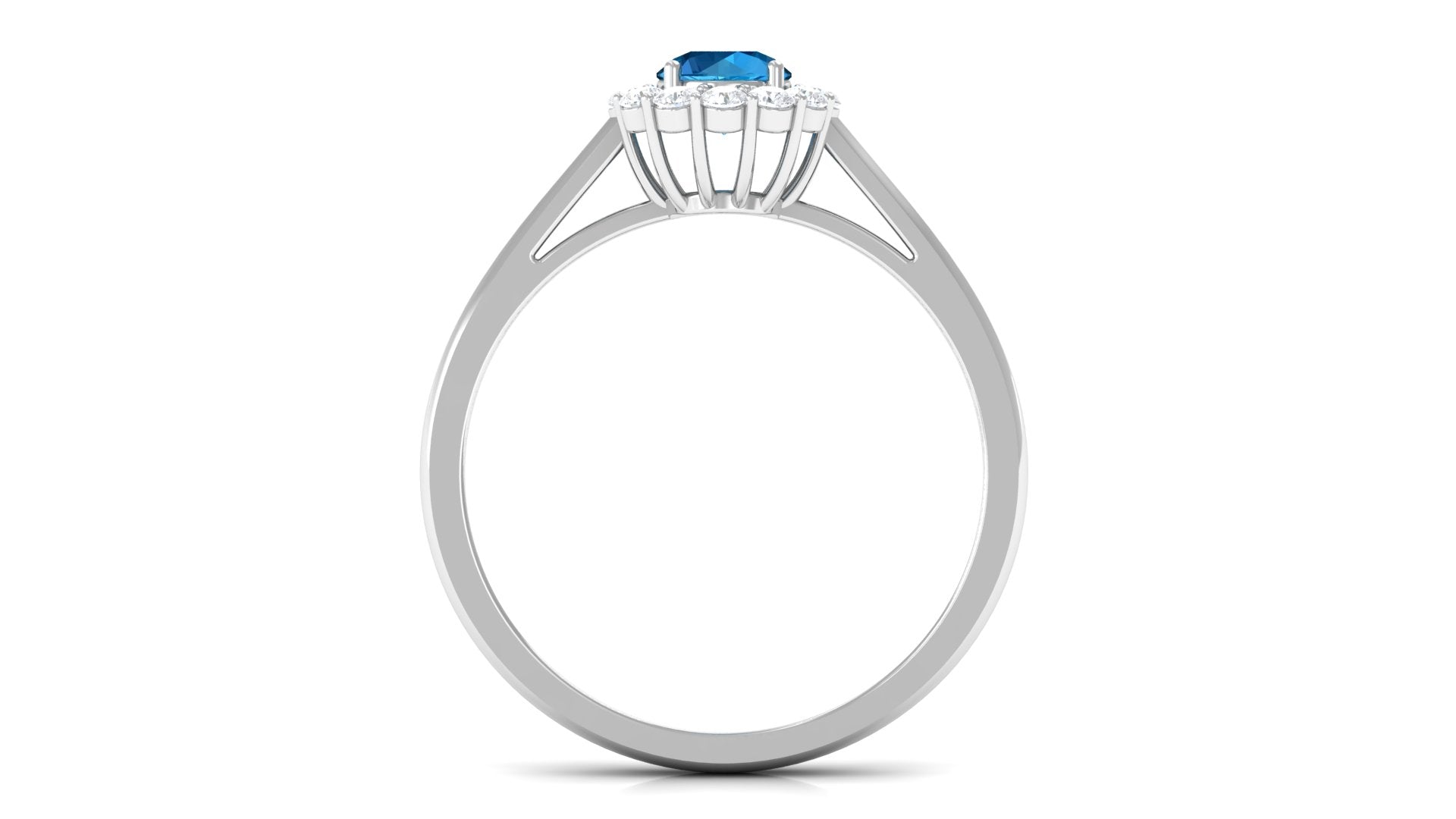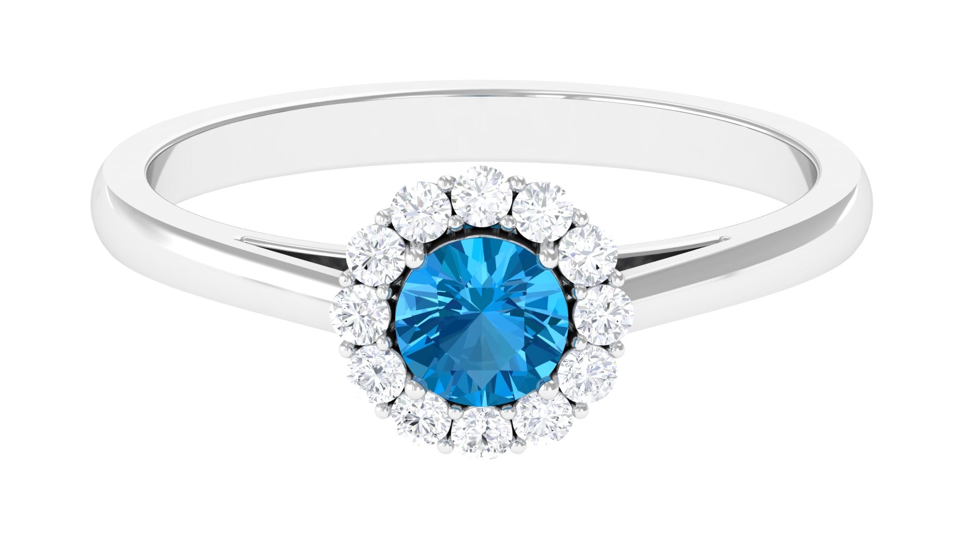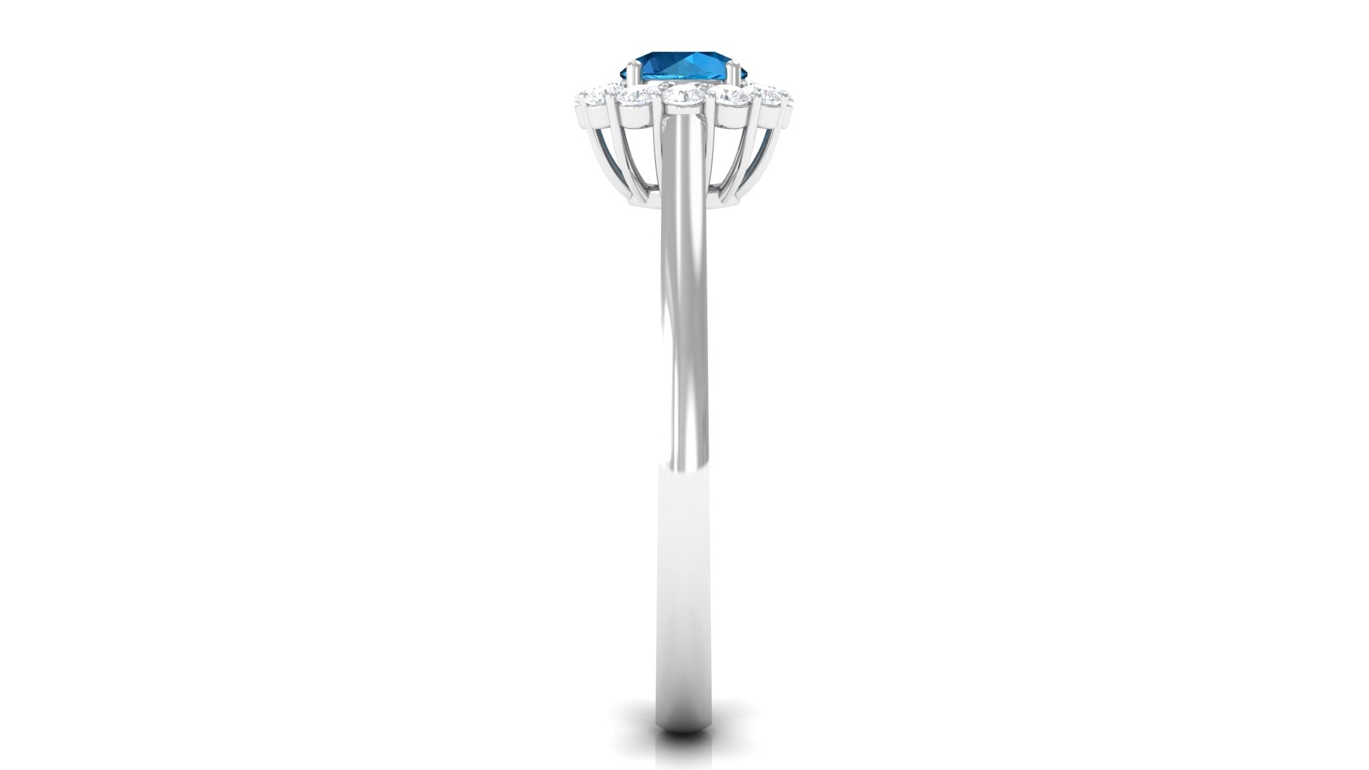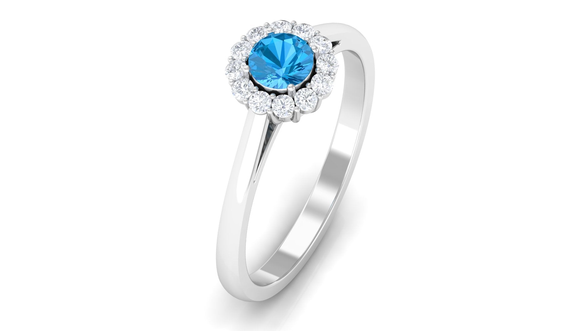 1 CT Swiss Blue Topaz and Diamond Floating Halo Engagement Ring