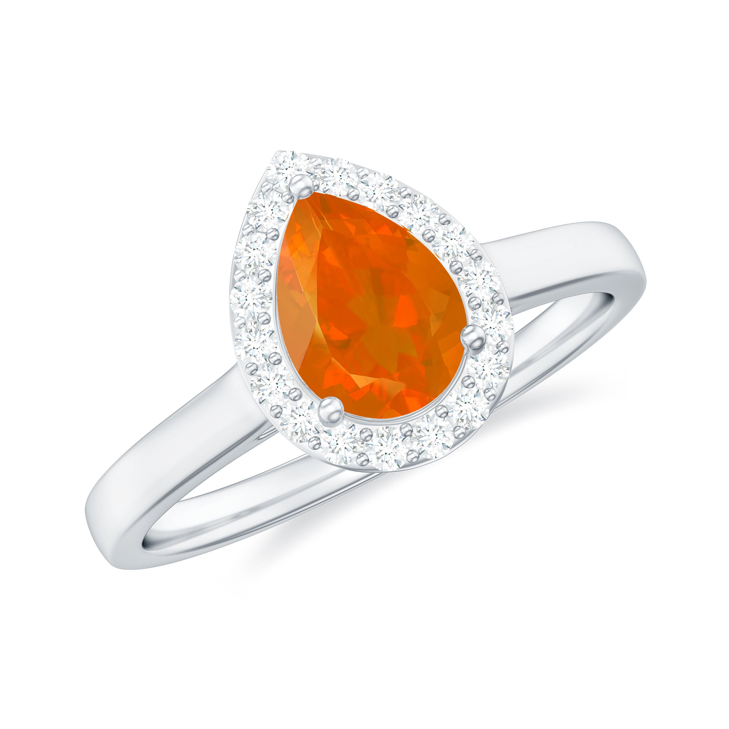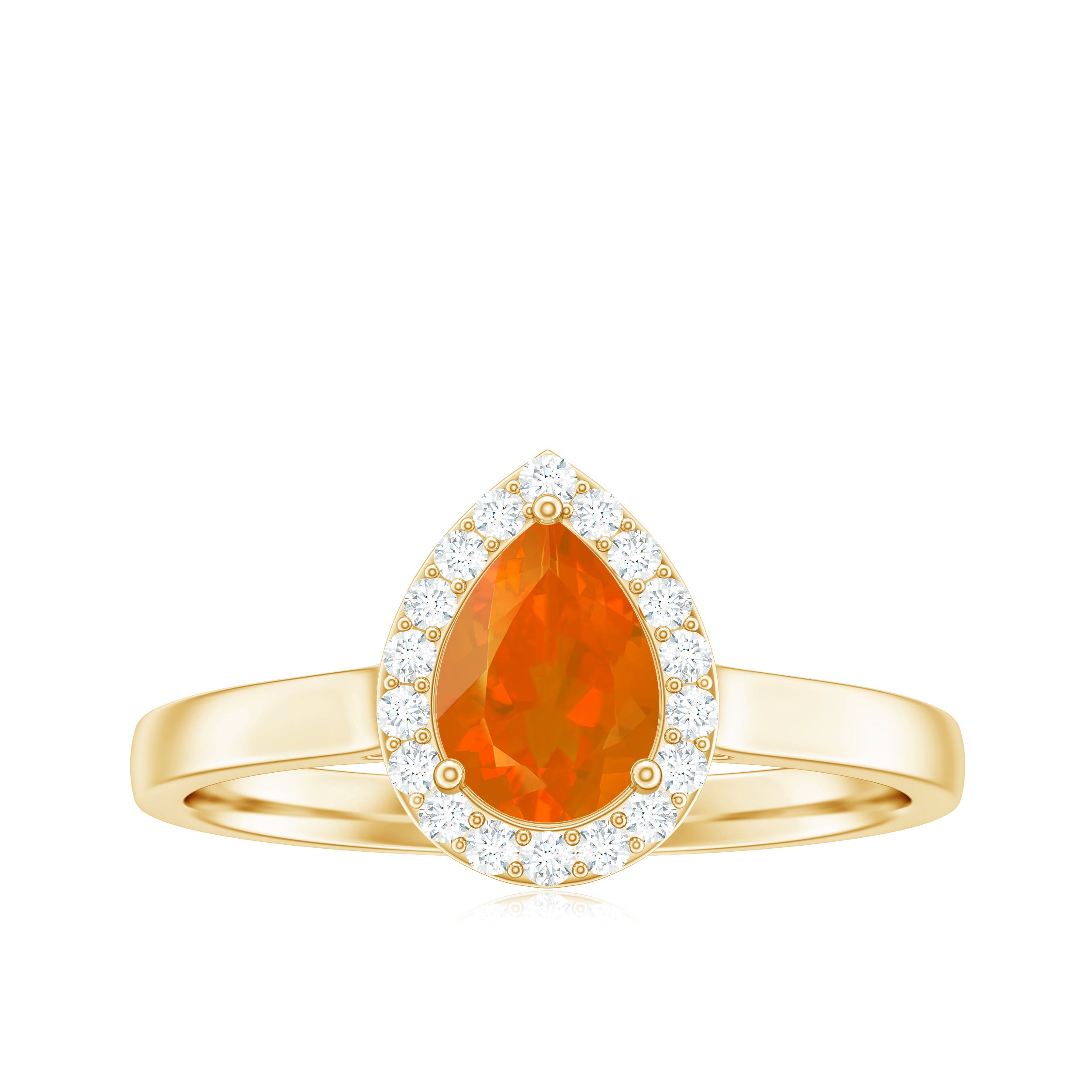 1 CT Teardrop Fire Opal Ring with Diamond Accent