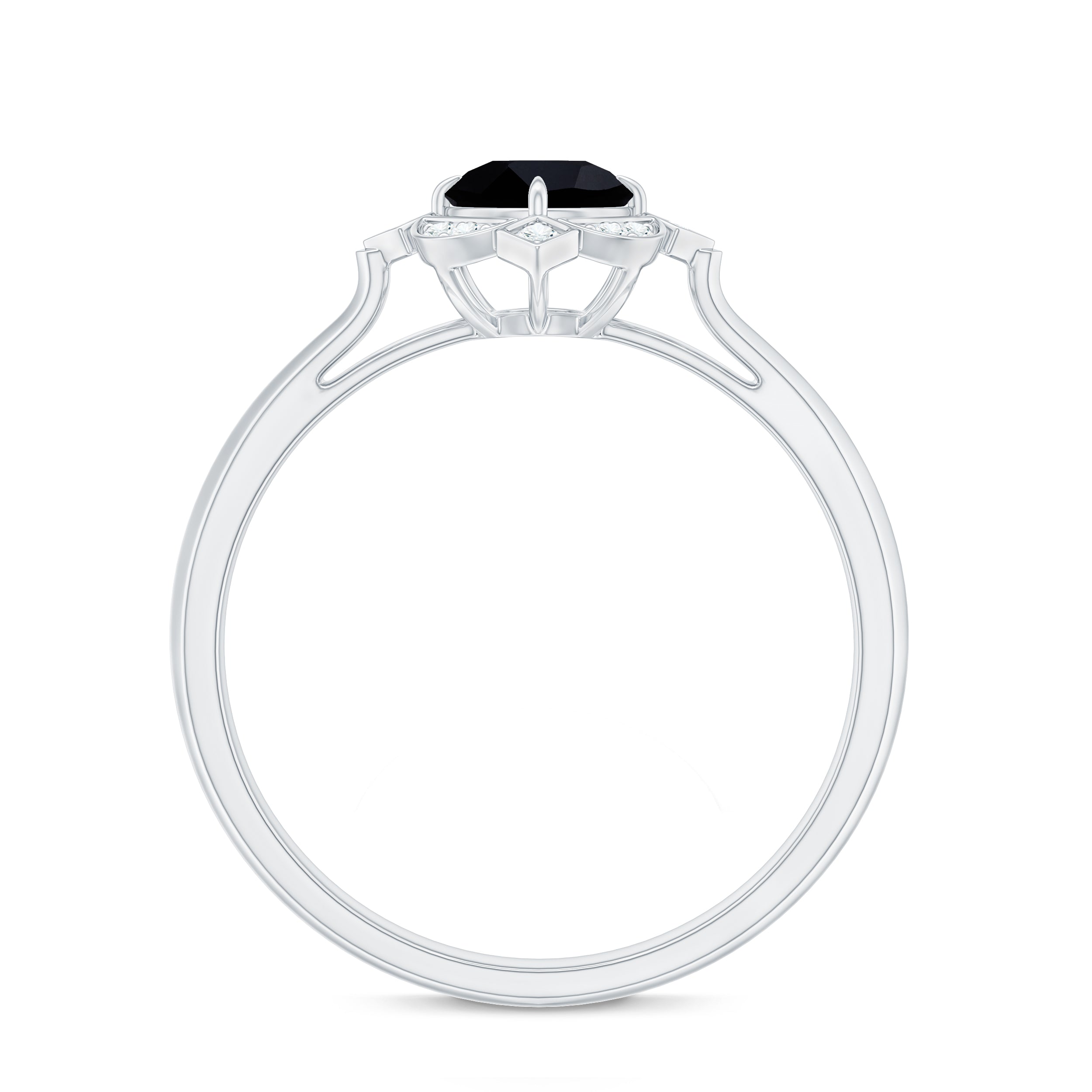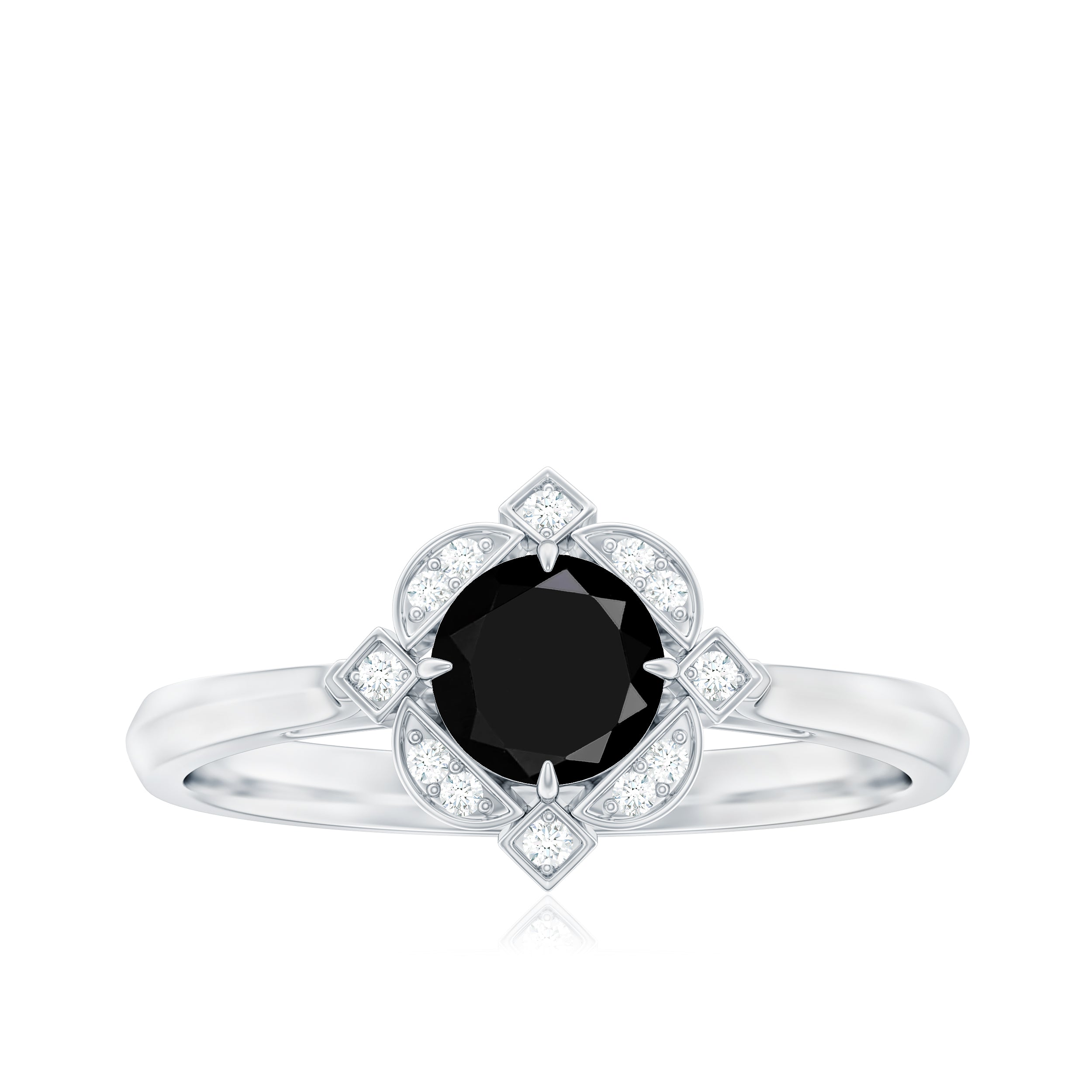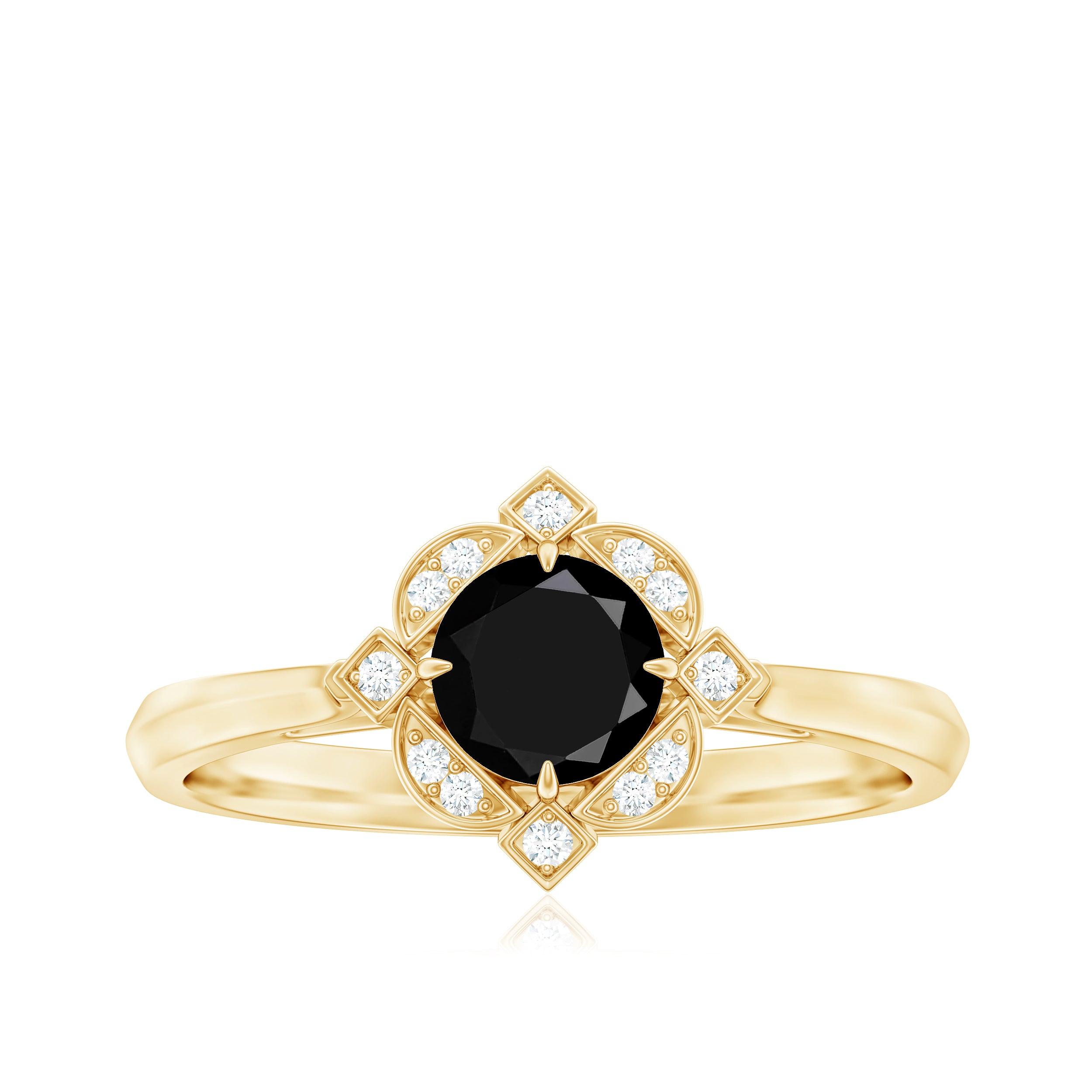The enchanting Created Black Diamond Vintage Engagement Ring is blooming with Accented Diamond on the Shank. This Created Black Diamond Engagement Ring is crafted in Gold for sumptuous appeal. Add more charm to your occasion with this Vintage Ring, having a unique design makes this ring extremely delightful.